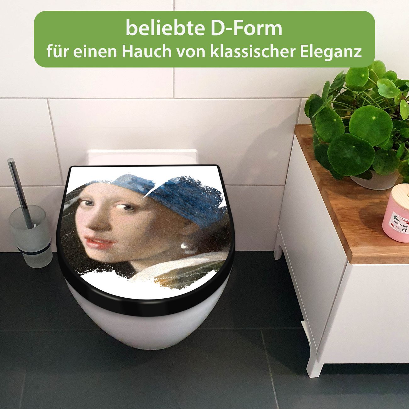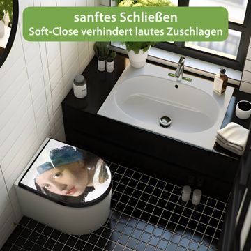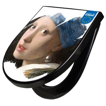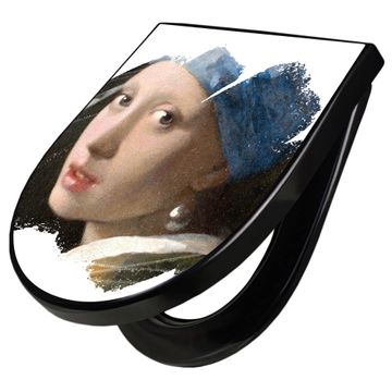 WC Sitz D-Form Schwarz mit Absenkautomatik Motiv Mädchen mit dem Perlenohrring