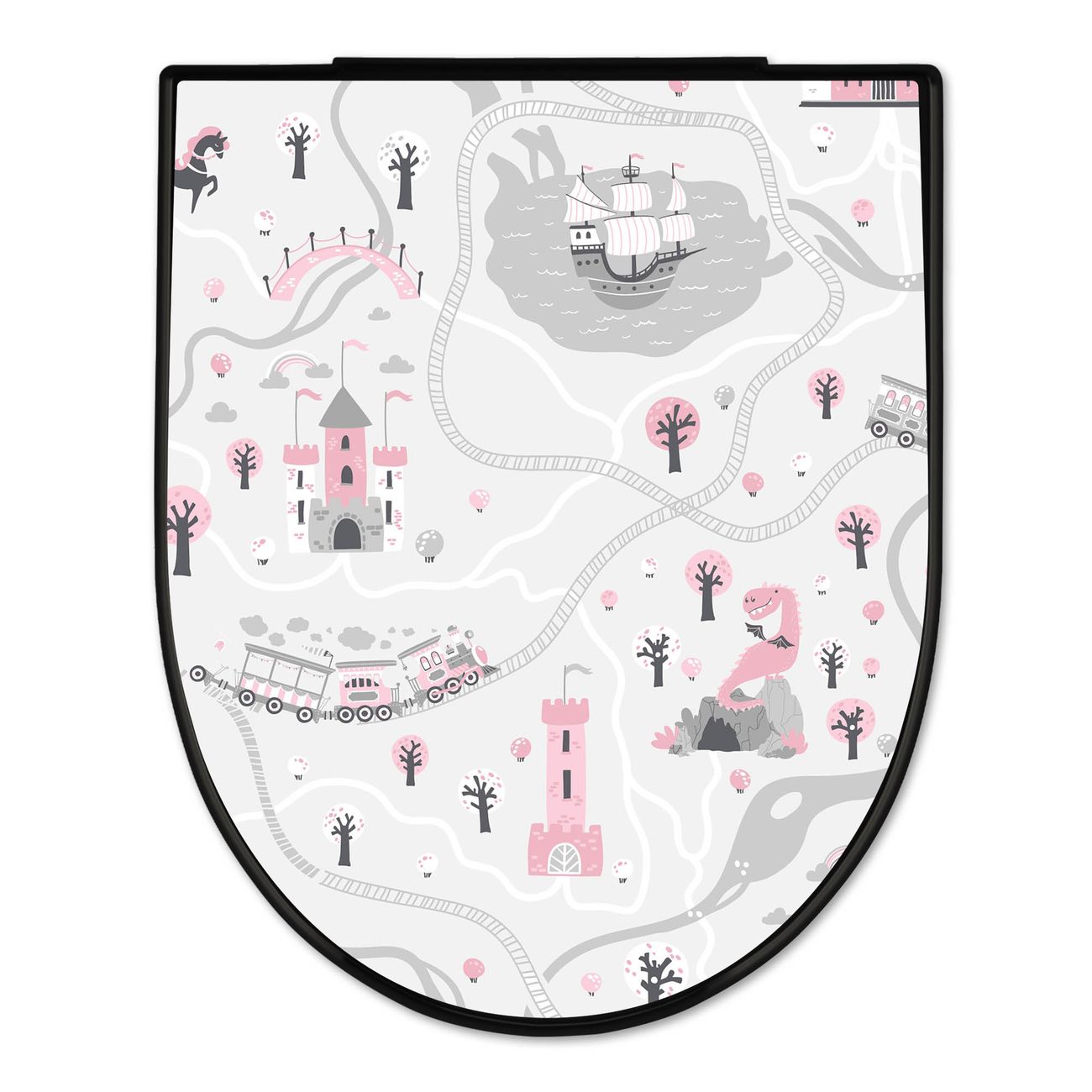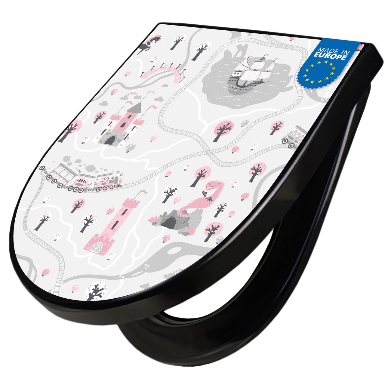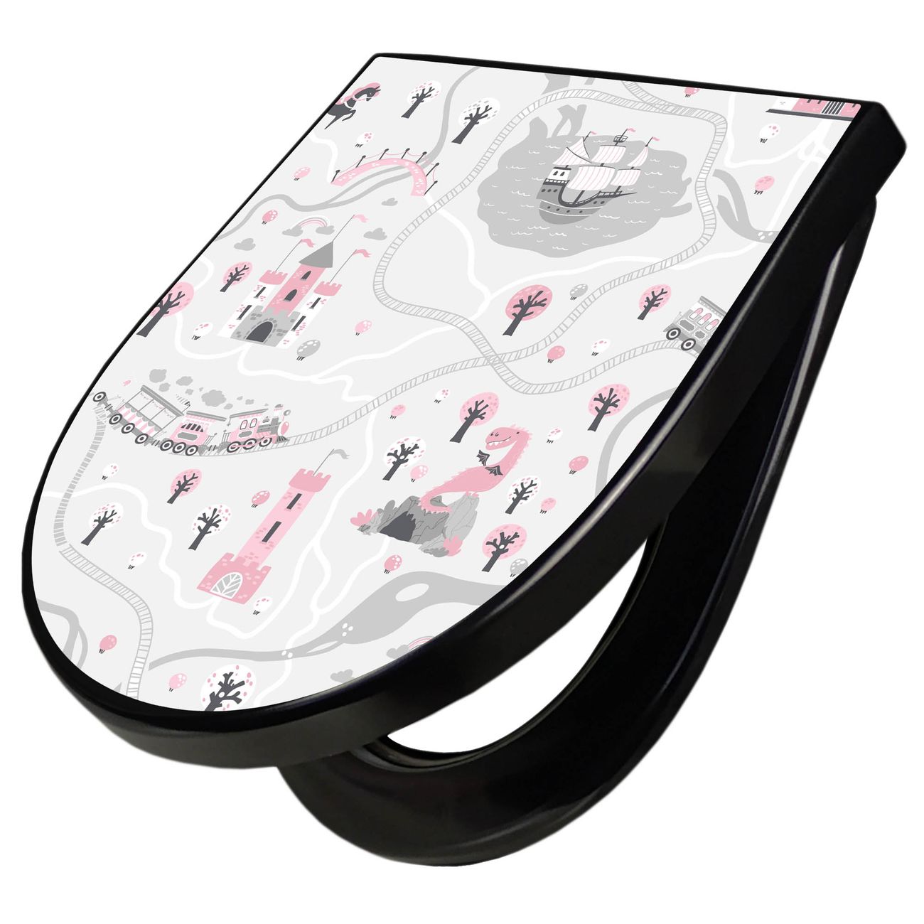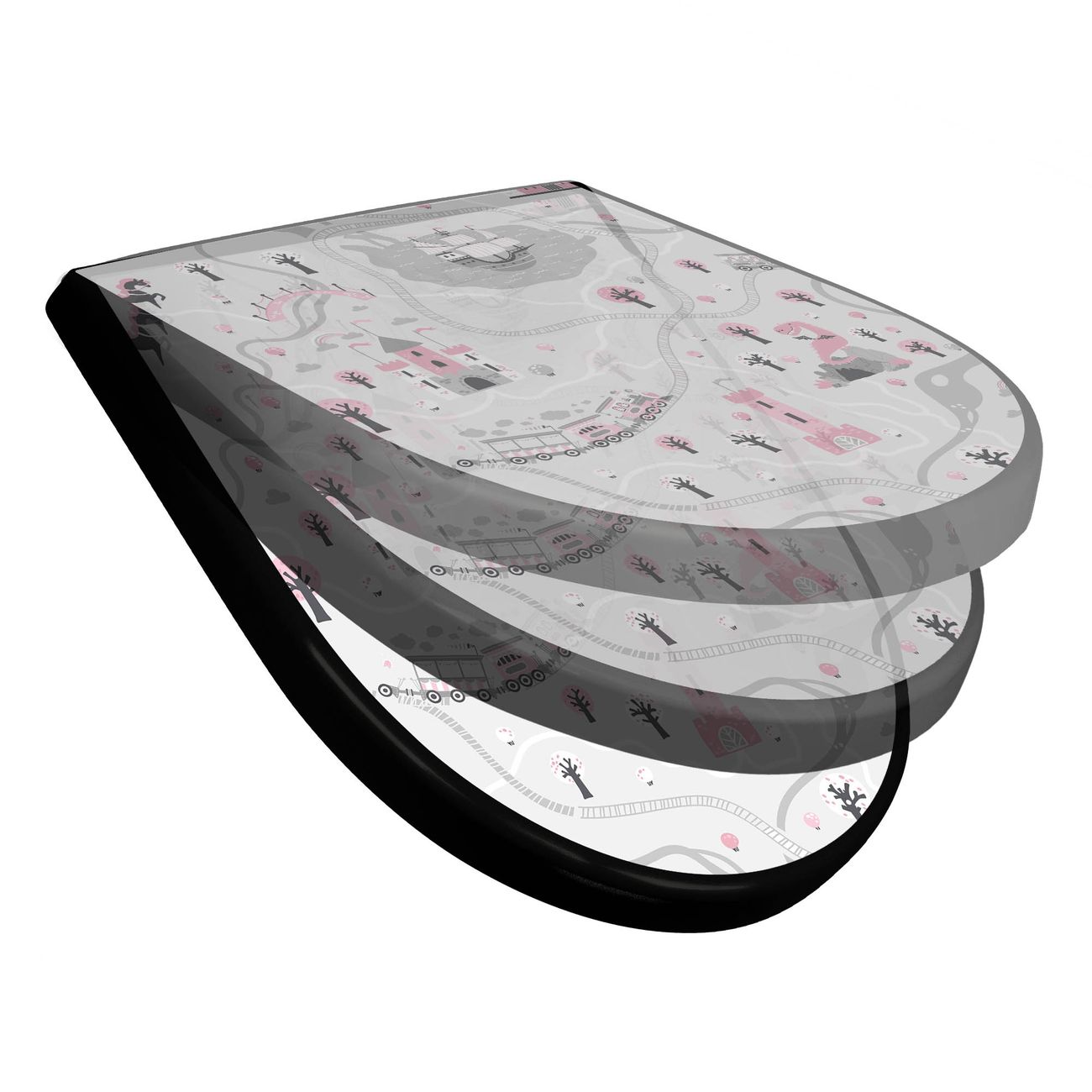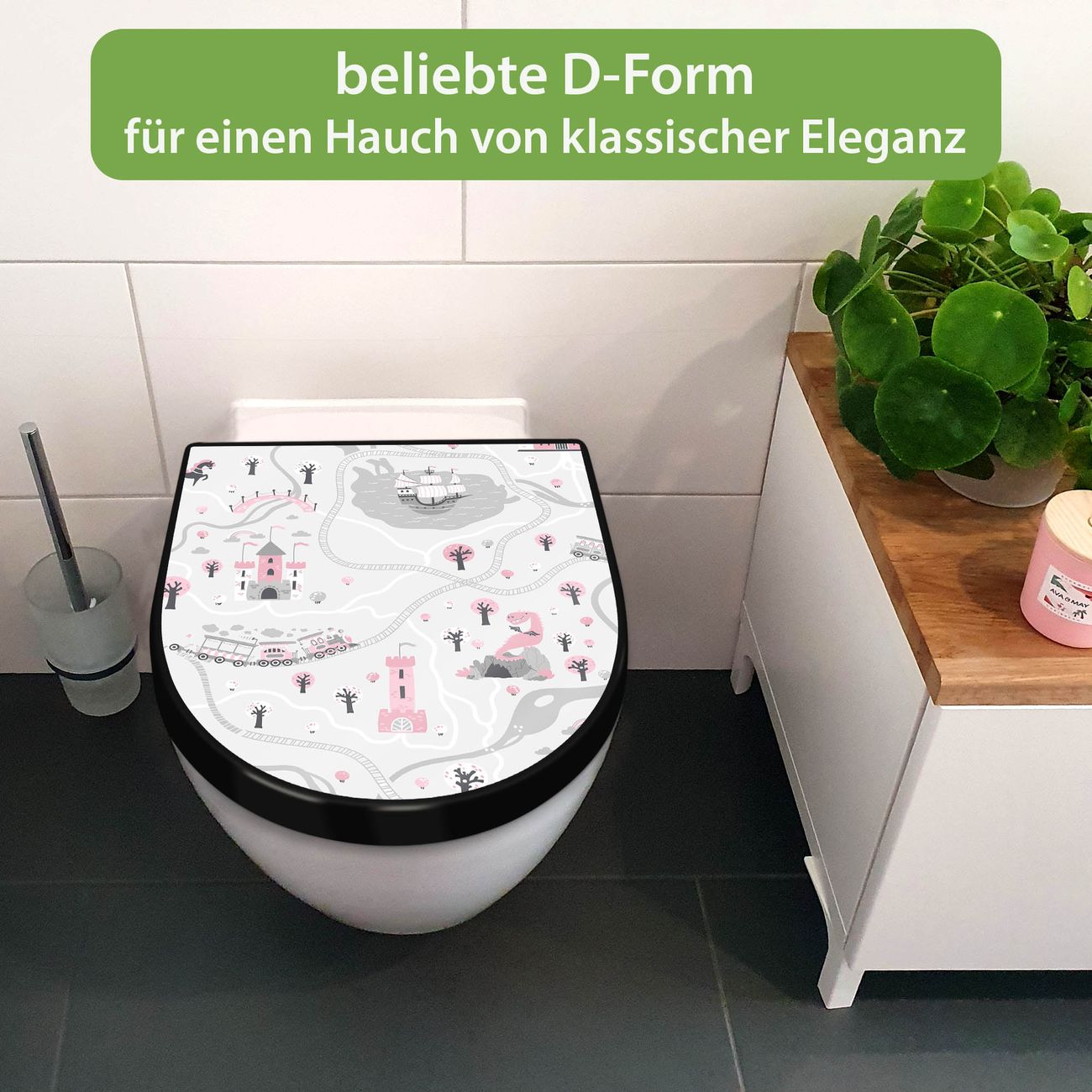 WC Sitz D-Form Schwarz mit Absenkautomatik Motiv Märchendorf 1