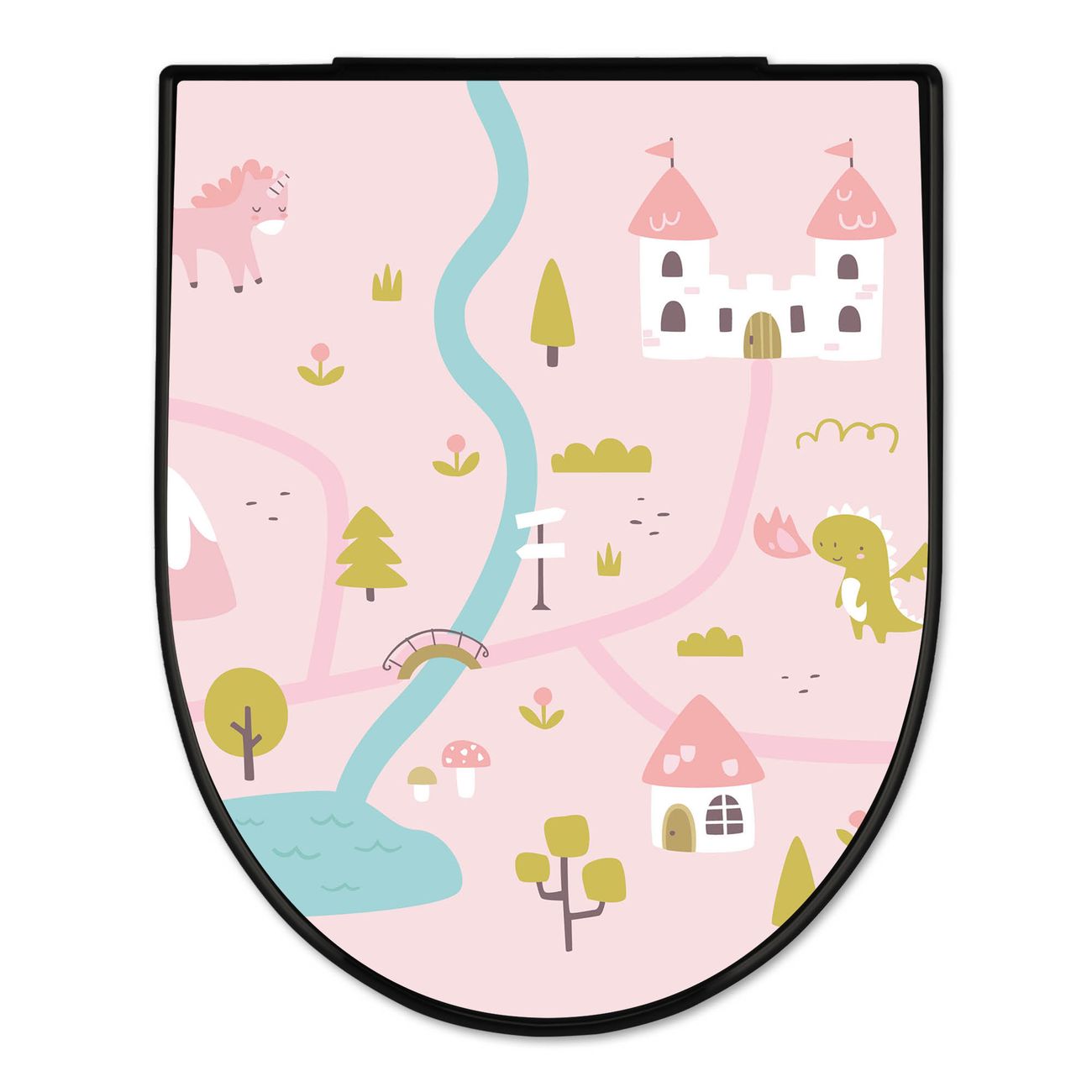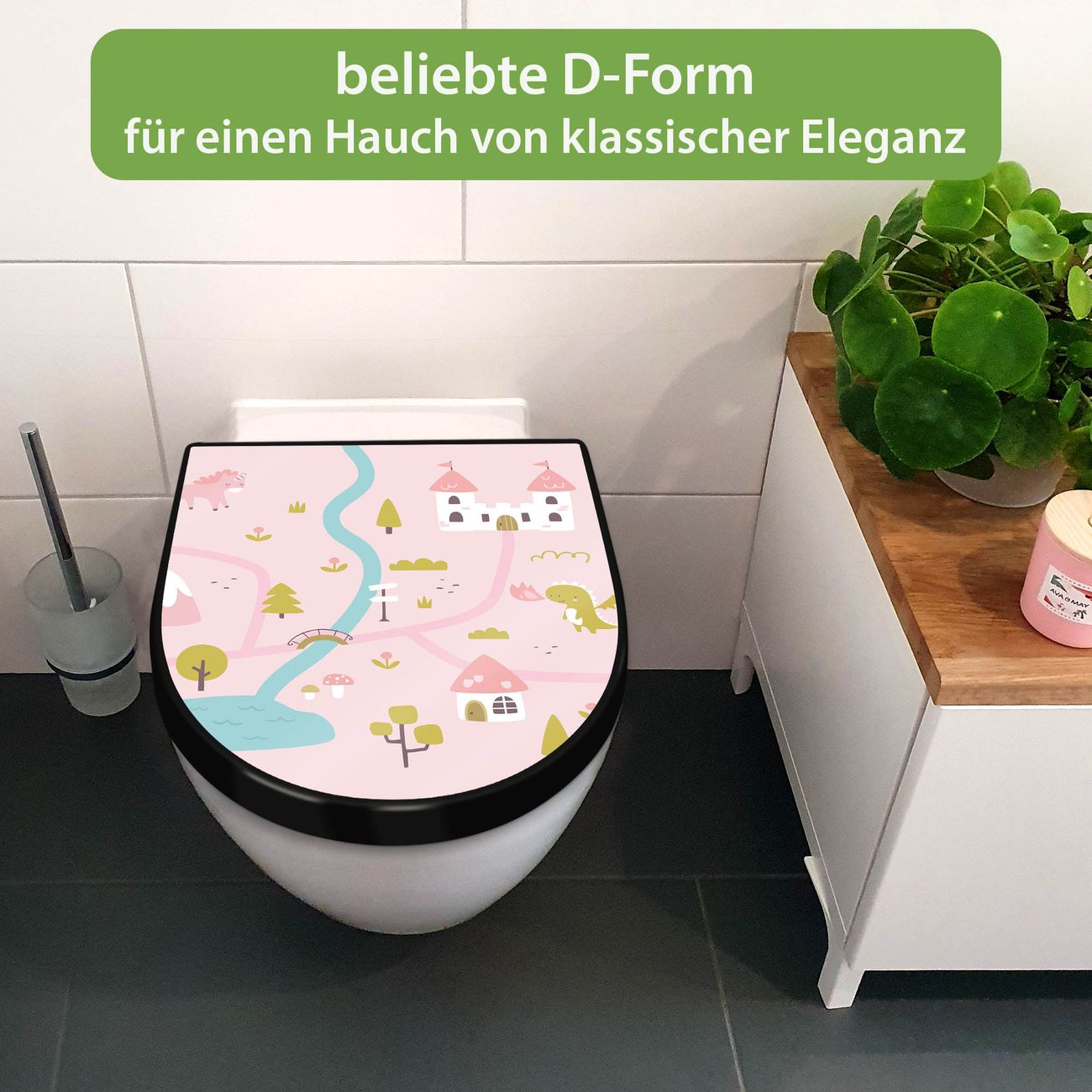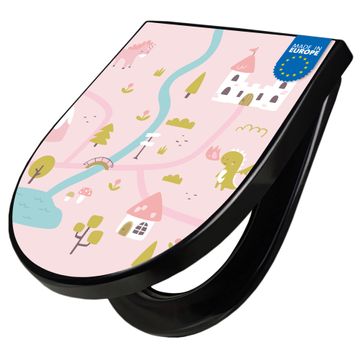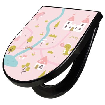 WC Sitz D-Form Schwarz mit Absenkautomatik Motiv Märchendorf 2