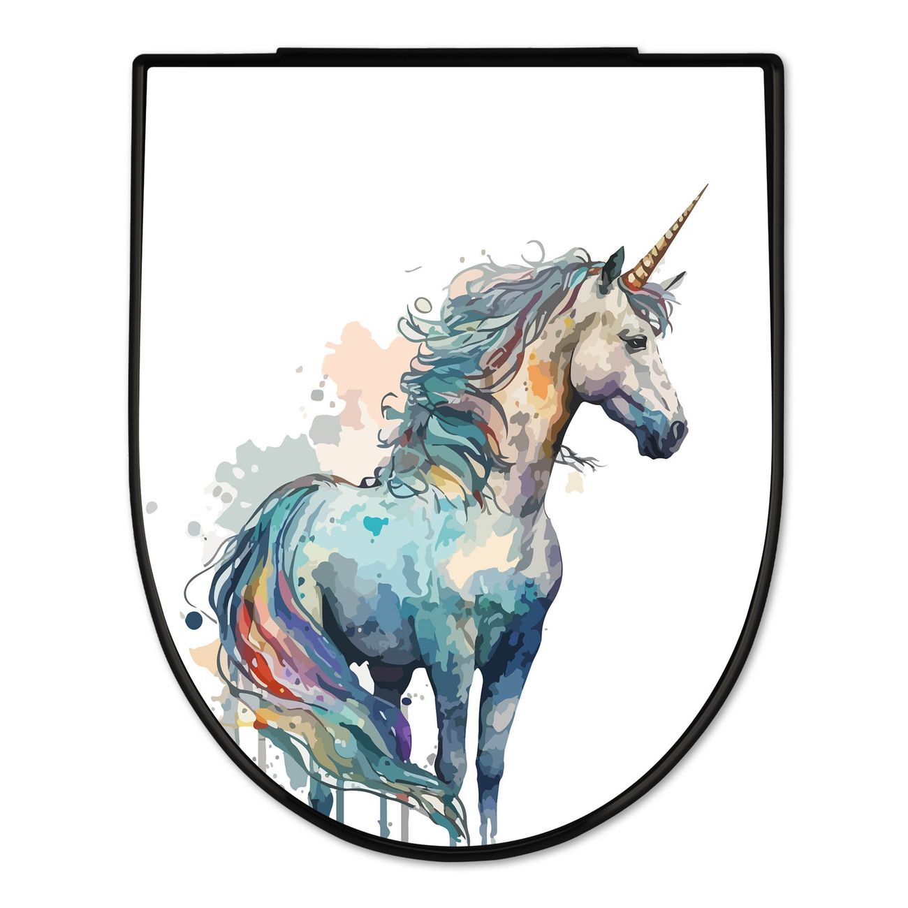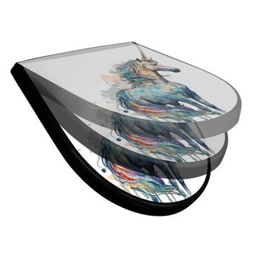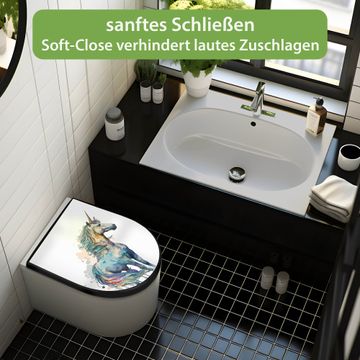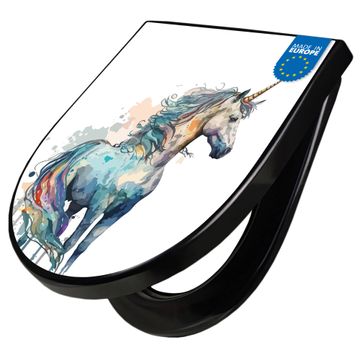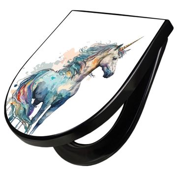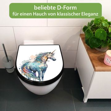 WC Sitz D-Form Schwarz mit Absenkautomatik Motiv Magisches Einhorn
