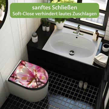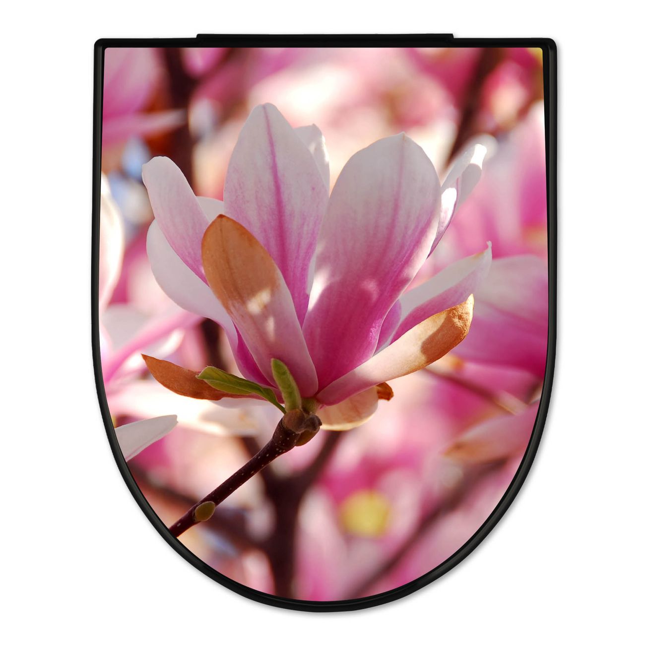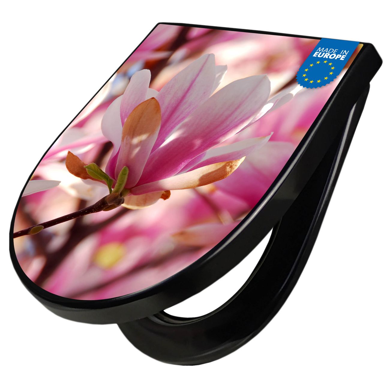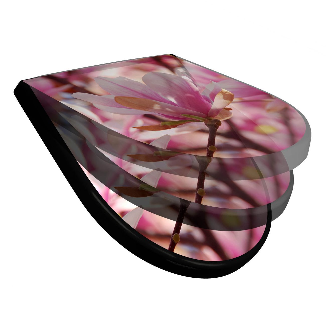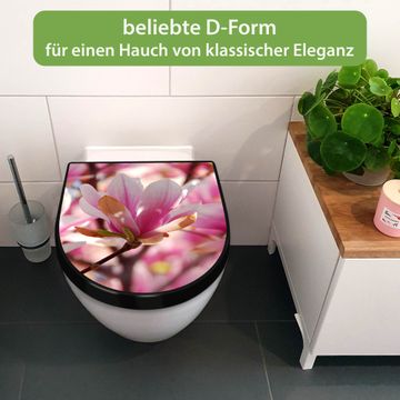 WC Sitz D-Form Schwarz mit Absenkautomatik Motiv Magnolia