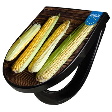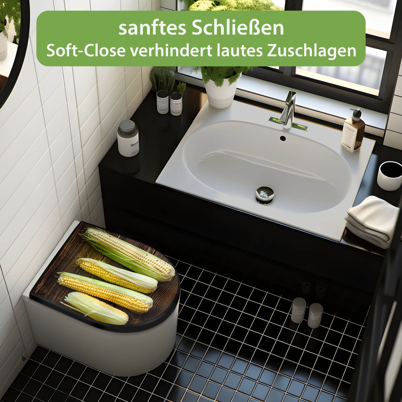 WC Sitz D-Form Schwarz mit Absenkautomatik Motiv Maiskolben