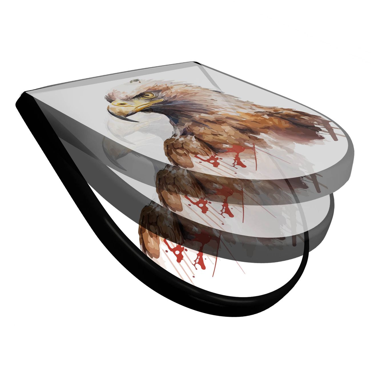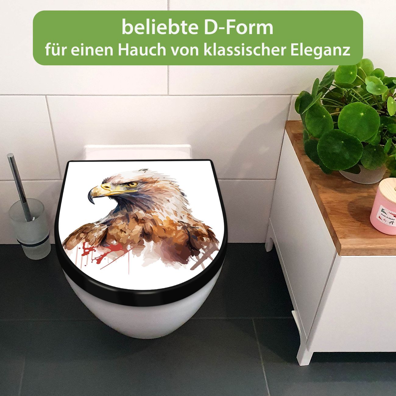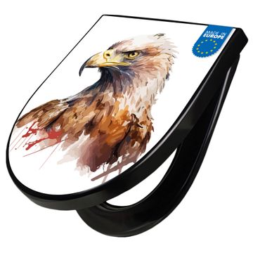 WC Sitz D-Form Schwarz mit Absenkautomatik Motiv Majestätischer Adler