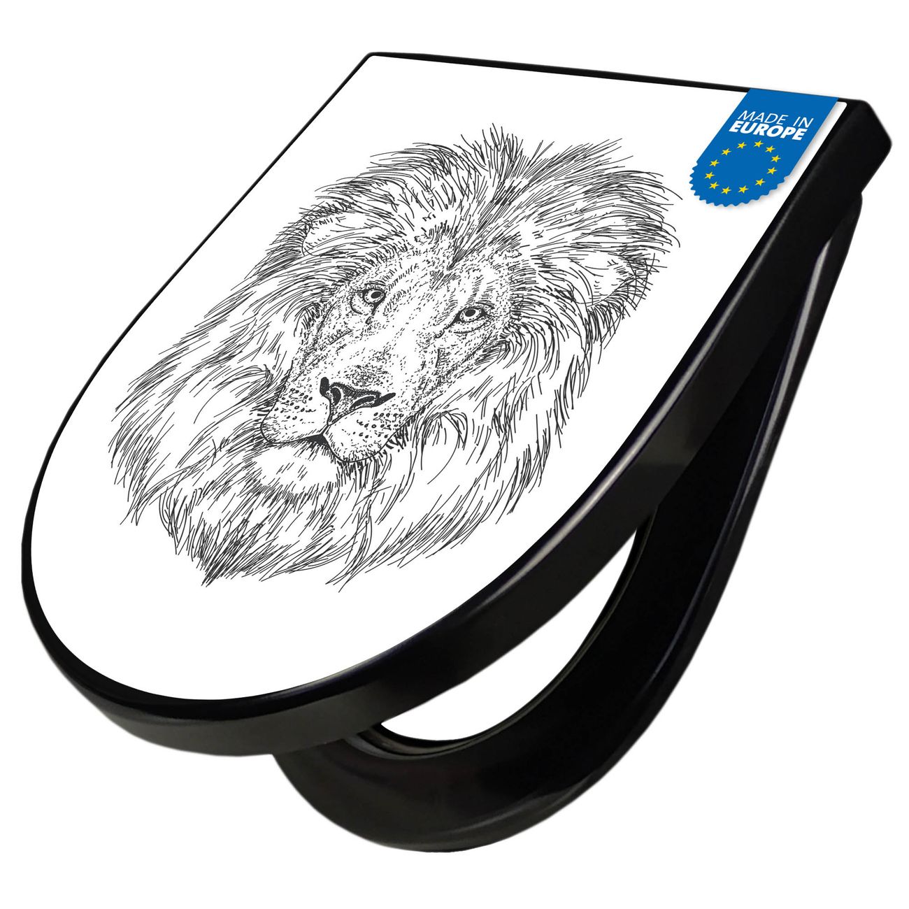 WC Sitz D-Form Schwarz mit Absenkautomatik Motiv Majestätischer Löwe