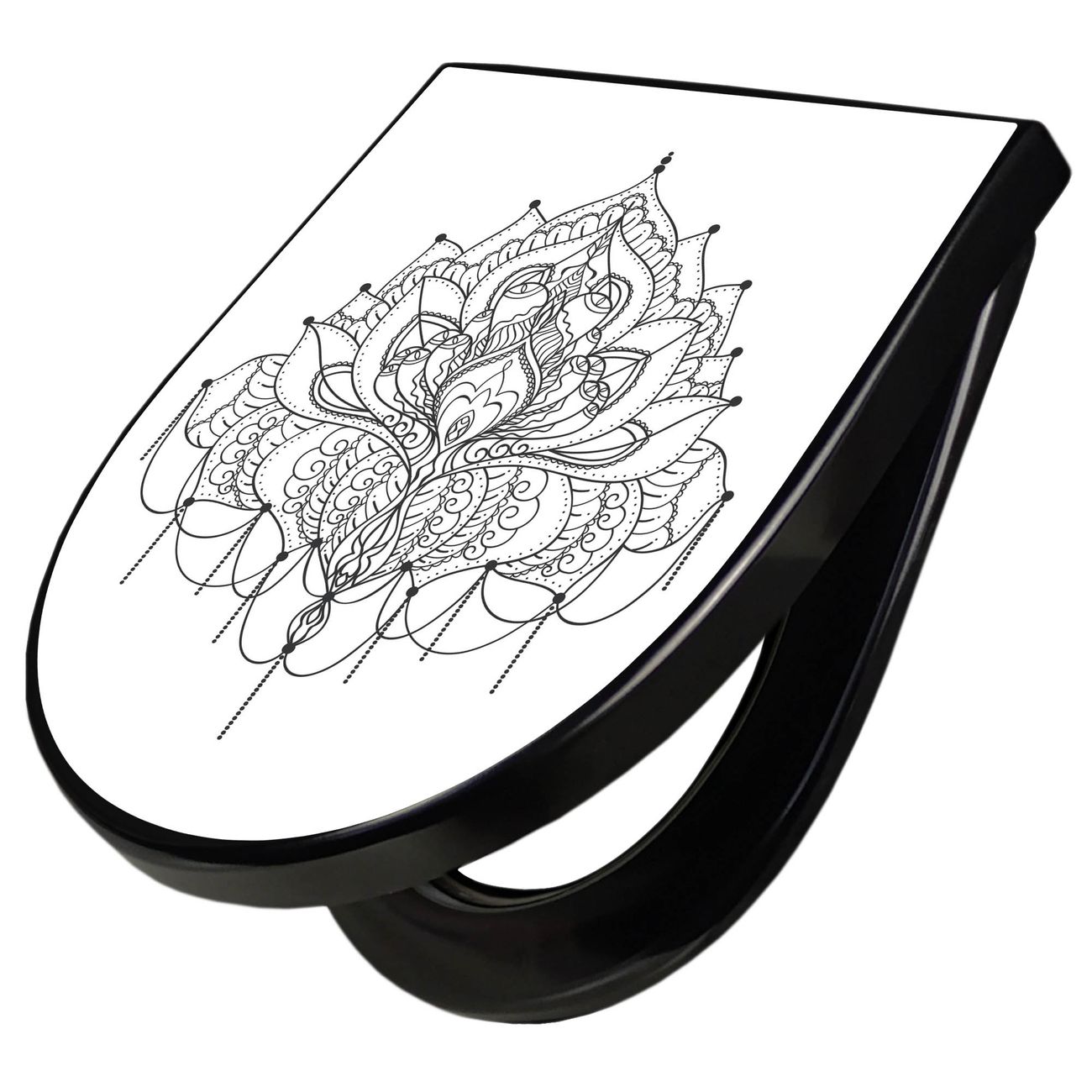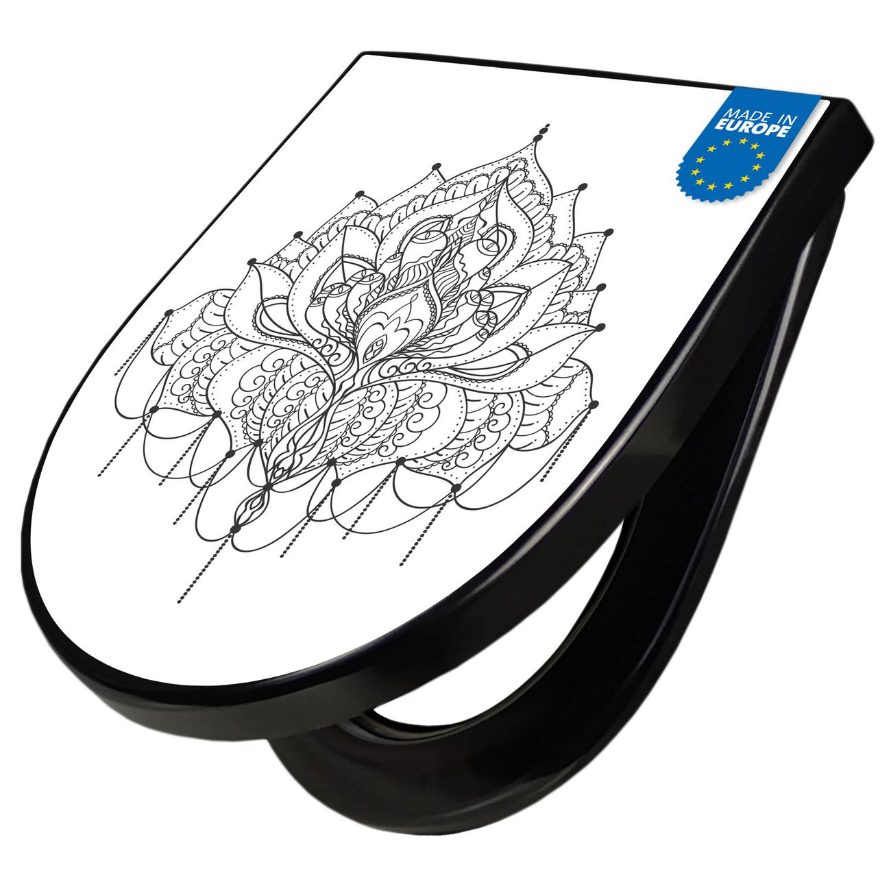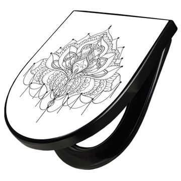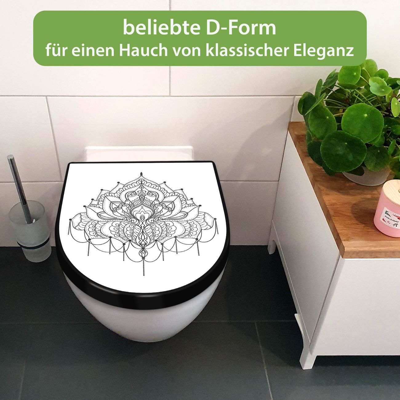 WC Sitz D-Form Schwarz mit Absenkautomatik Motiv Mandala Muster