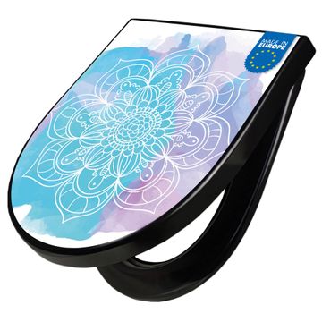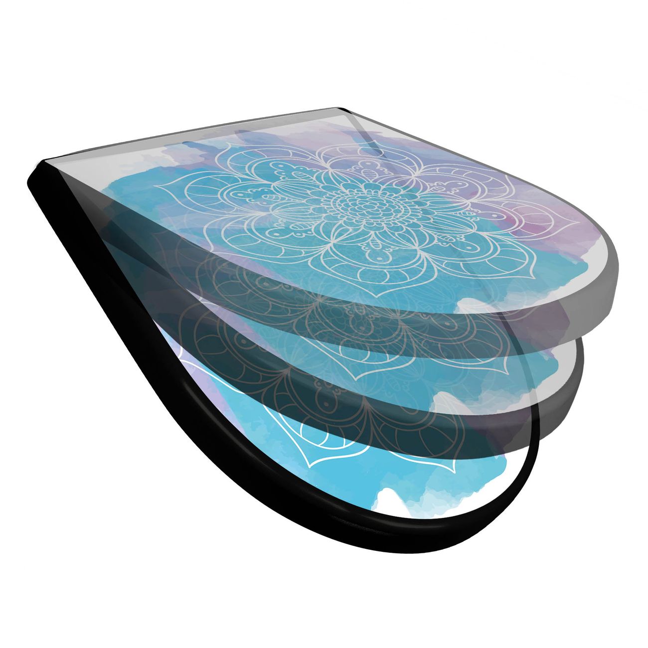 WC Sitz D-Form Schwarz mit Absenkautomatik Motiv Mandala Tranquility