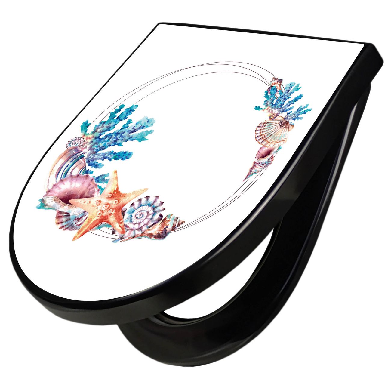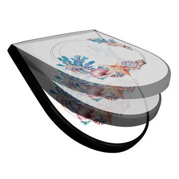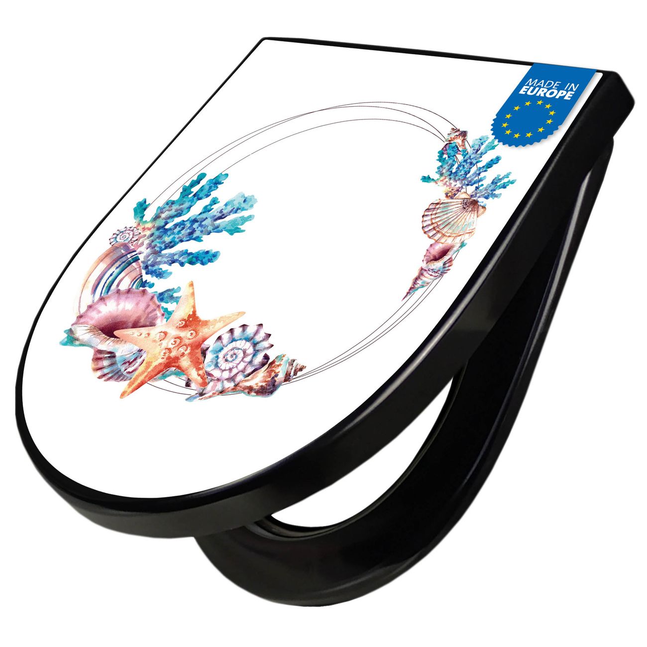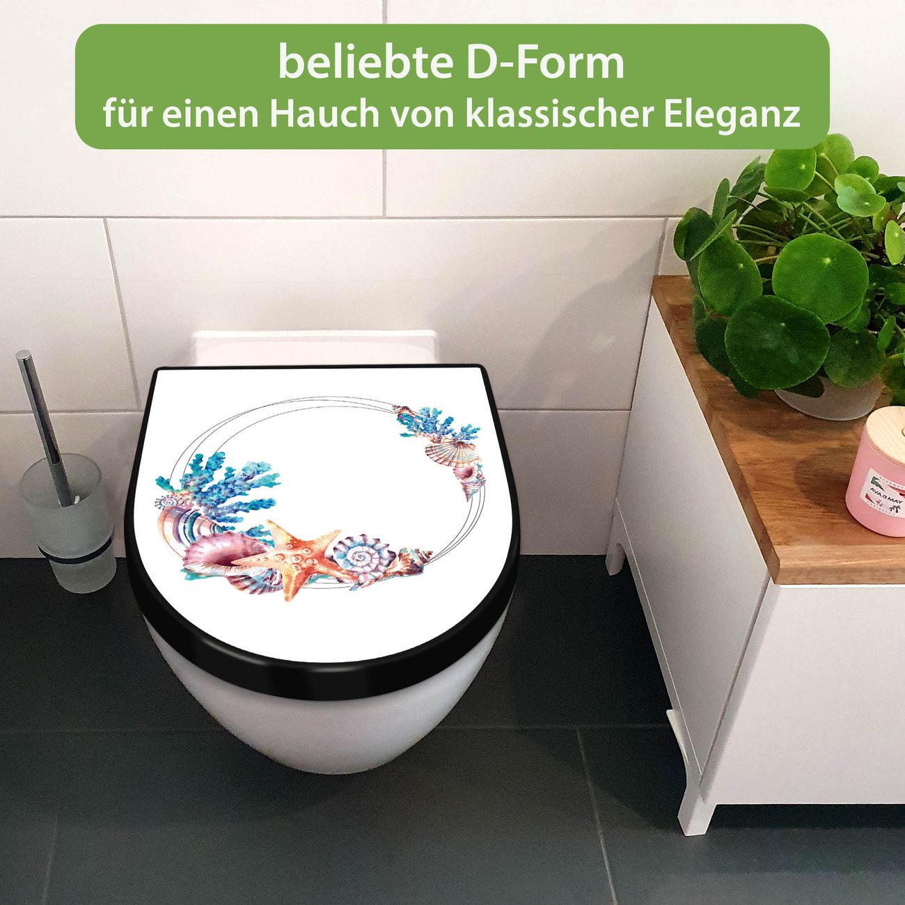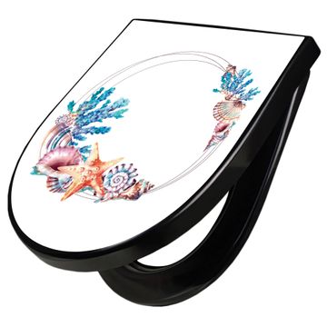 WC Sitz D-Form Schwarz mit Absenkautomatik Motiv Maritime Eleganz