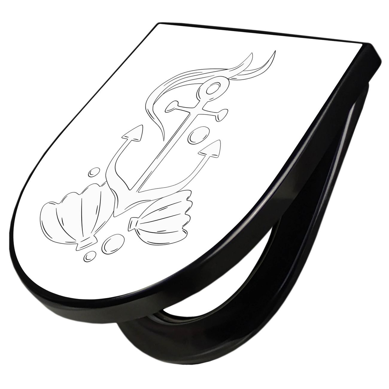WC Sitz D-Form Schwarz mit Absenkautomatik Motiv Maritimer Anker