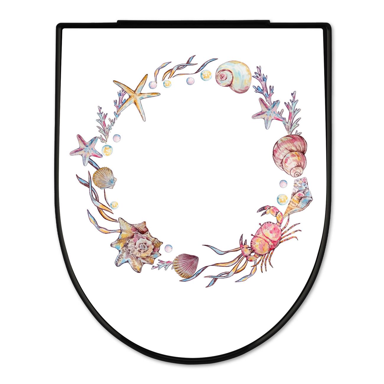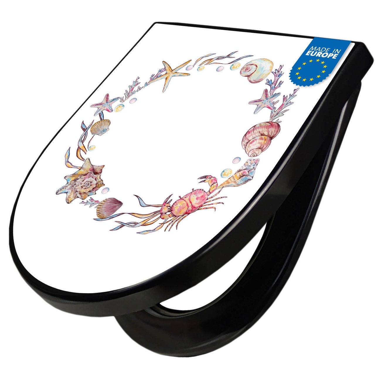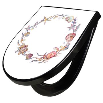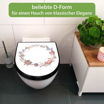 WC Sitz D-Form Schwarz mit Absenkautomatik Motiv Maritimer Kranz