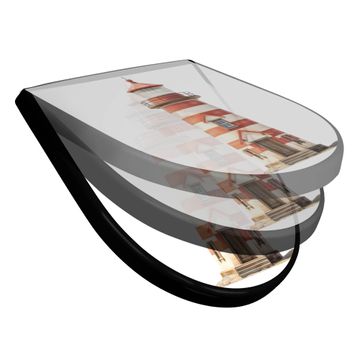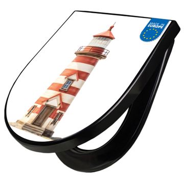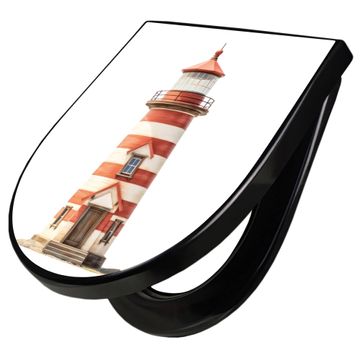 WC Sitz D-Form Schwarz mit Absenkautomatik Motiv Maritimer Leuchtturm
