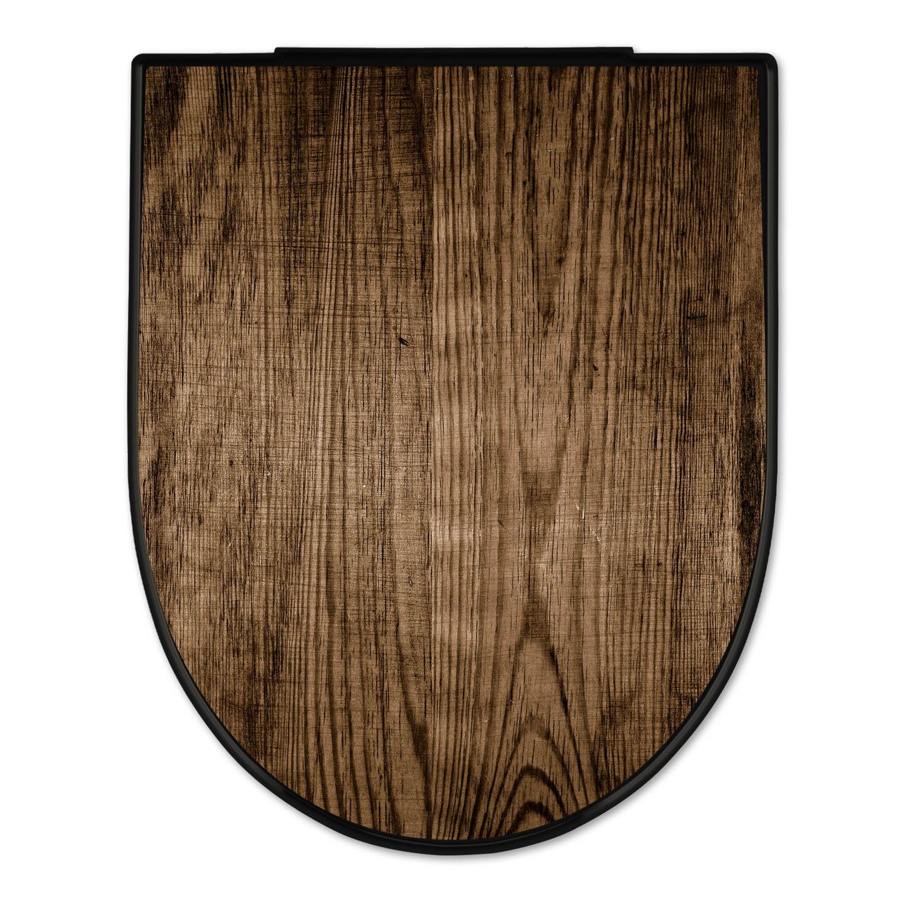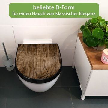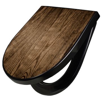 WC Sitz D-Form Schwarz mit Absenkautomatik Motiv Maserung Dunkel