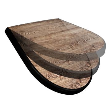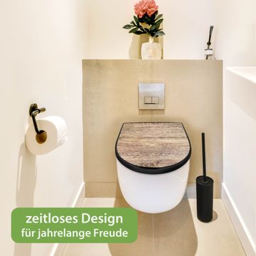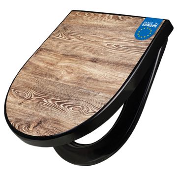 WC Sitz D-Form Schwarz mit Absenkautomatik Motiv Maserung