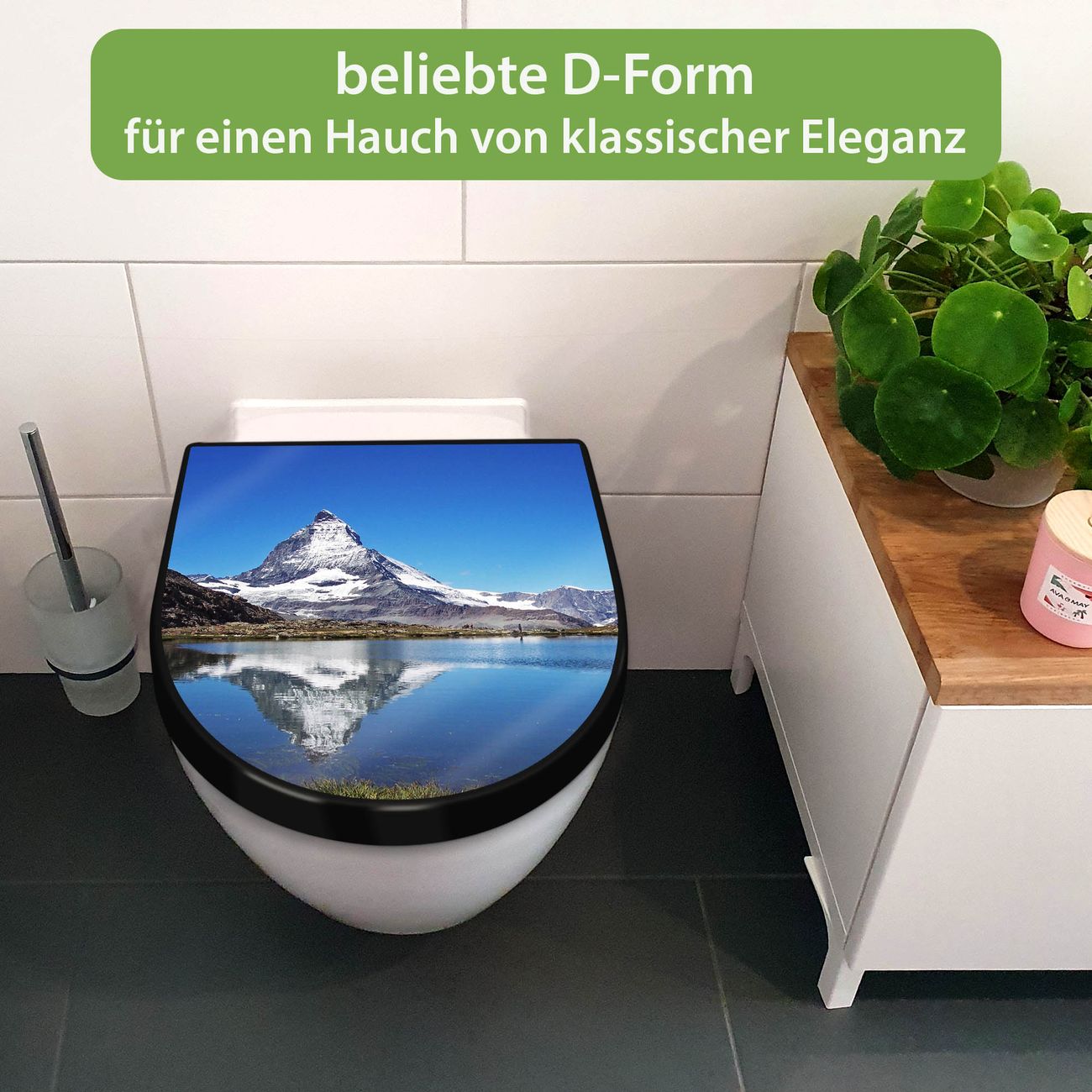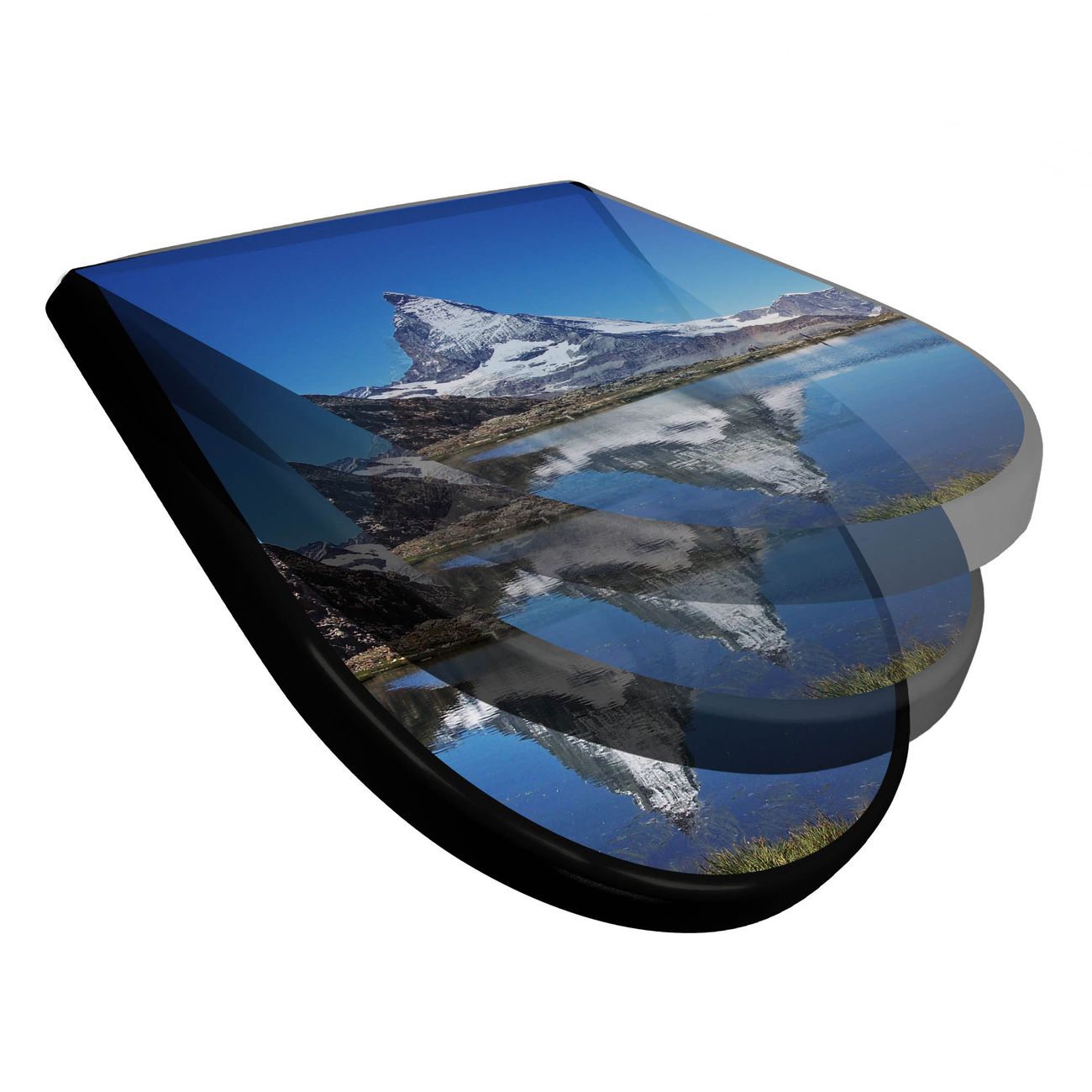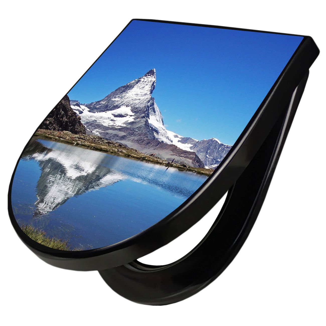 WC Sitz D-Form Schwarz mit Absenkautomatik Motiv Matterhorn