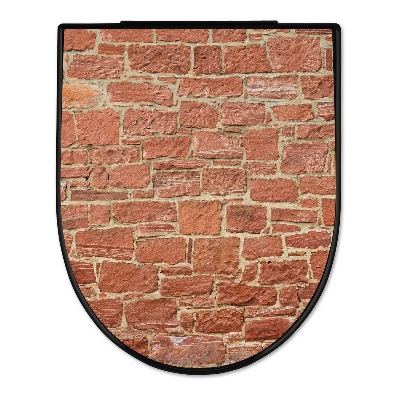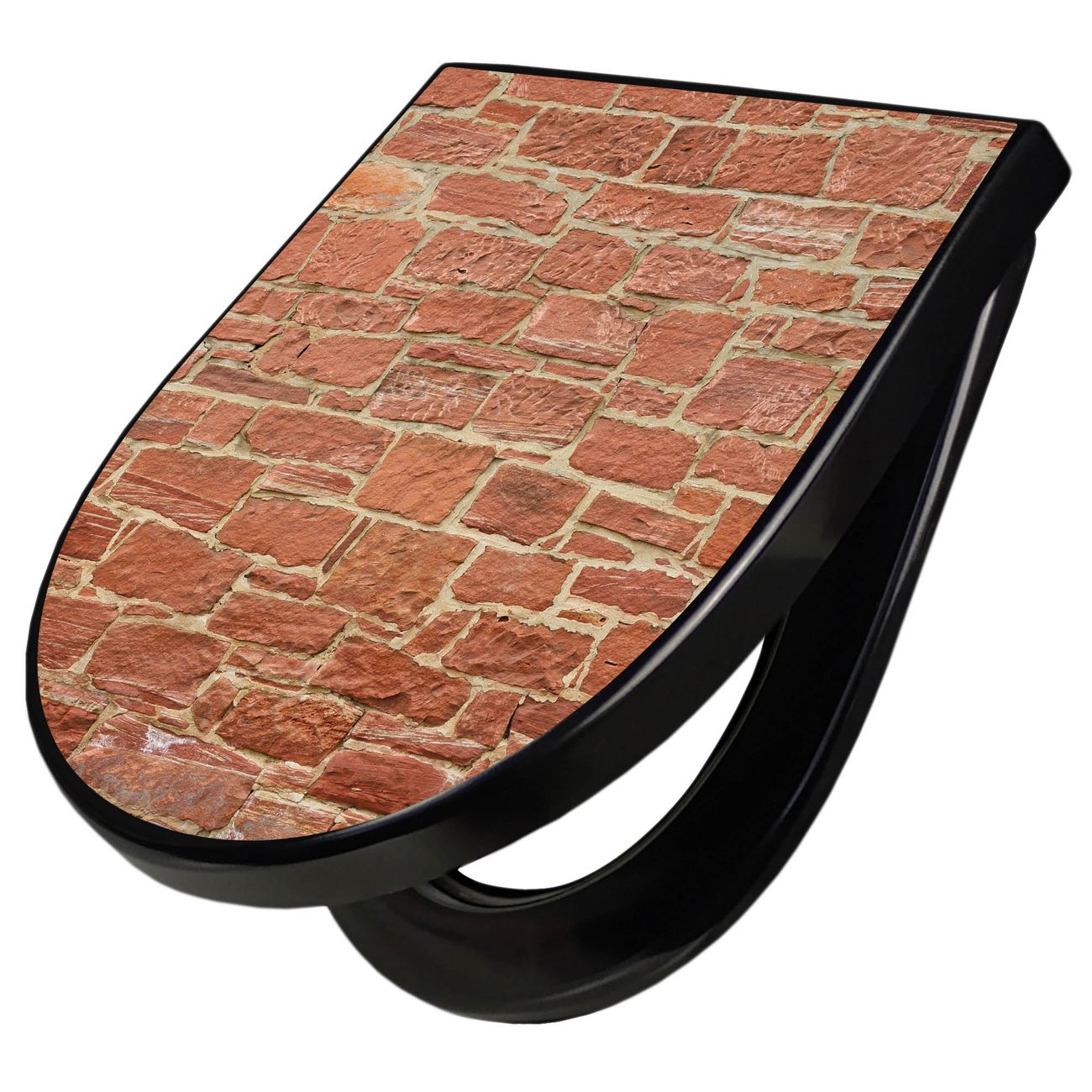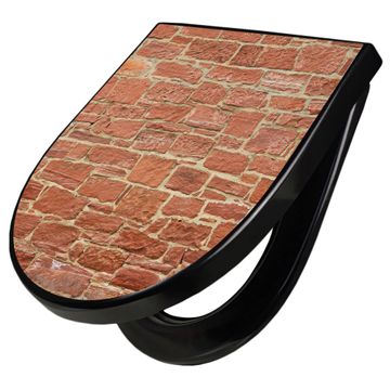 WC Sitz D-Form Schwarz mit Absenkautomatik Motiv Mauerwerk