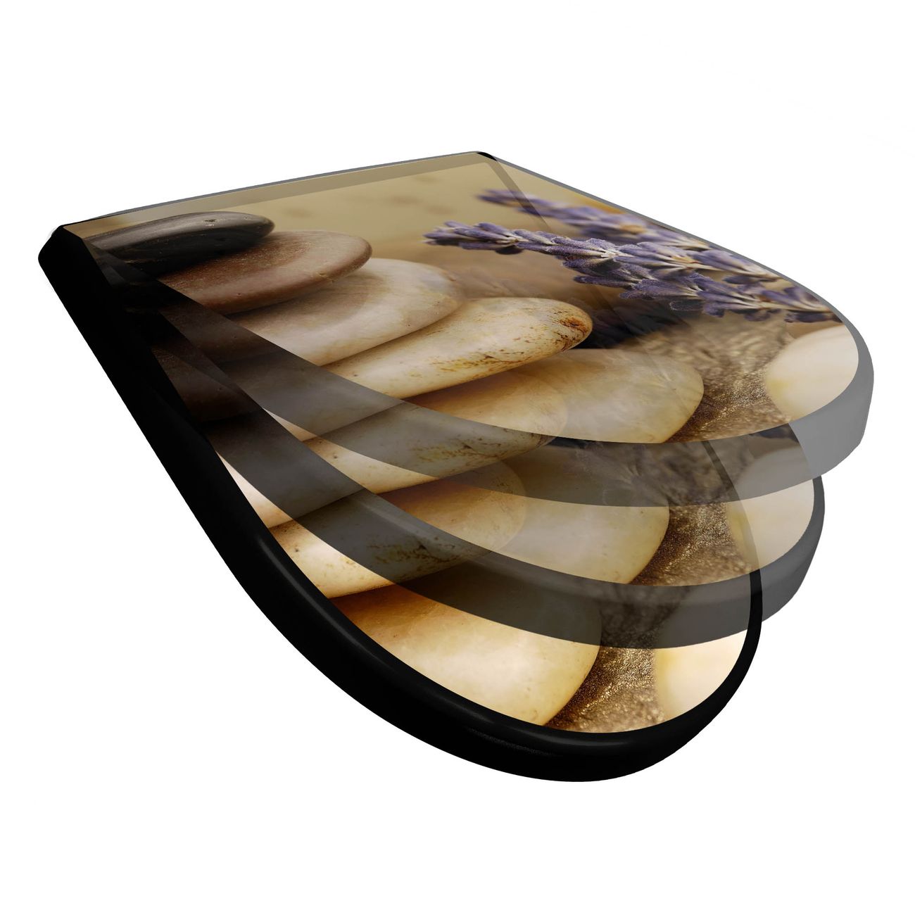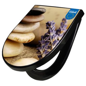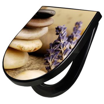 WC Sitz D-Form Schwarz mit Absenkautomatik Motiv Meditation
