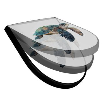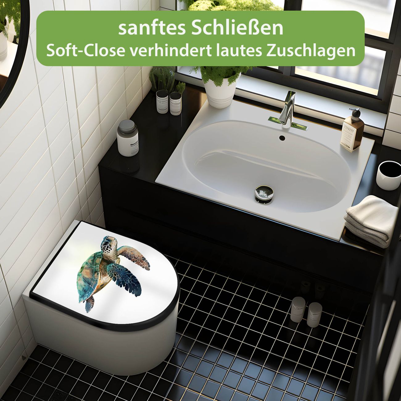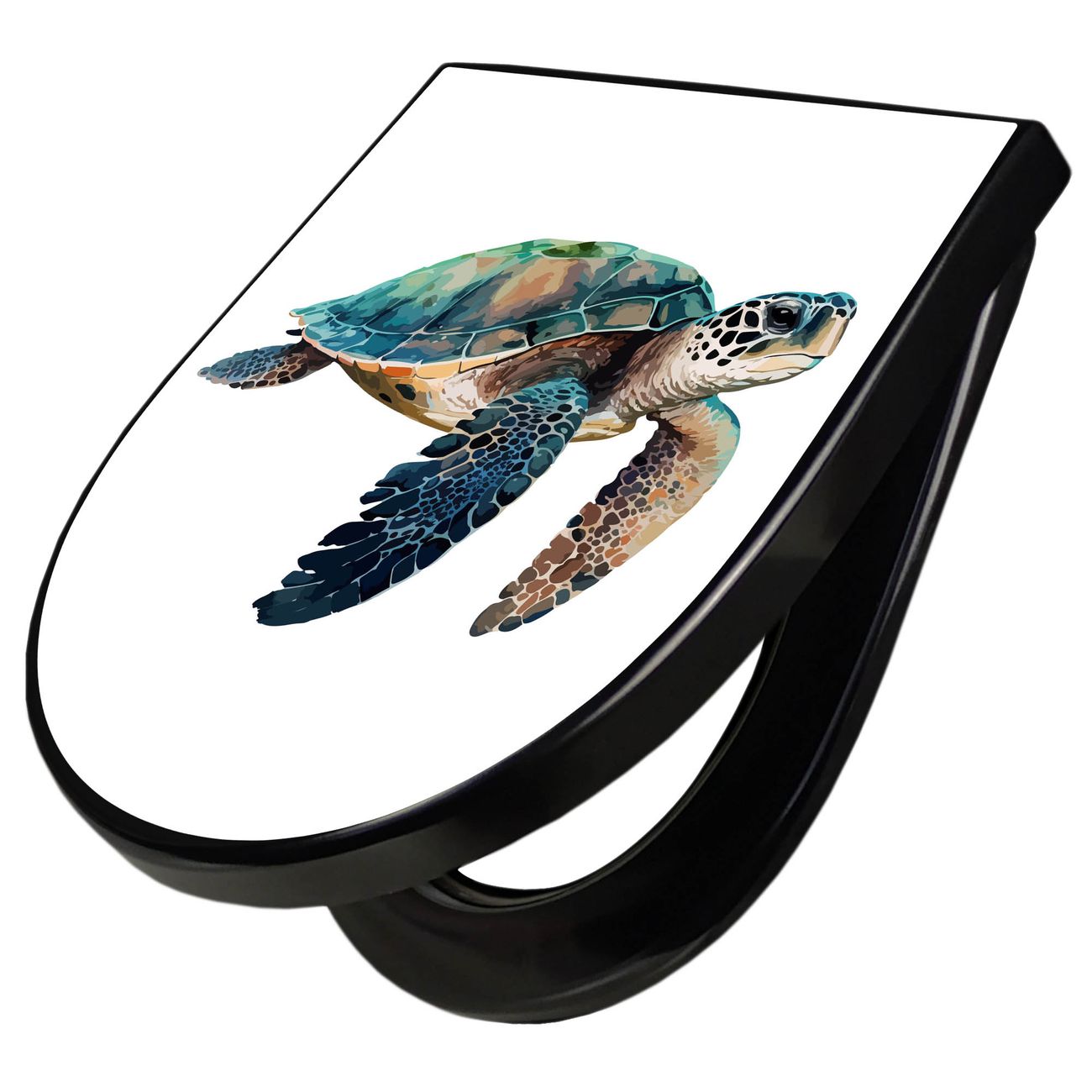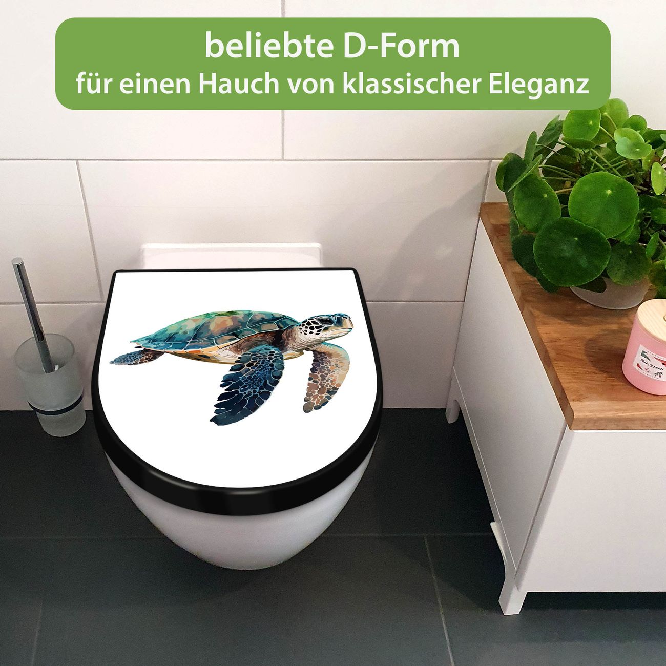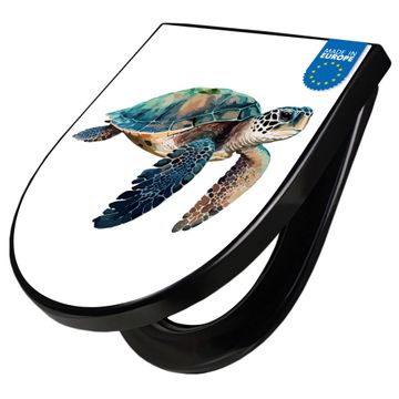 WC Sitz D-Form Schwarz mit Absenkautomatik Motiv Meeresschildkröte Aquarell