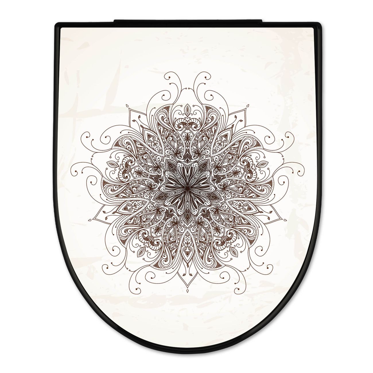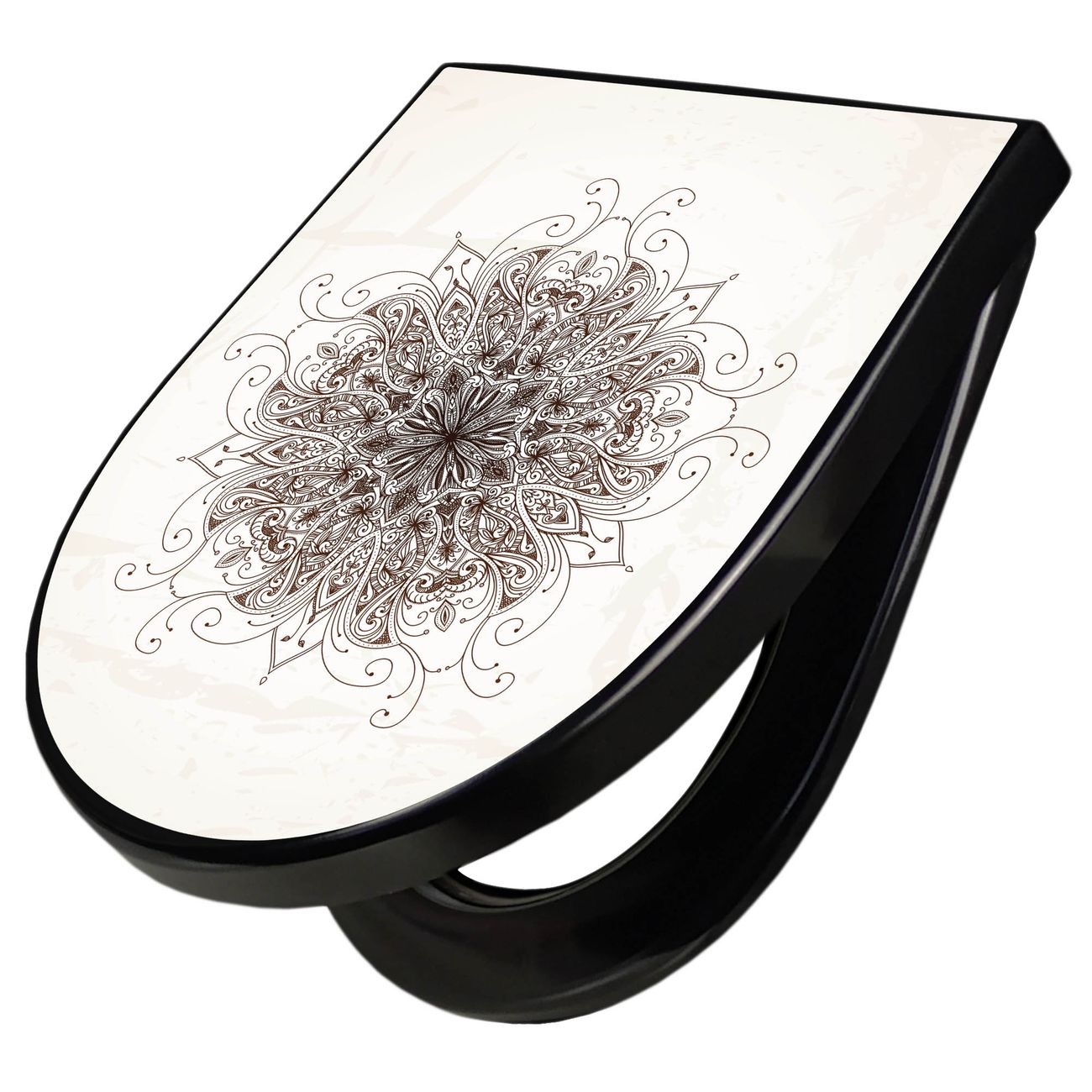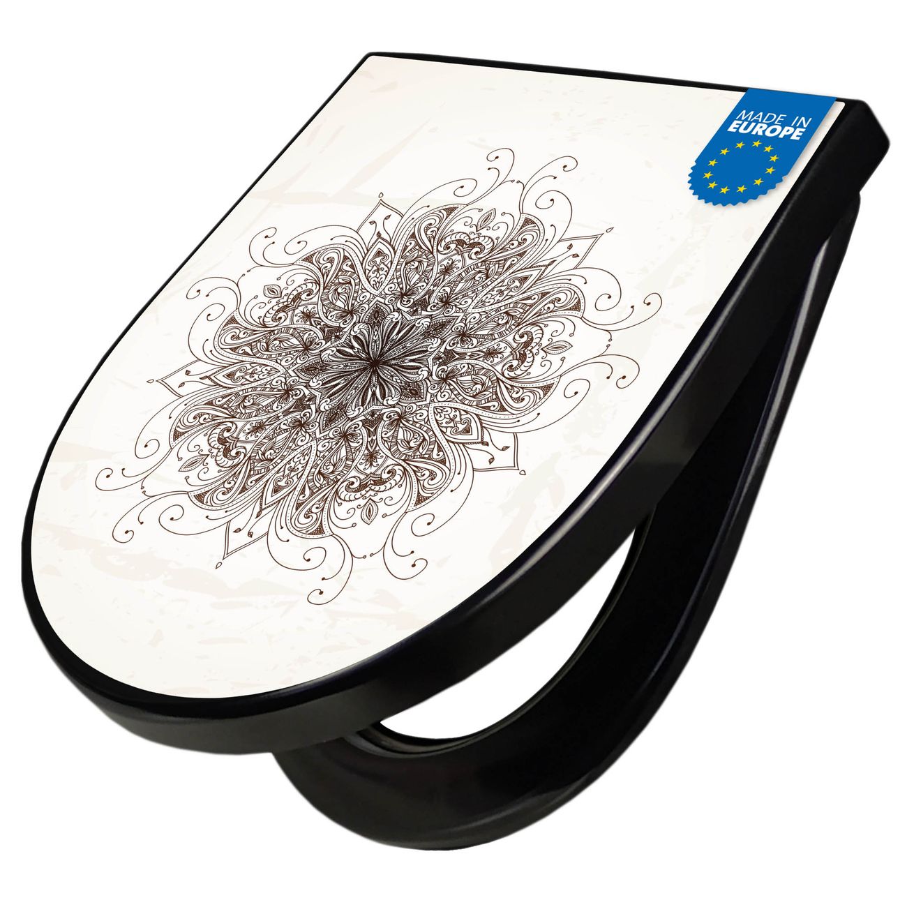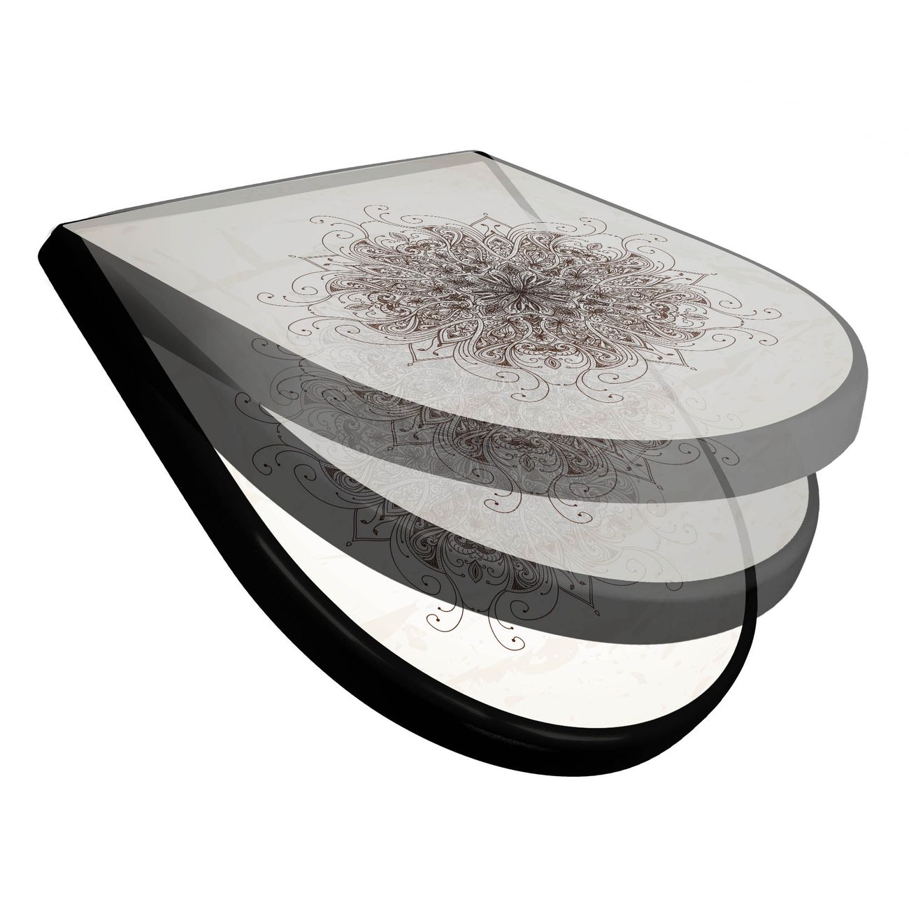 WC Sitz D-Form Schwarz mit Absenkautomatik Motiv Mehendi