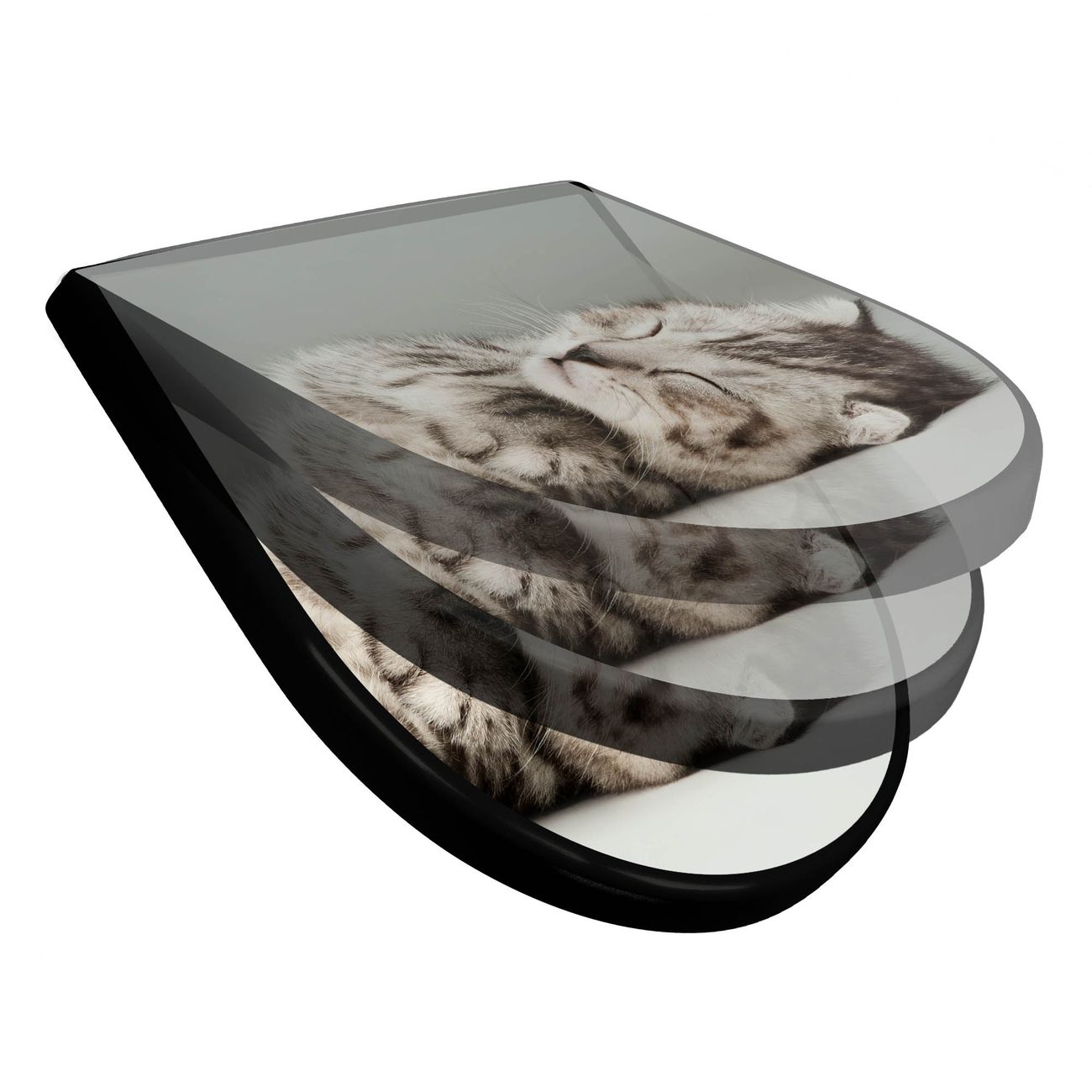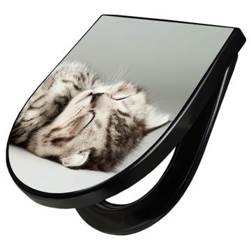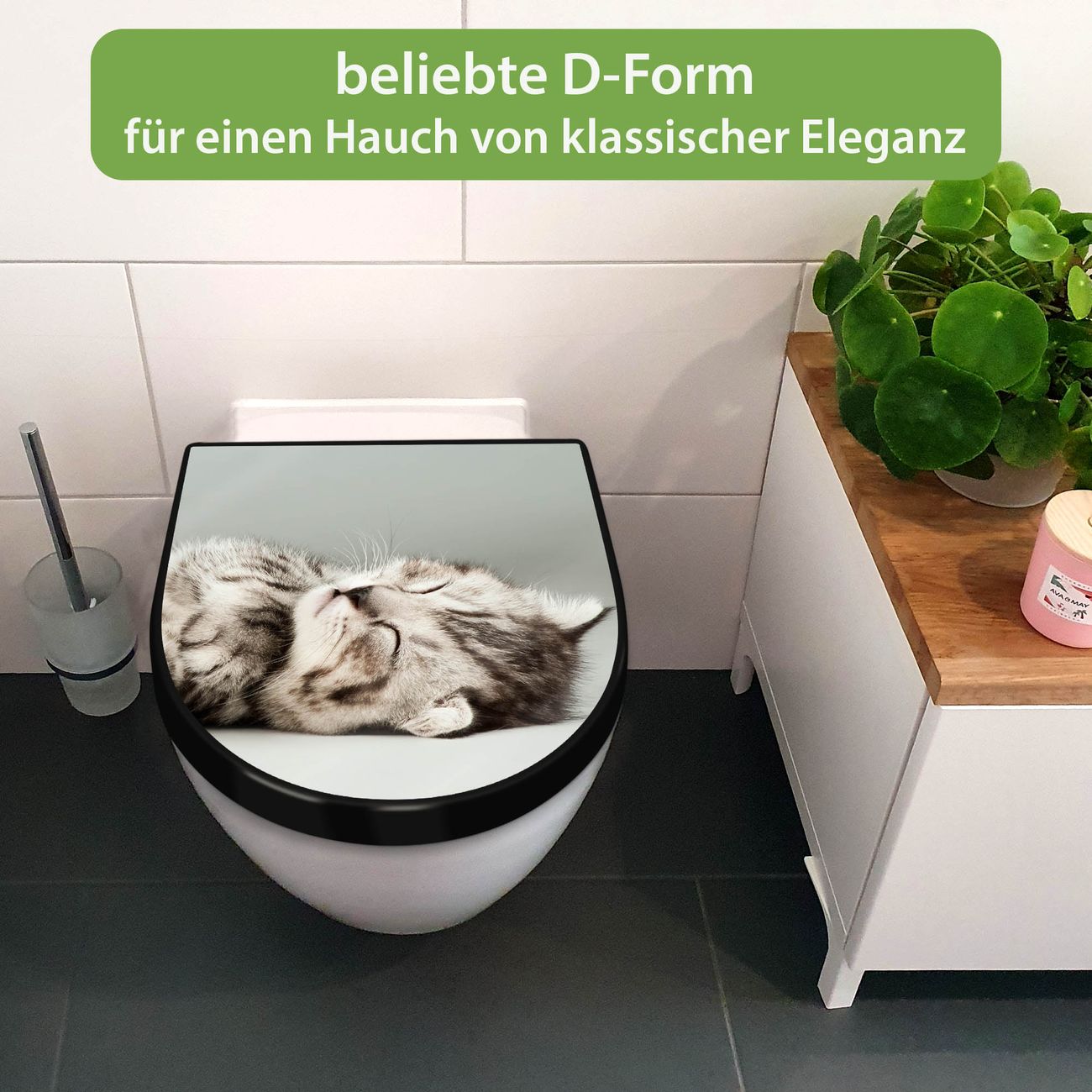 WC Sitz D-Form Schwarz mit Absenkautomatik Motiv Mini Und Jerry