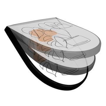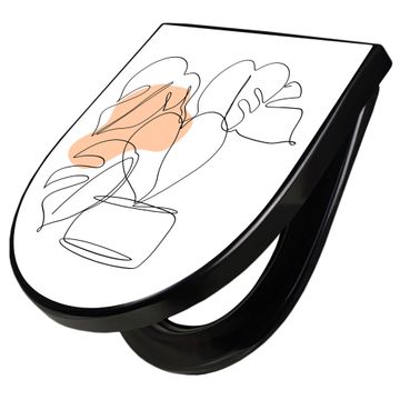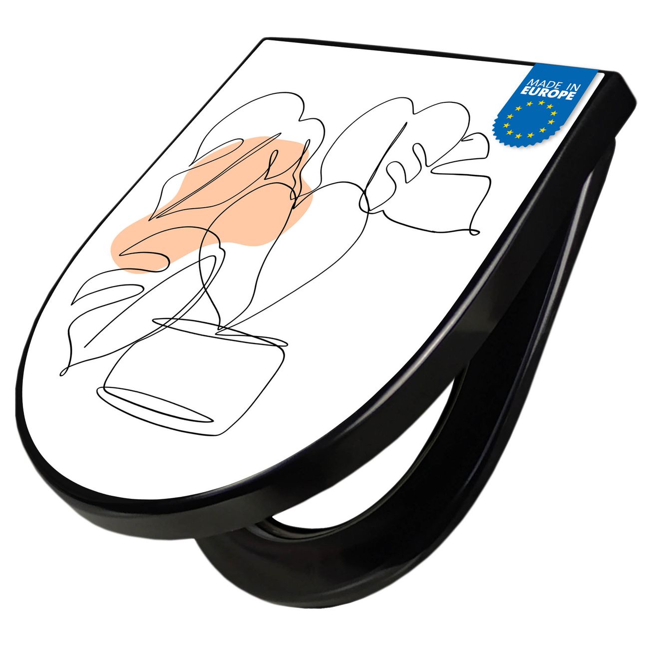 WC Sitz D-Form Schwarz mit Absenkautomatik Motiv Minimalistische Pflanzen Lineart