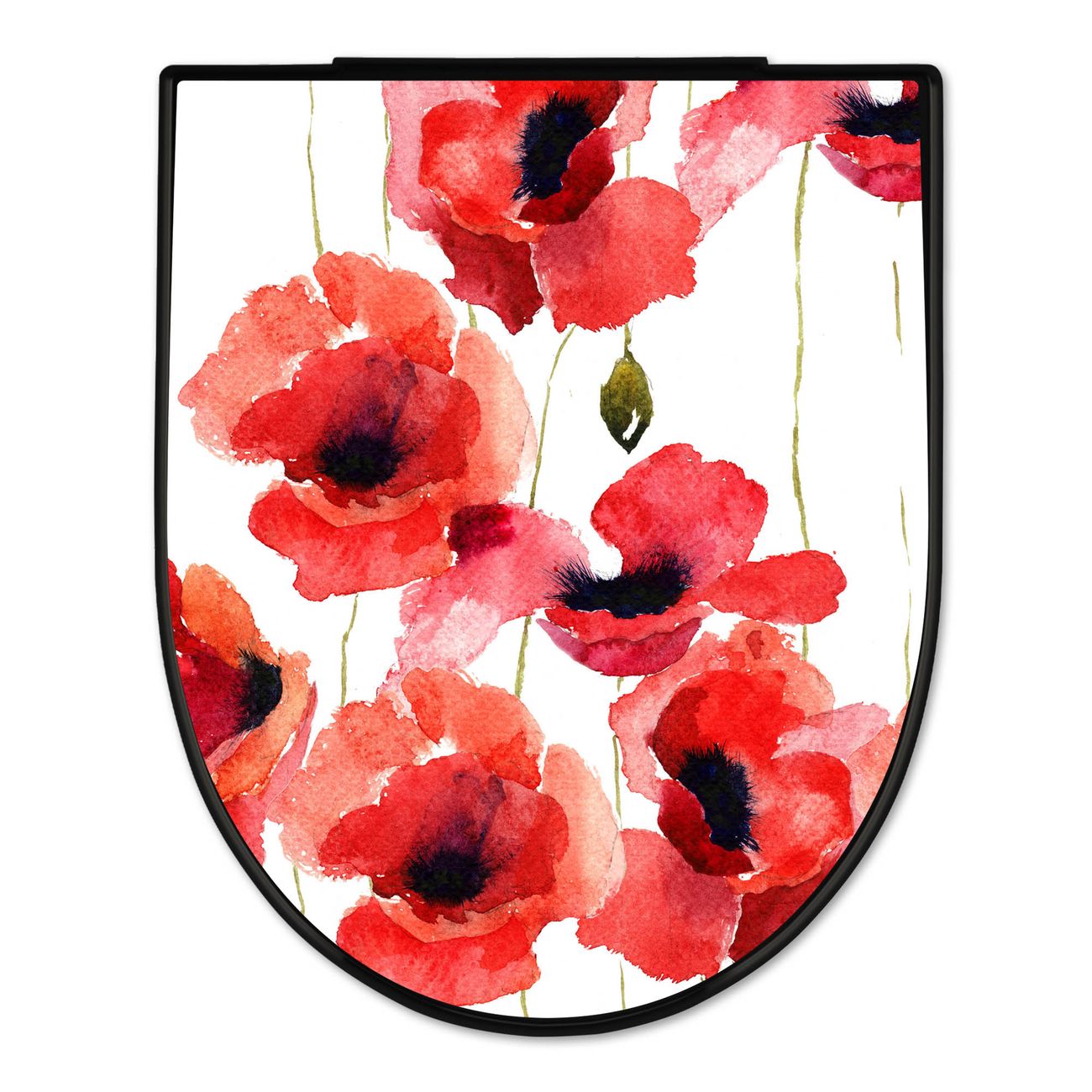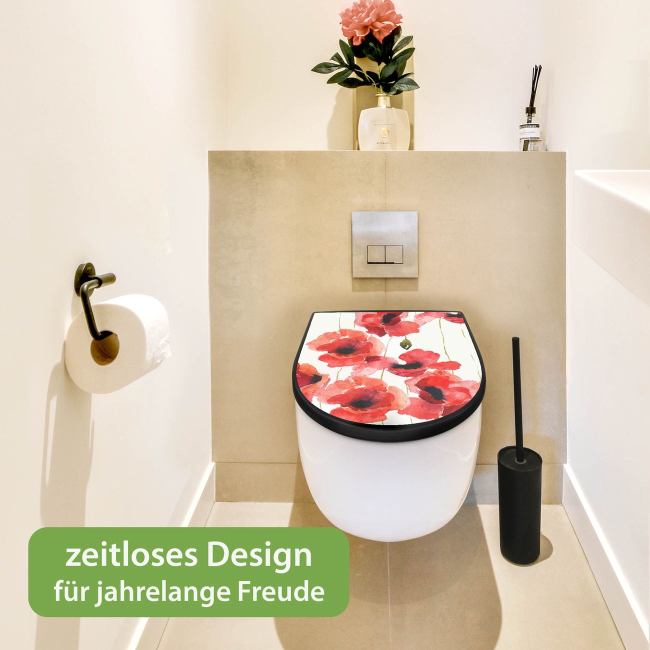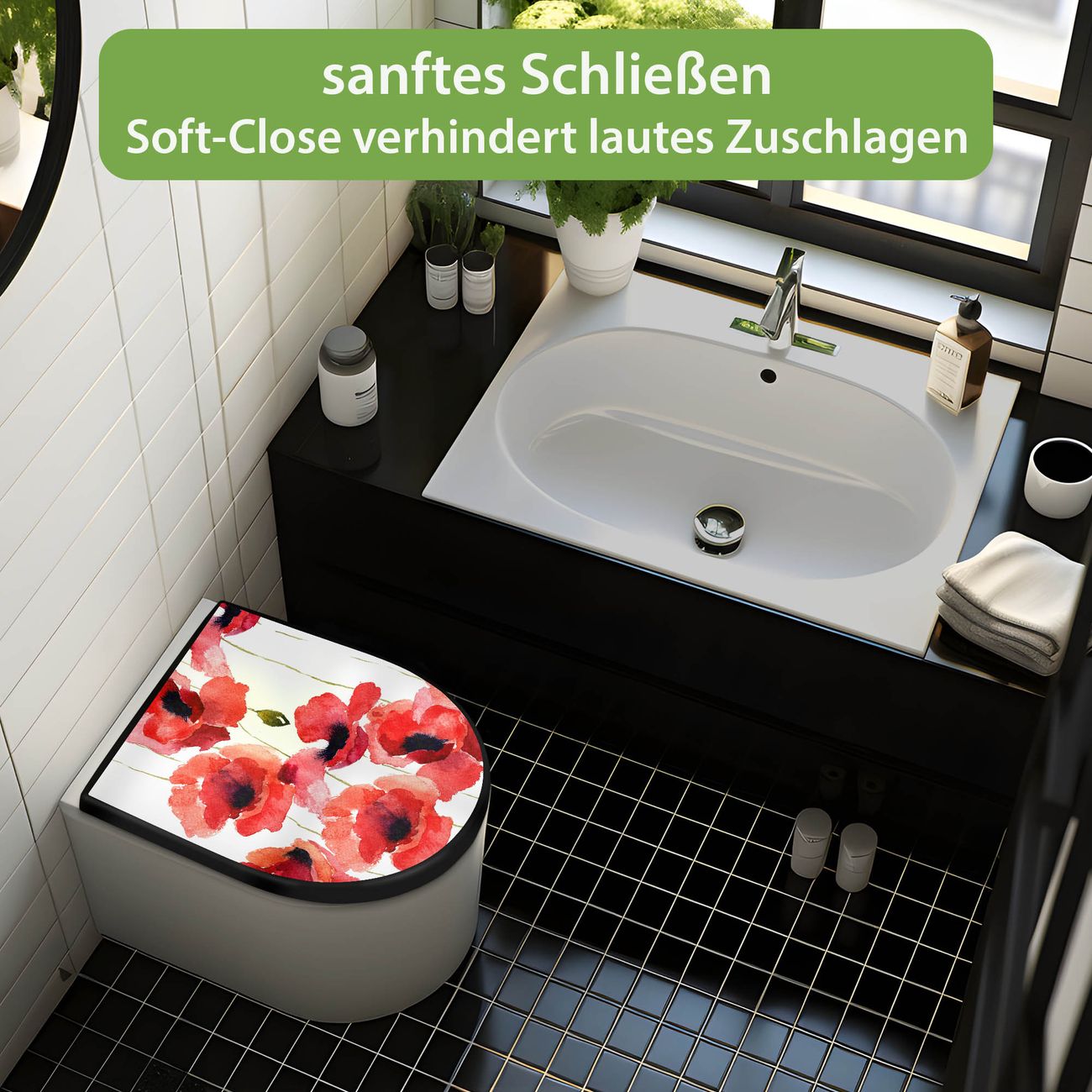 WC Sitz D-Form Schwarz mit Absenkautomatik Motiv Mohn Aquarell