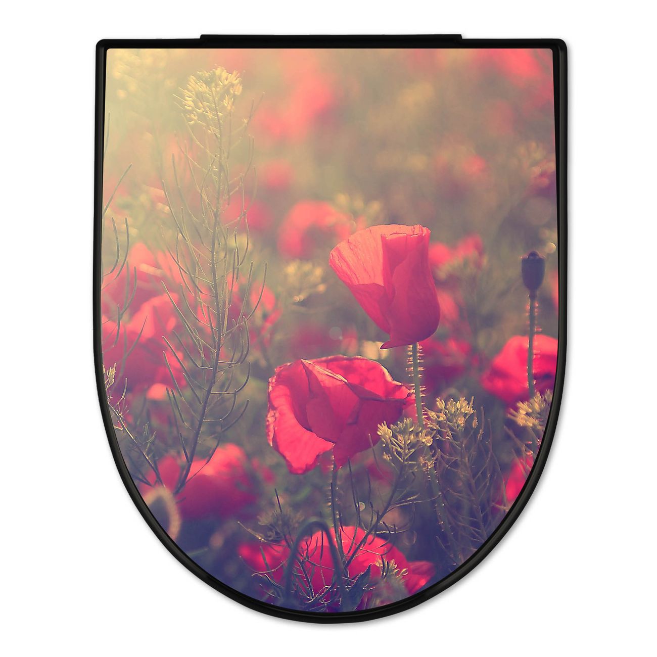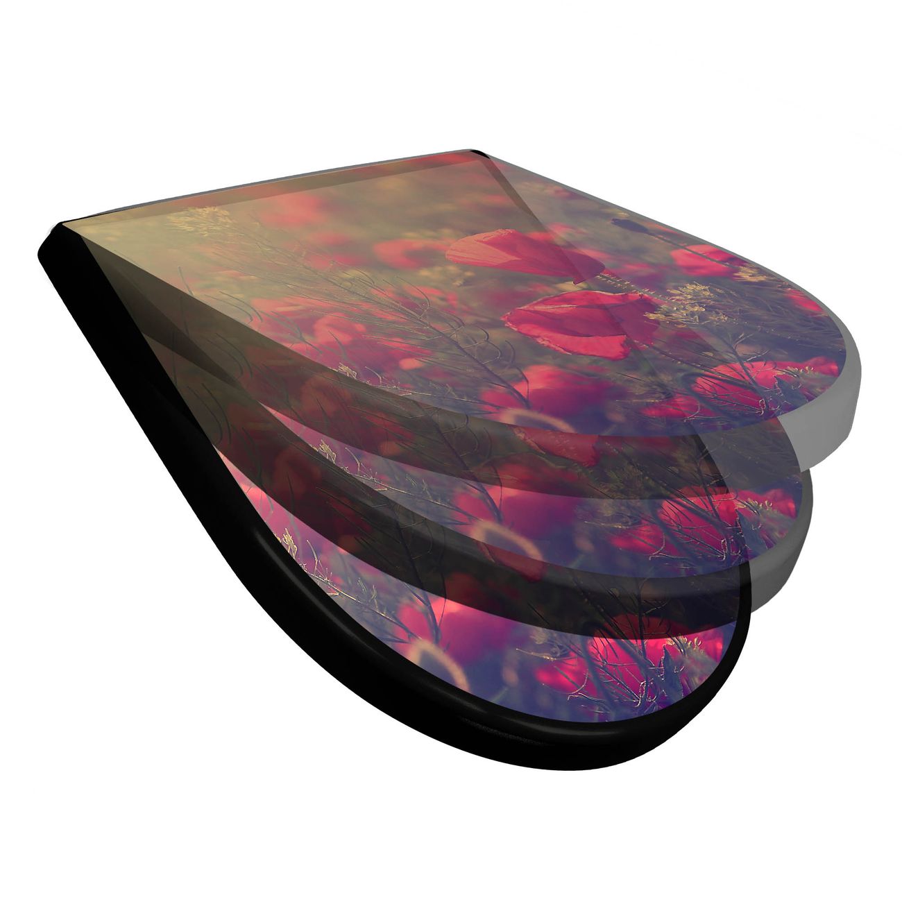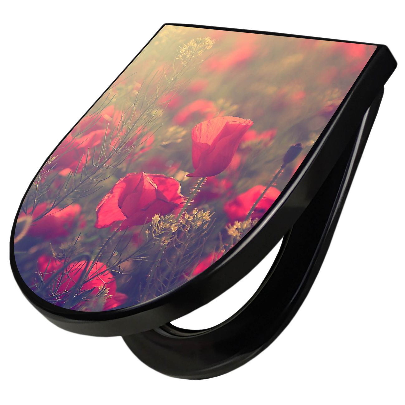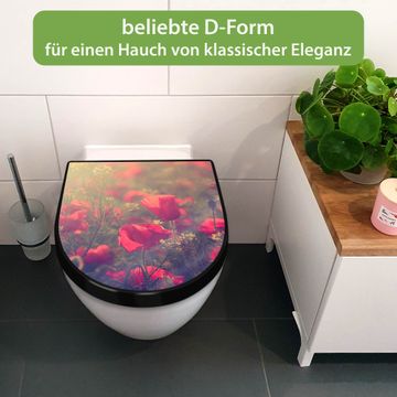 WC Sitz D-Form Schwarz mit Absenkautomatik Motiv Mohn
