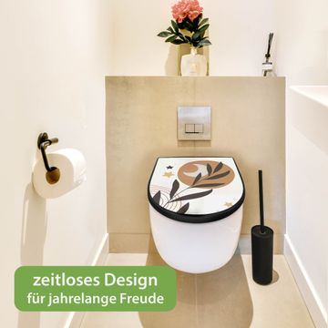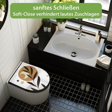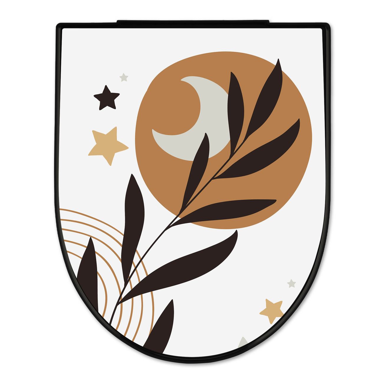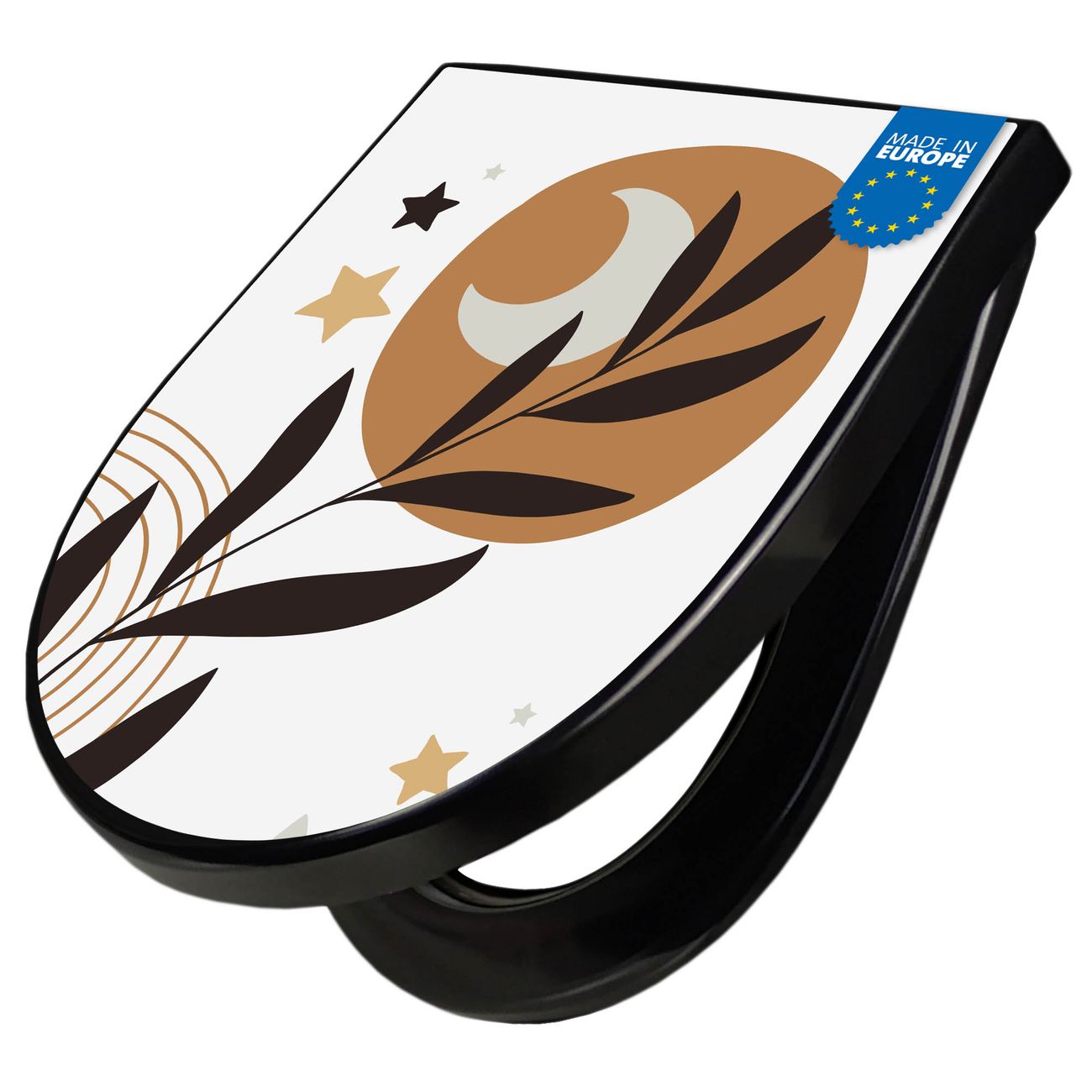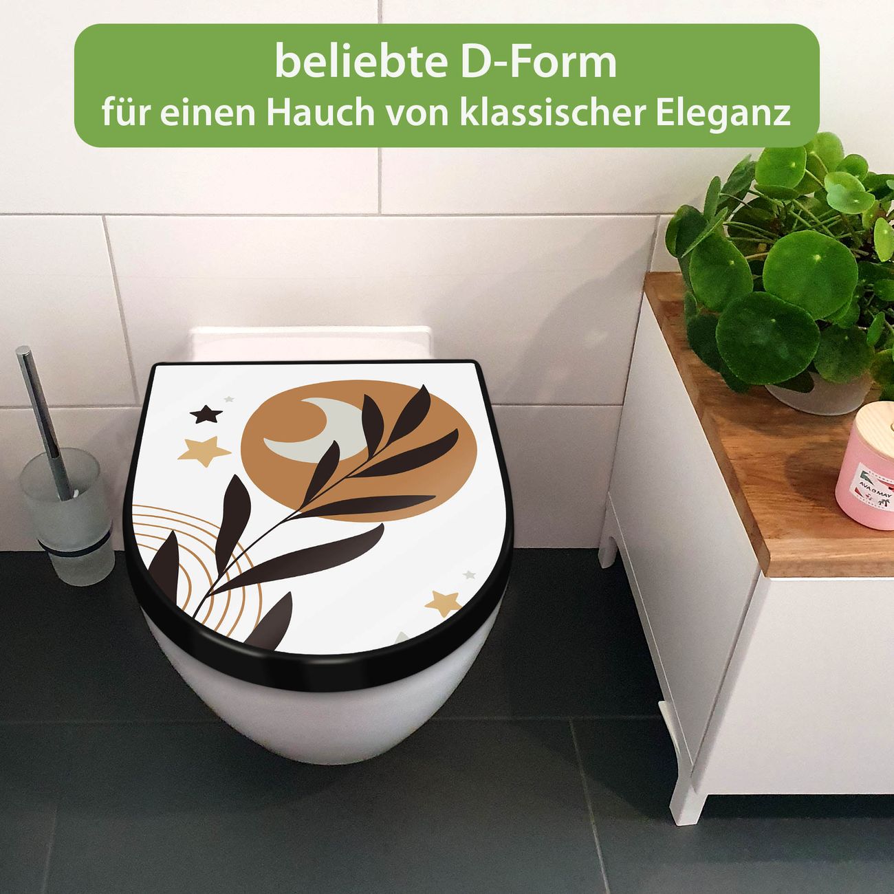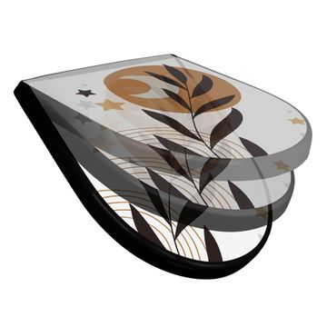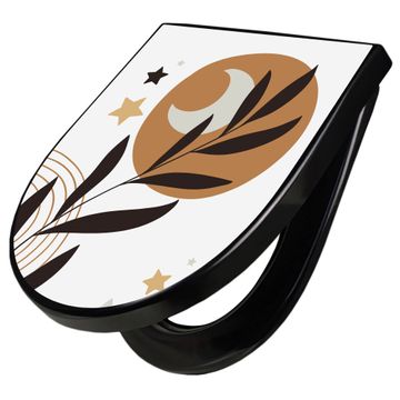 WC Sitz D-Form Schwarz mit Absenkautomatik Motiv Mond und Blätter Komposition