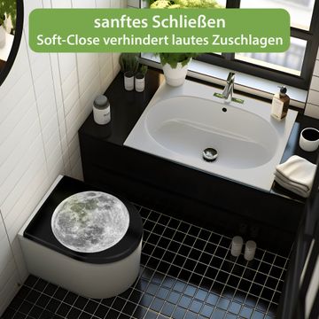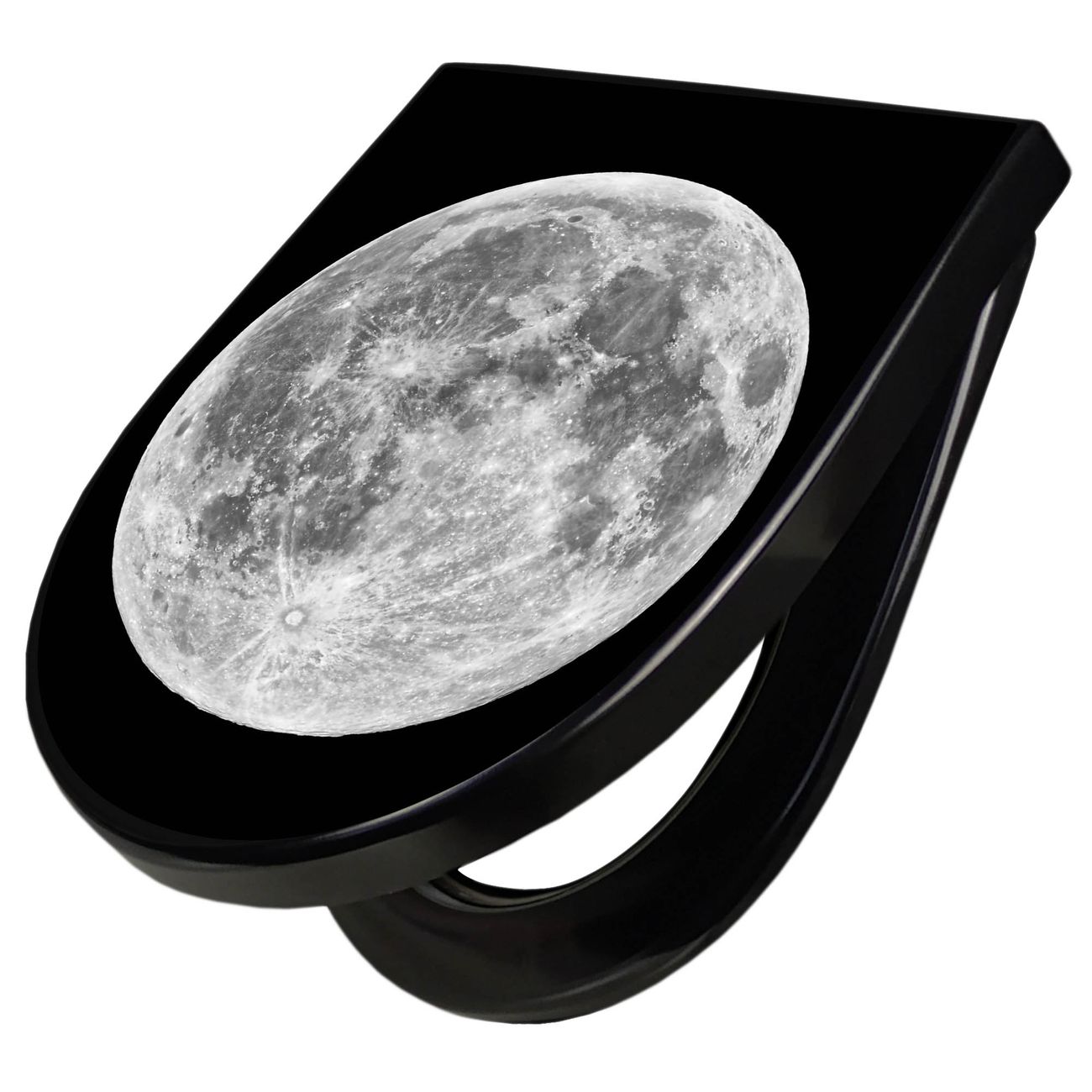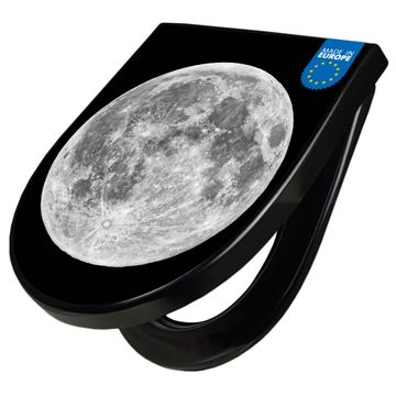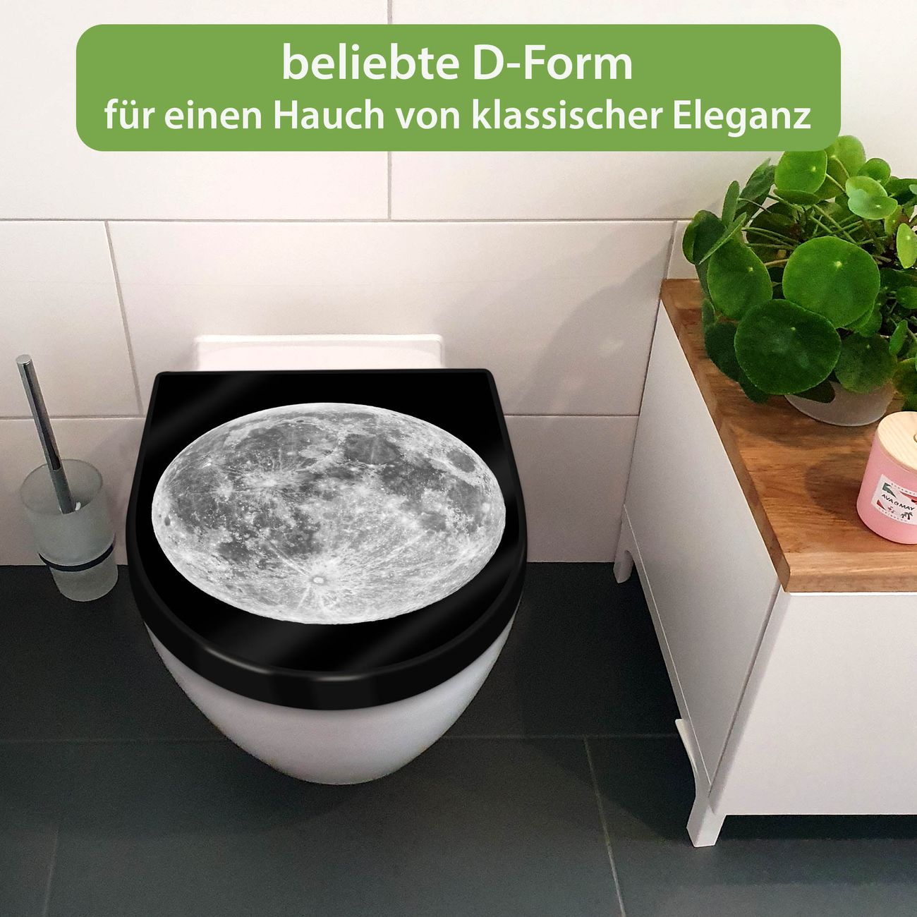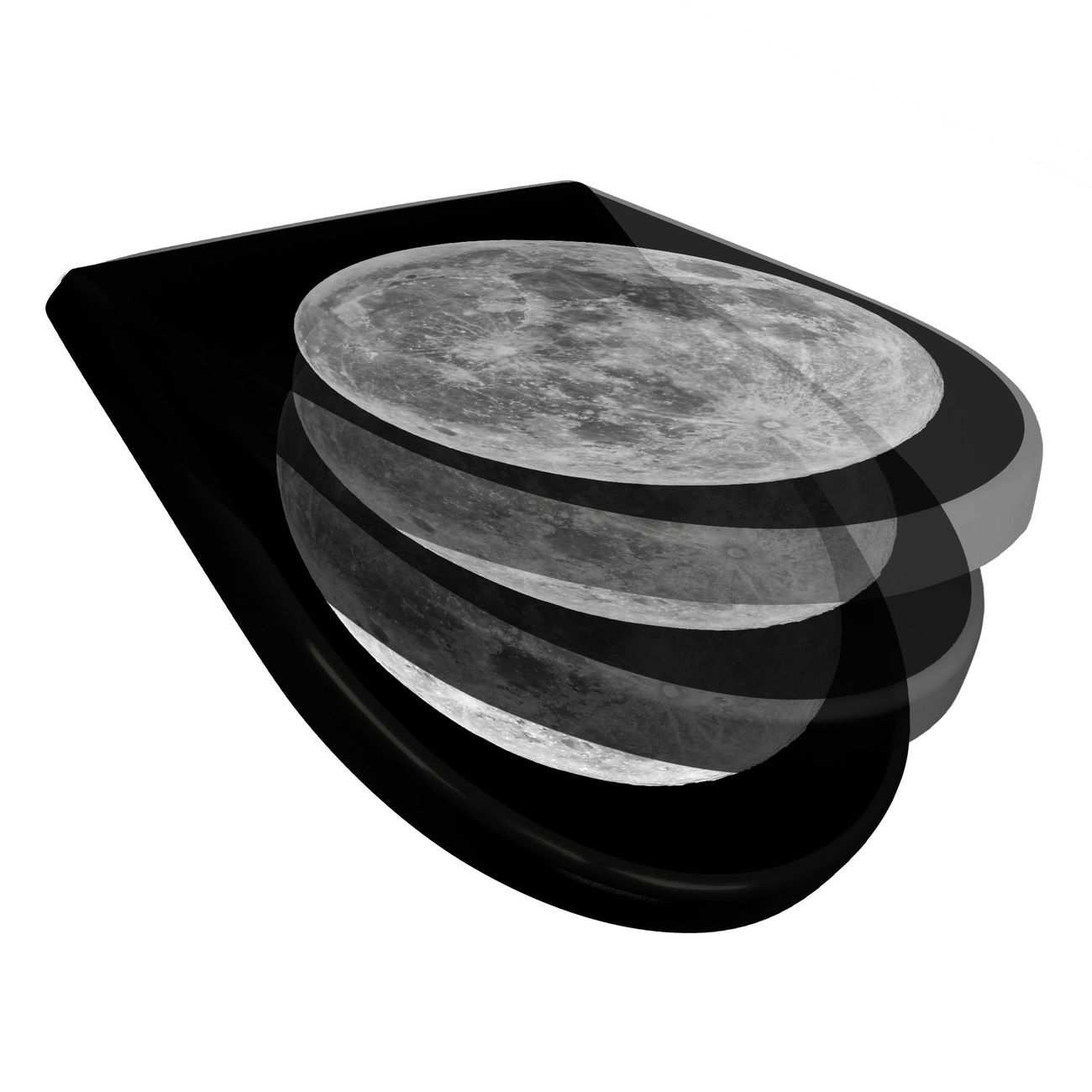 WC Sitz D-Form Schwarz mit Absenkautomatik Motiv Mond