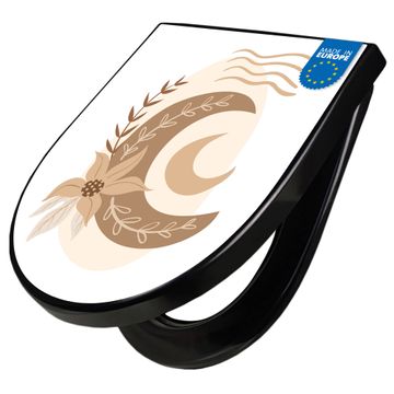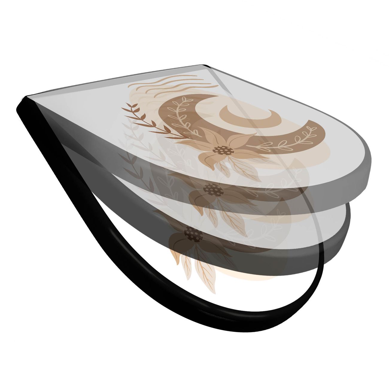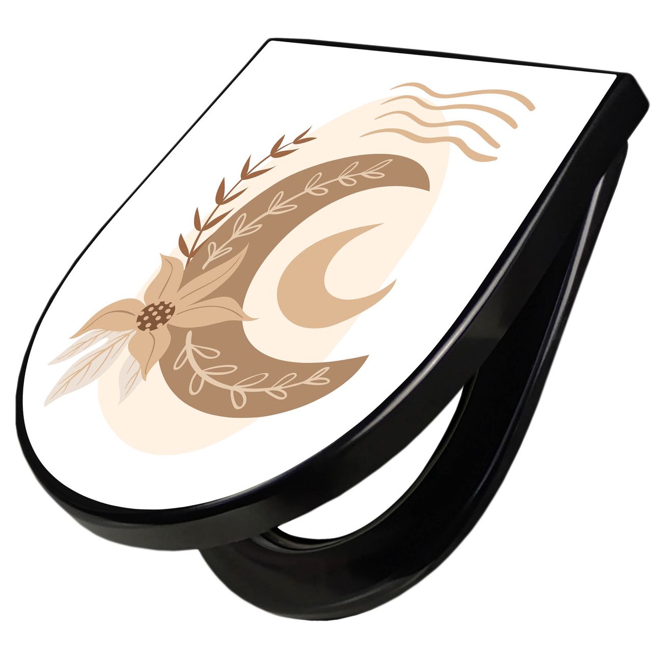 WC Sitz D-Form Schwarz mit Absenkautomatik Motiv Mondblume