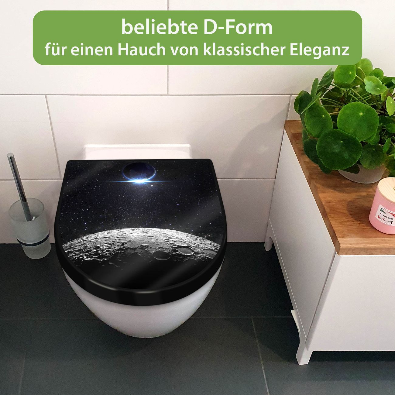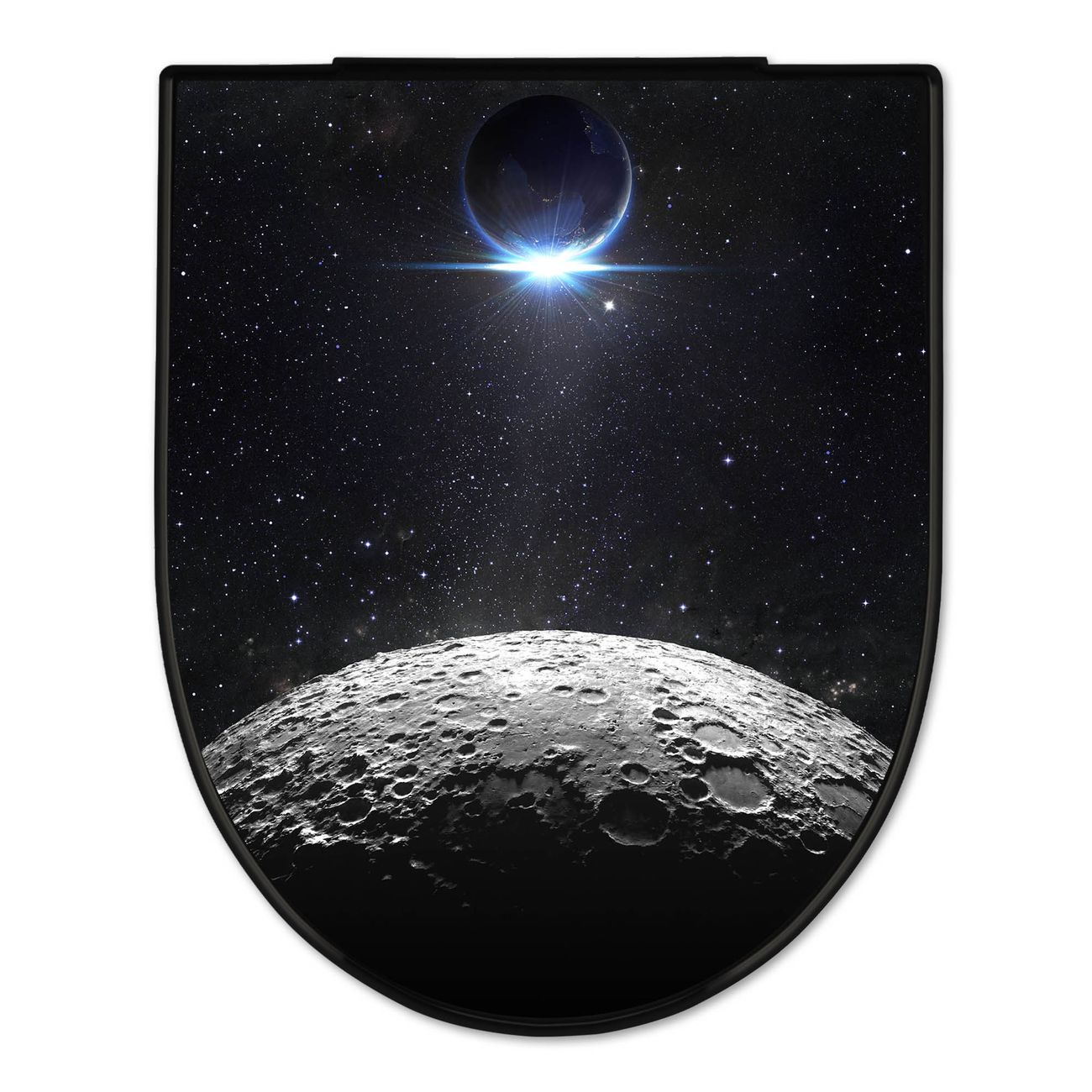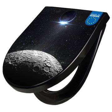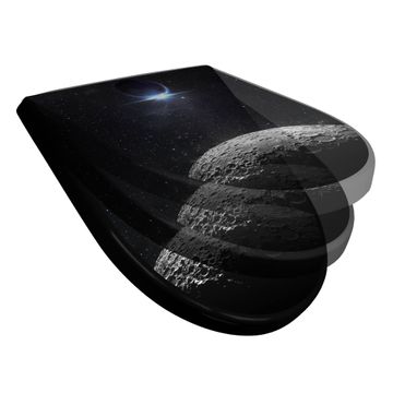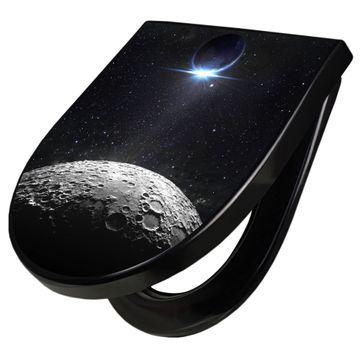 WC Sitz D-Form Schwarz mit Absenkautomatik Motiv Mondlandschaft
