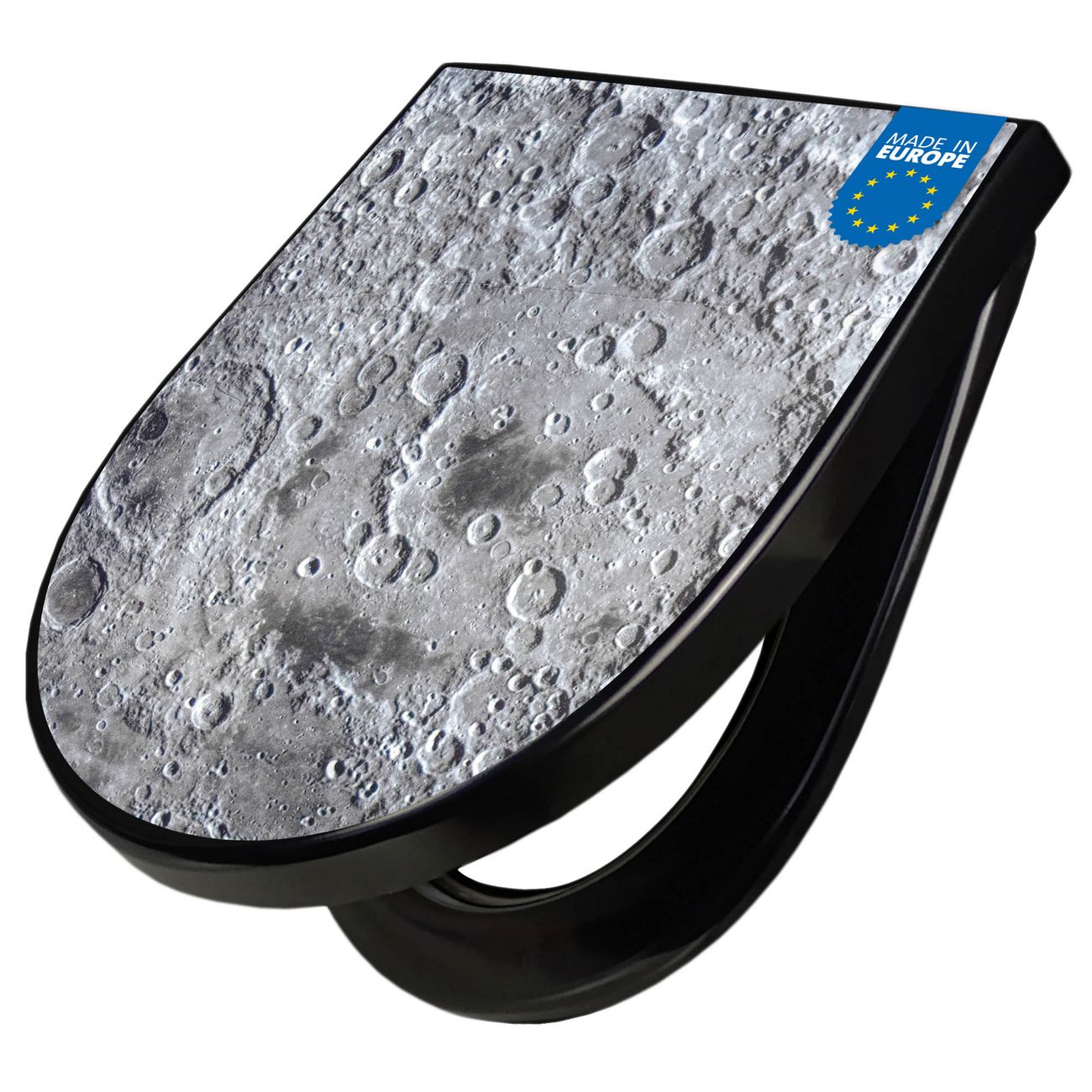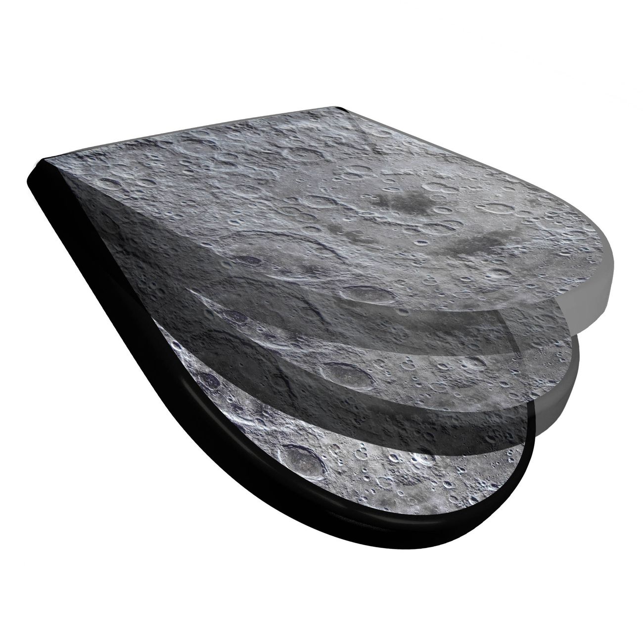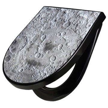 WC Sitz D-Form Schwarz mit Absenkautomatik Motiv Mondoberfläche