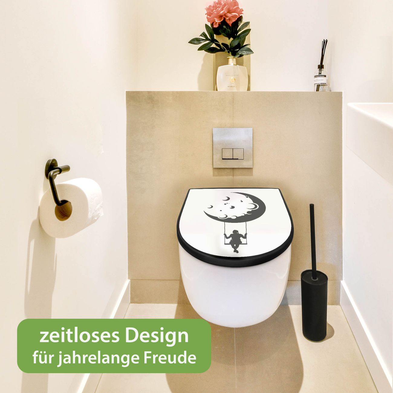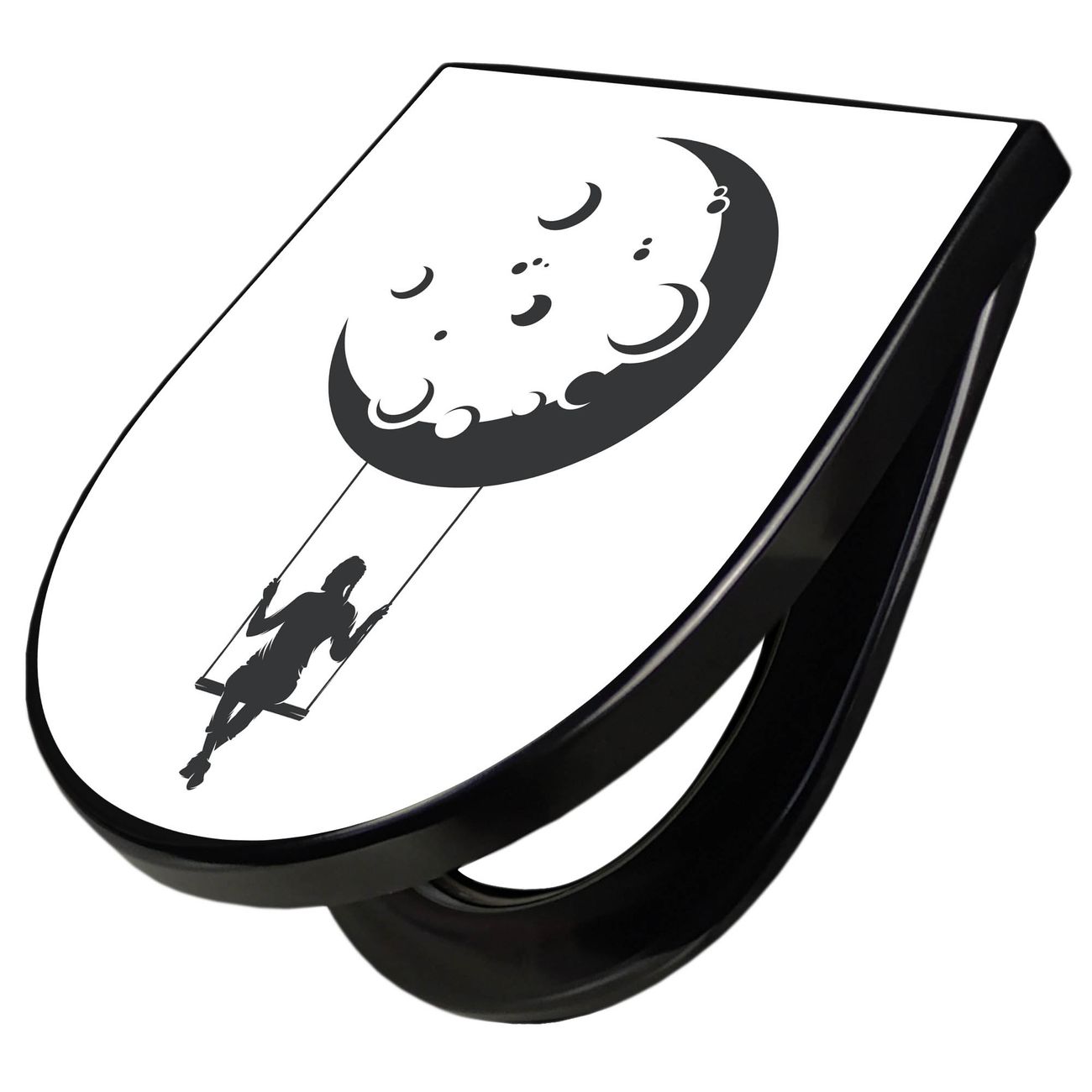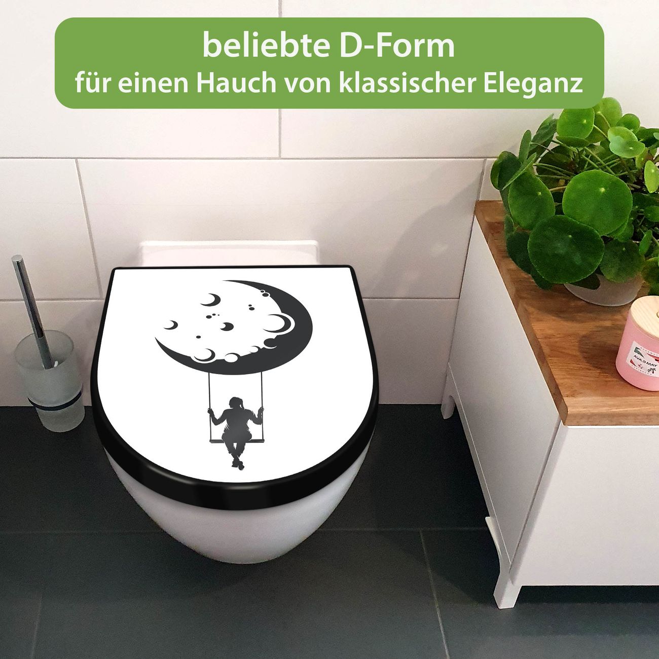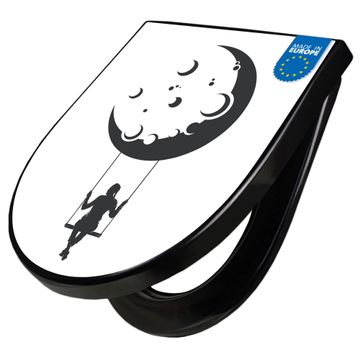 WC Sitz D-Form Schwarz mit Absenkautomatik Motiv Mondschaukel