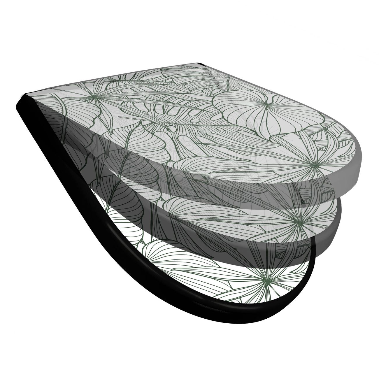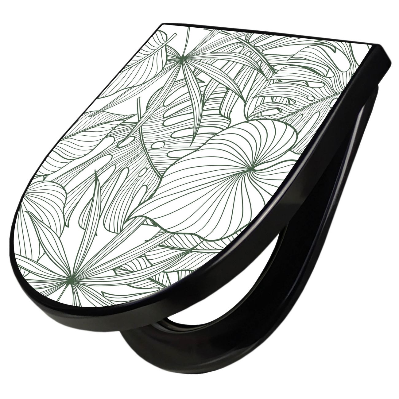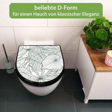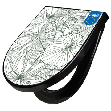 WC Sitz D-Form Schwarz mit Absenkautomatik Motiv Monstera 2