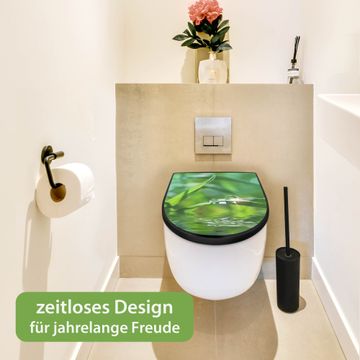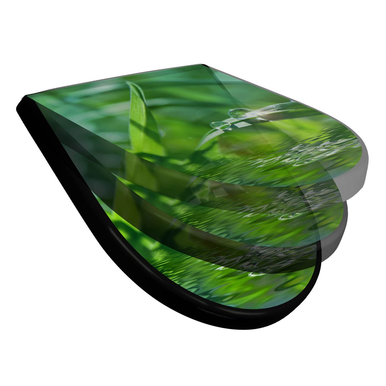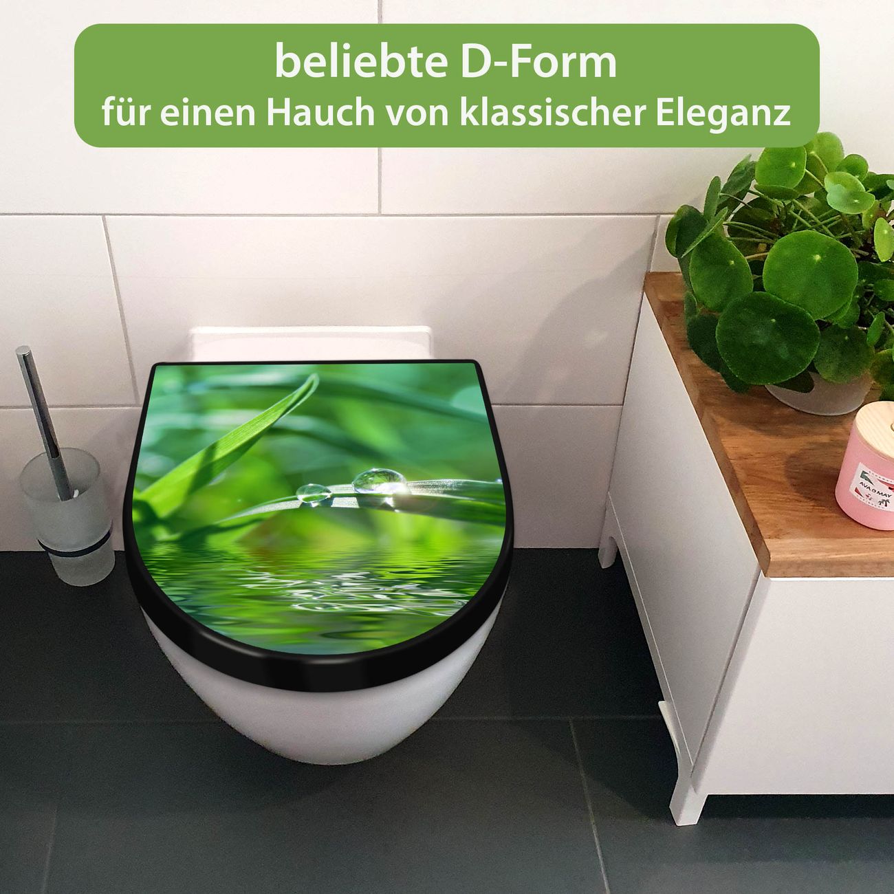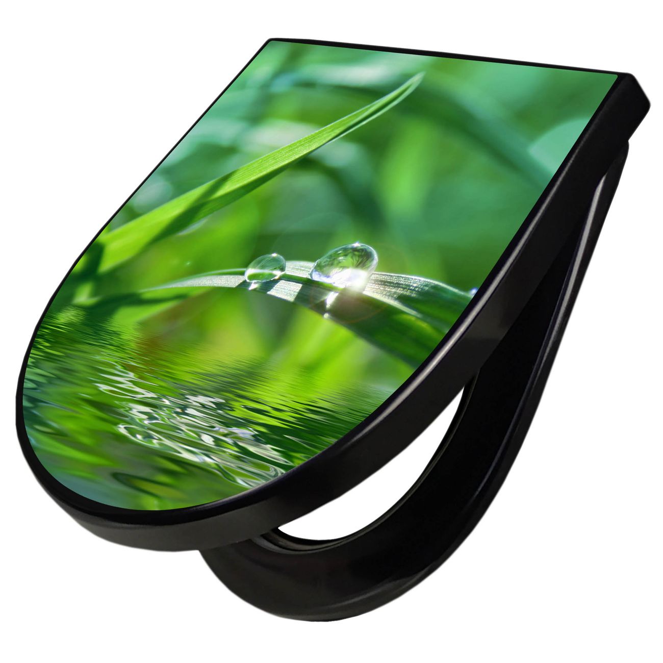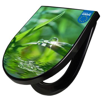 WC Sitz D-Form Schwarz mit Absenkautomatik Motiv Morgentau