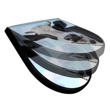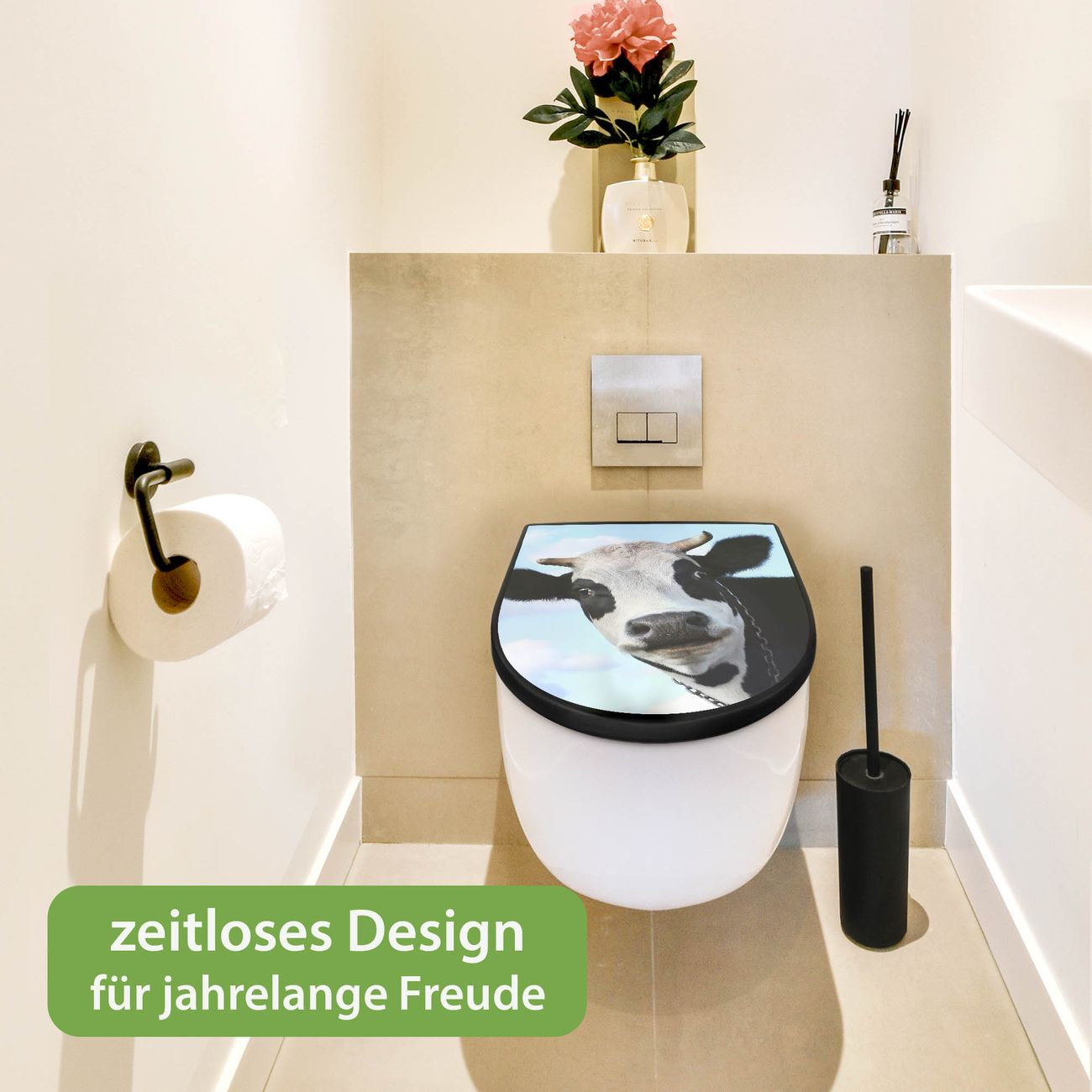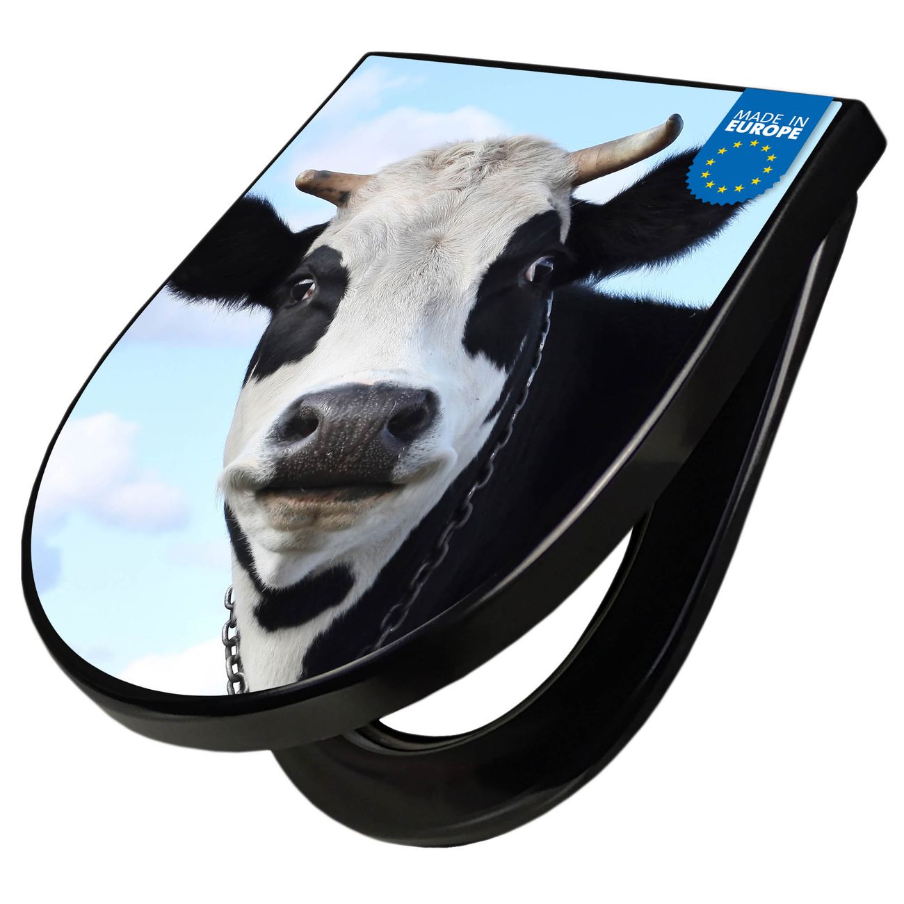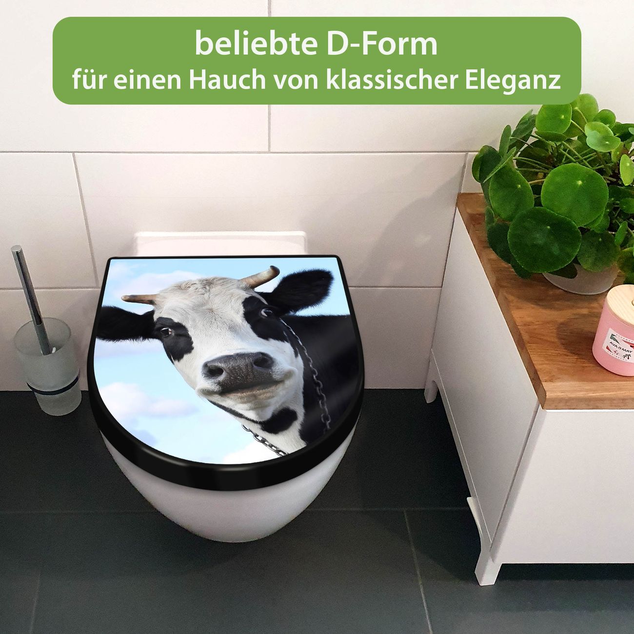 WC Sitz D-Form Schwarz mit Absenkautomatik Motiv Muh
