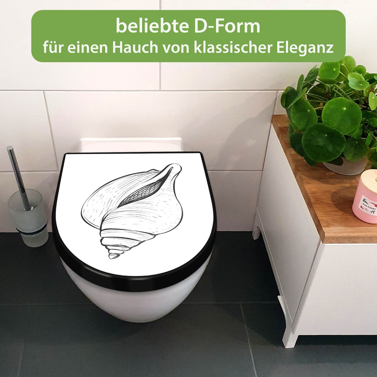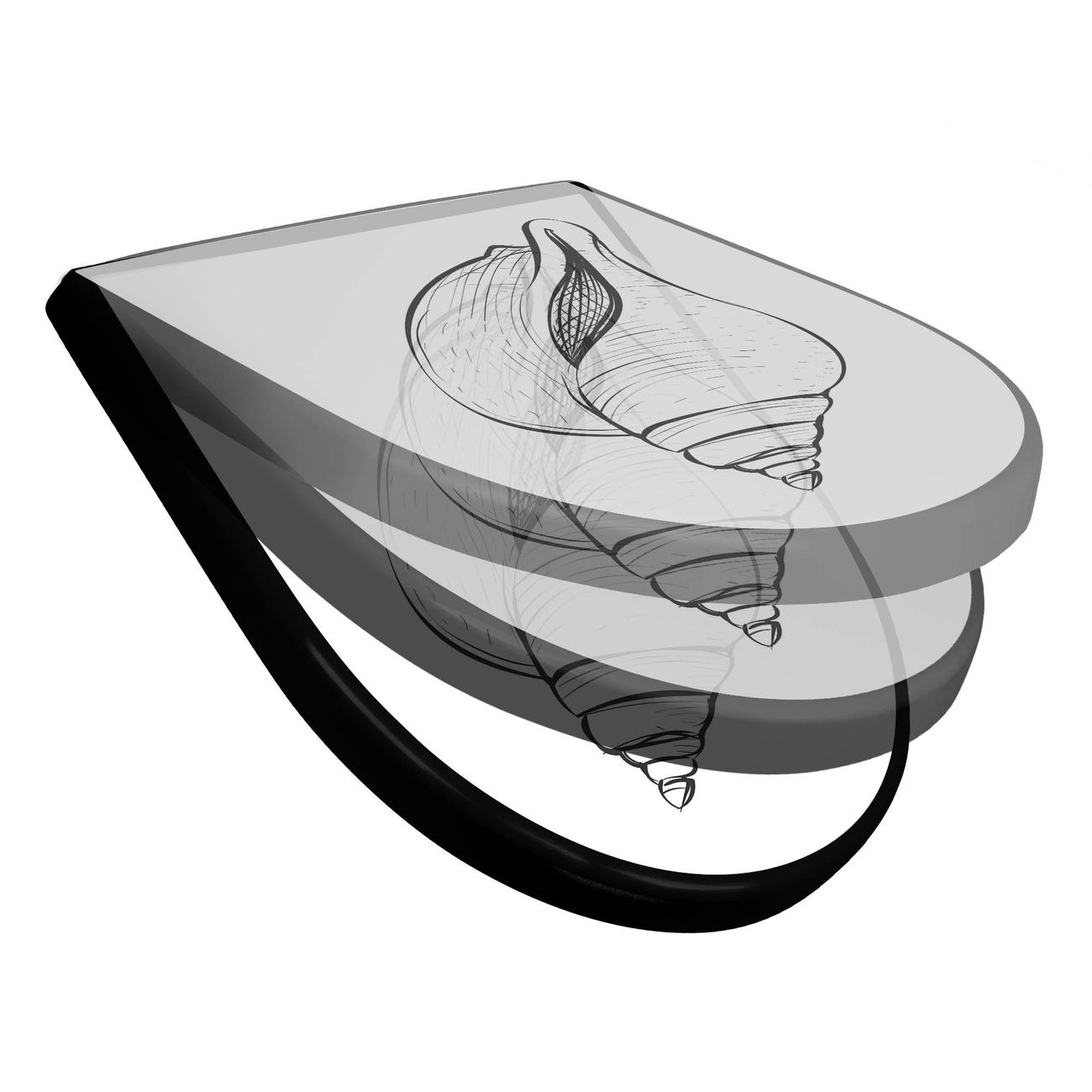 WC Sitz D-Form Schwarz mit Absenkautomatik Motiv Muschel 7