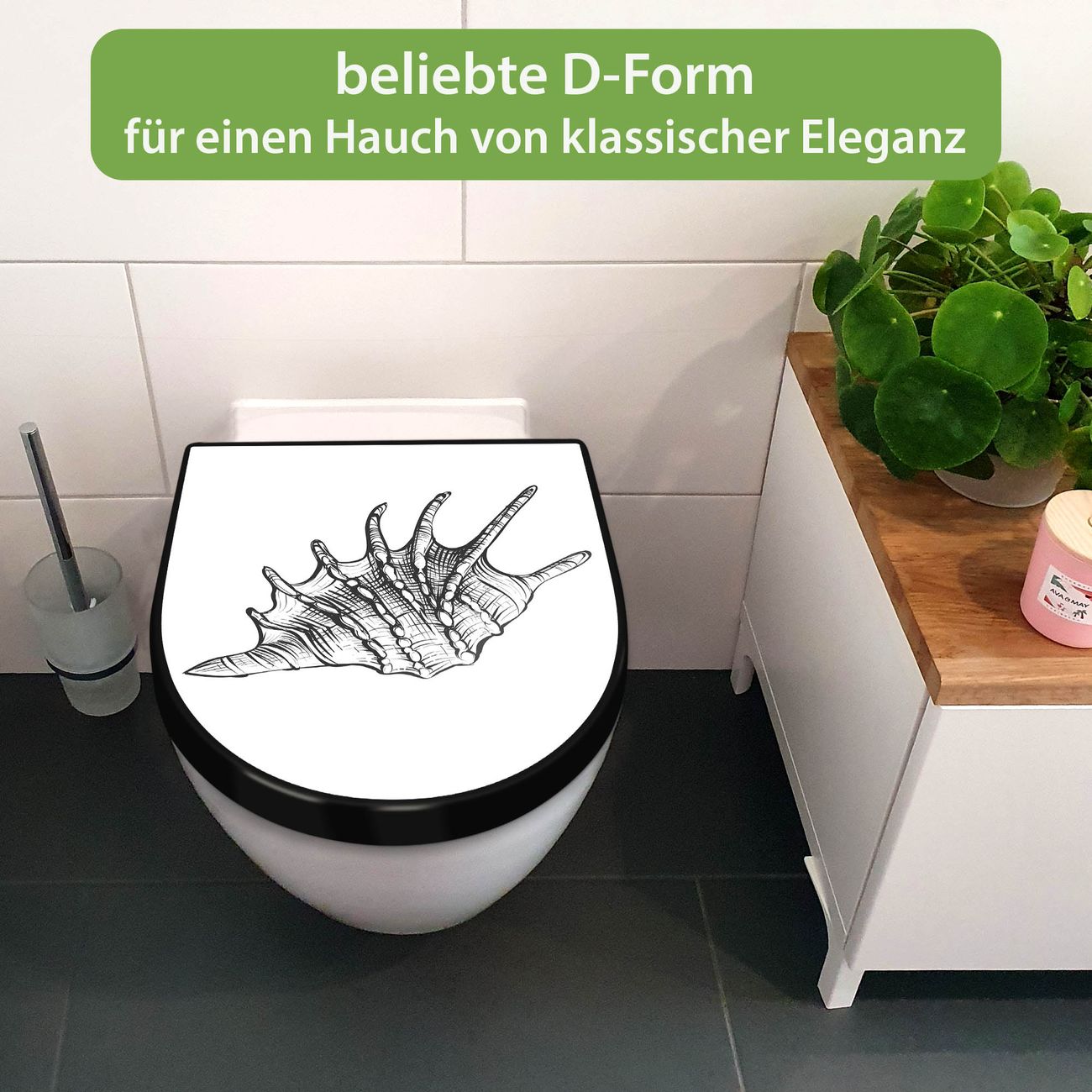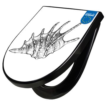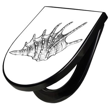 WC Sitz D-Form Schwarz mit Absenkautomatik Motiv Muschel 9