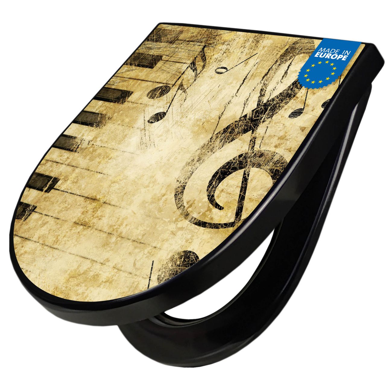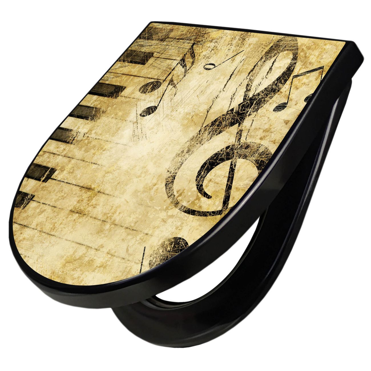 WC Sitz D-Form Schwarz mit Absenkautomatik Motiv Music