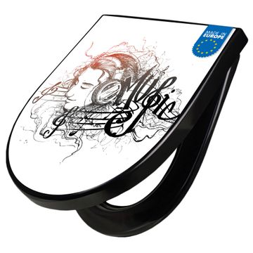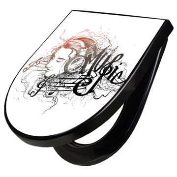 WC Sitz D-Form Schwarz mit Absenkautomatik Motiv Musikalische Illustration