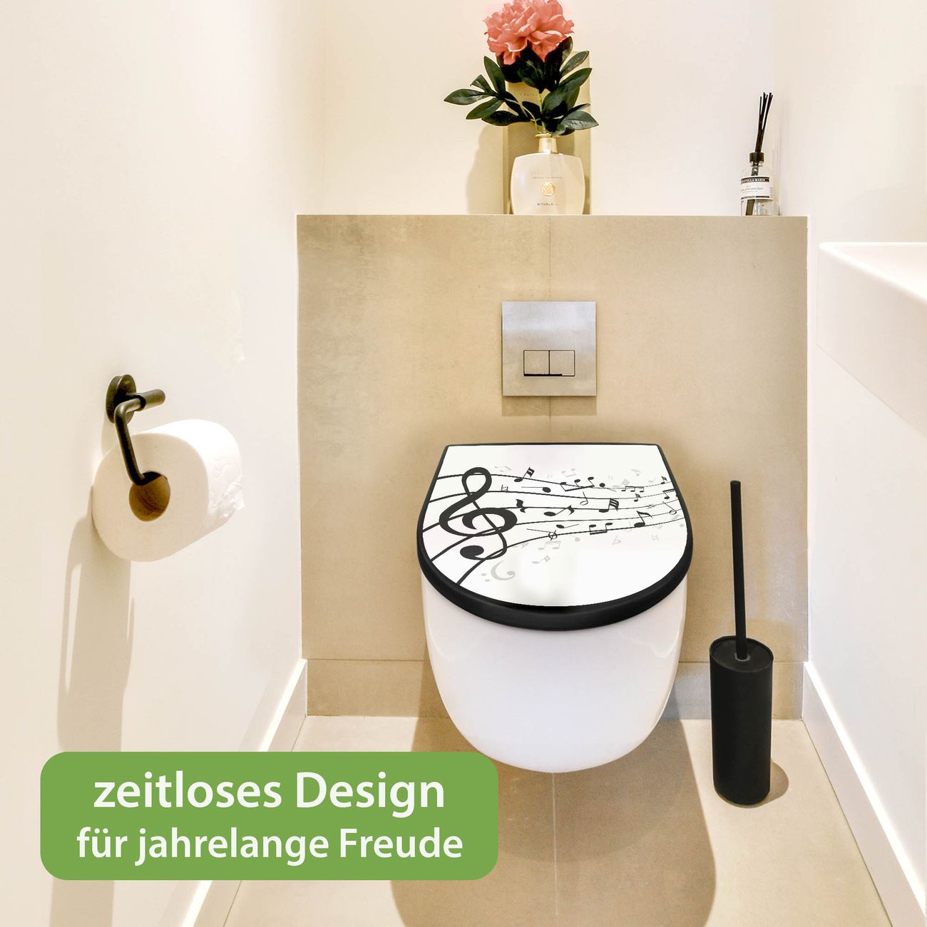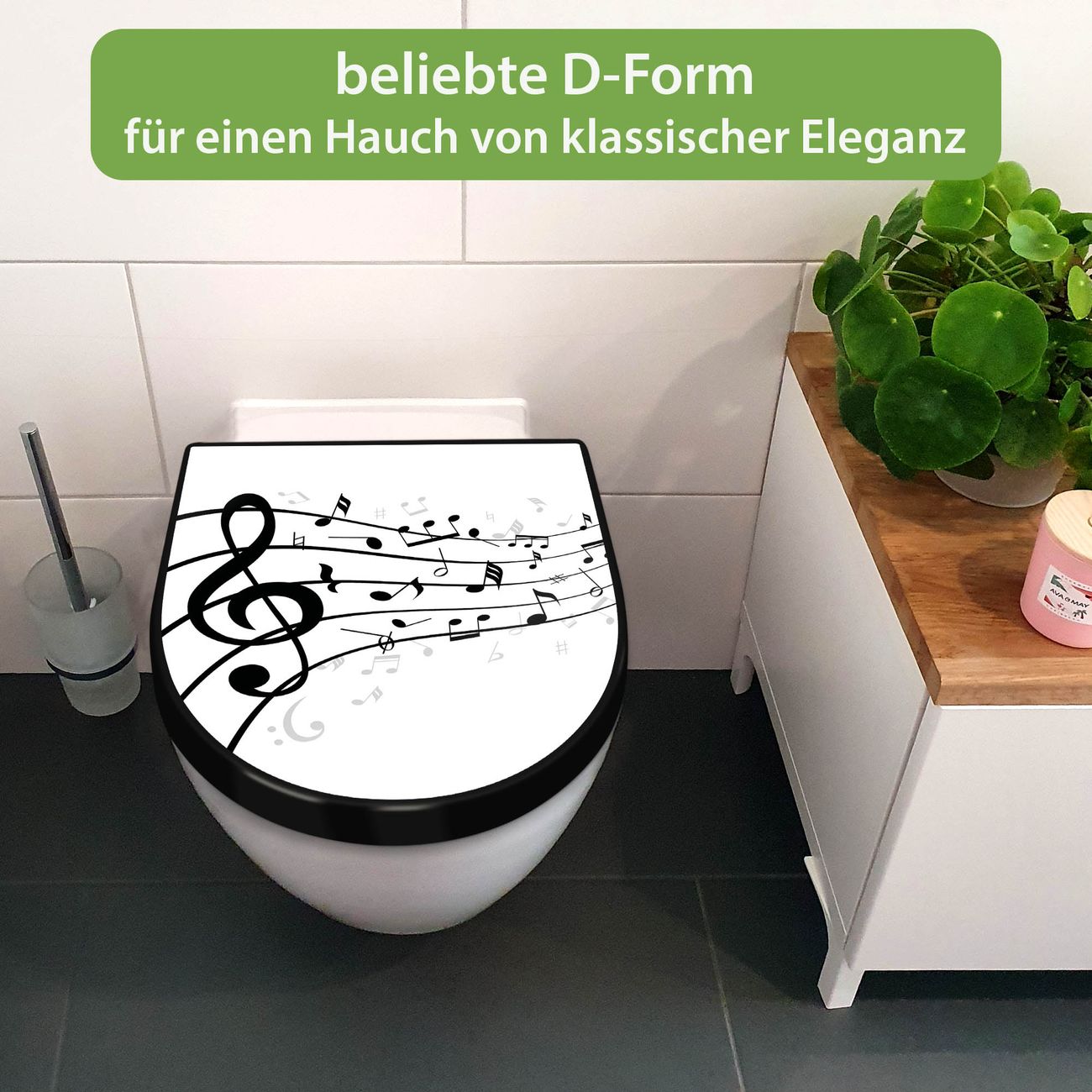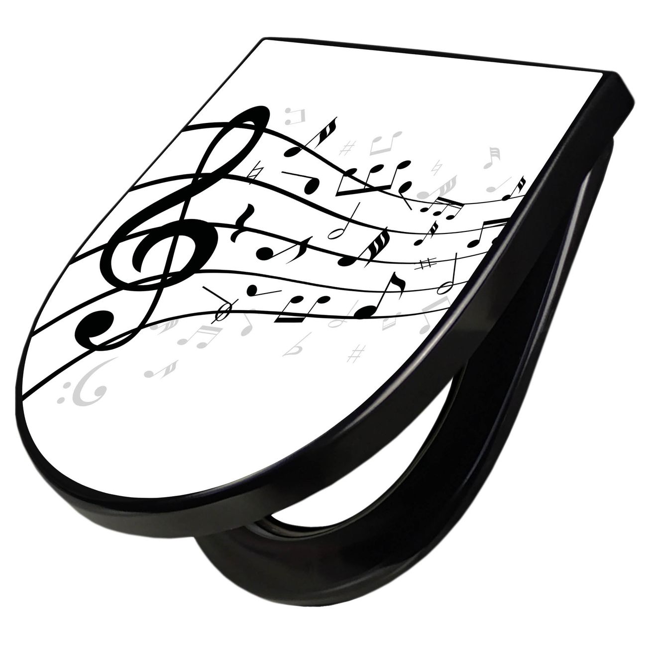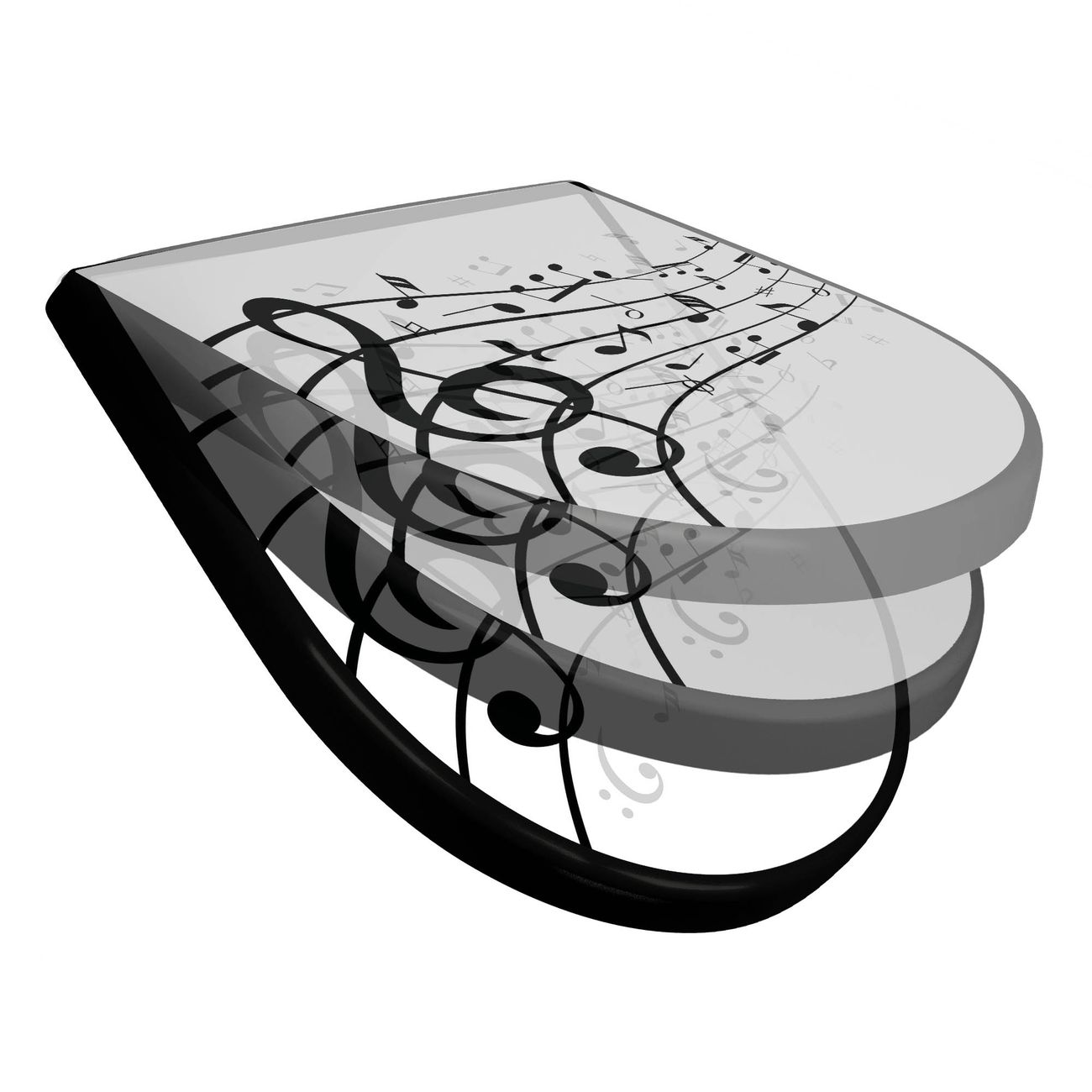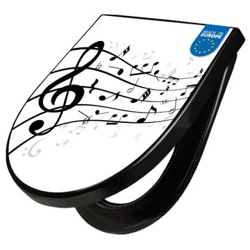 WC Sitz D-Form Schwarz mit Absenkautomatik Motiv Musikalische Noten