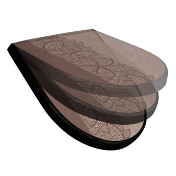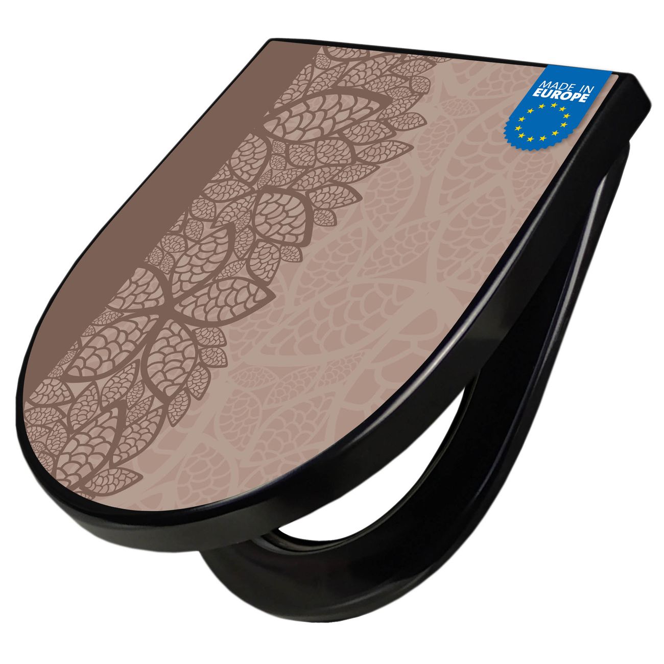 WC Sitz D-Form Schwarz mit Absenkautomatik Motiv Muster Blätter