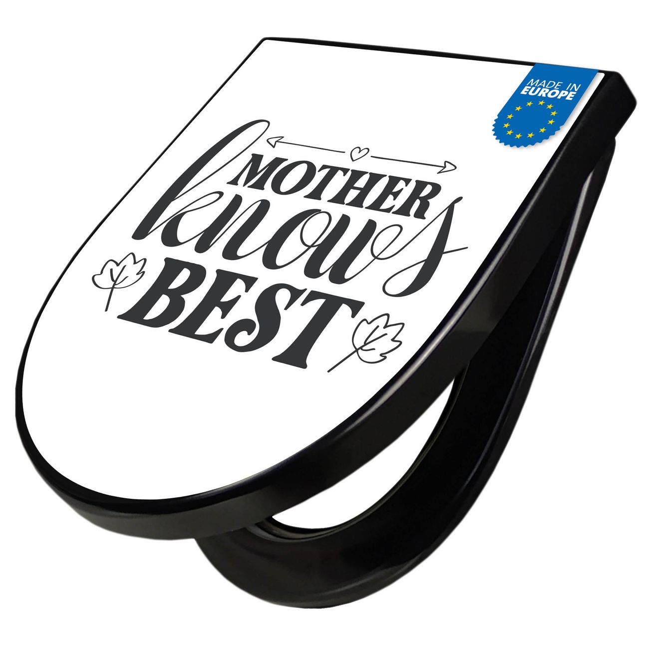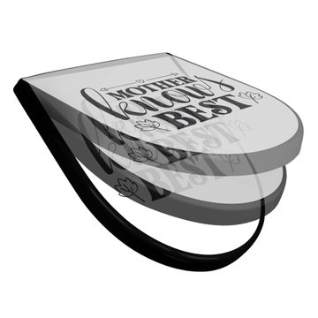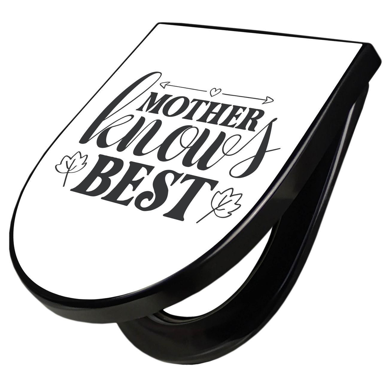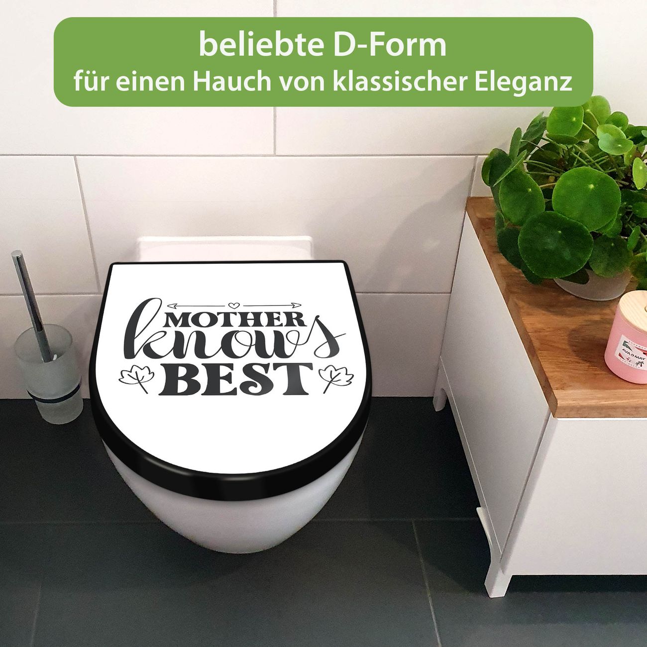 WC Sitz D-Form Schwarz mit Absenkautomatik Motiv Mutter Weisheit