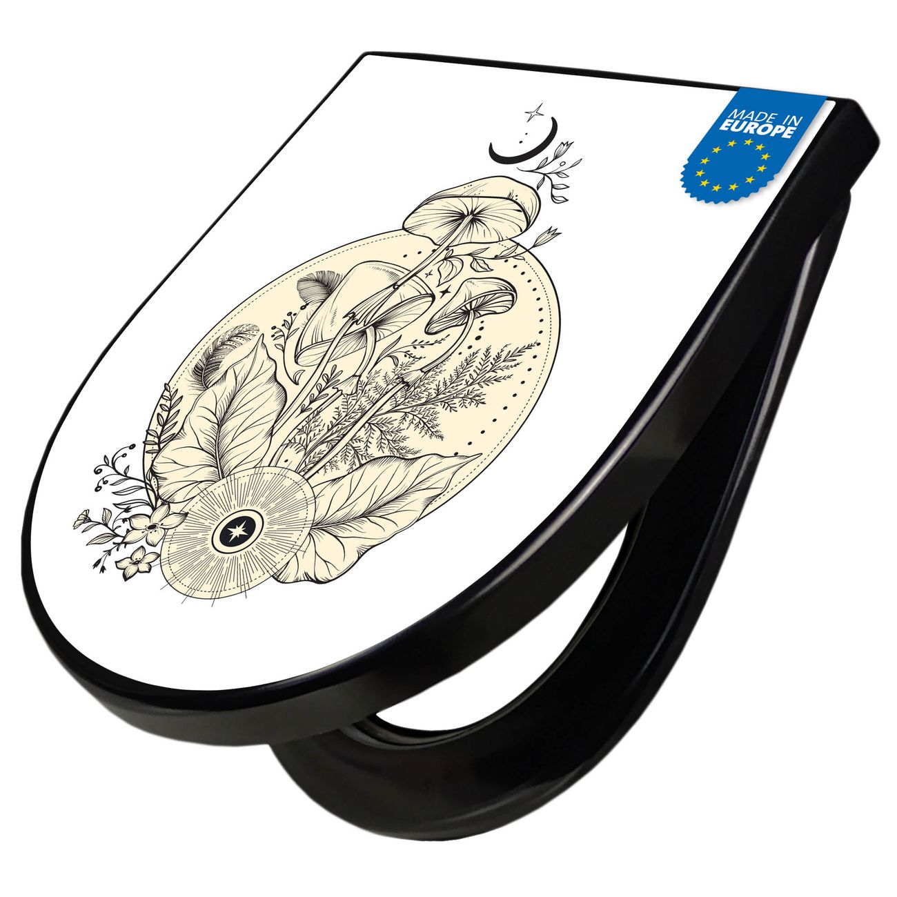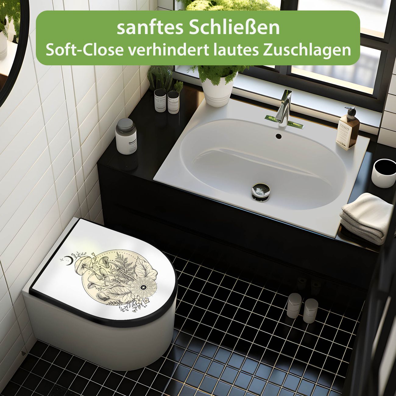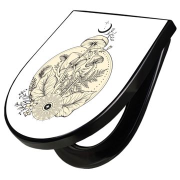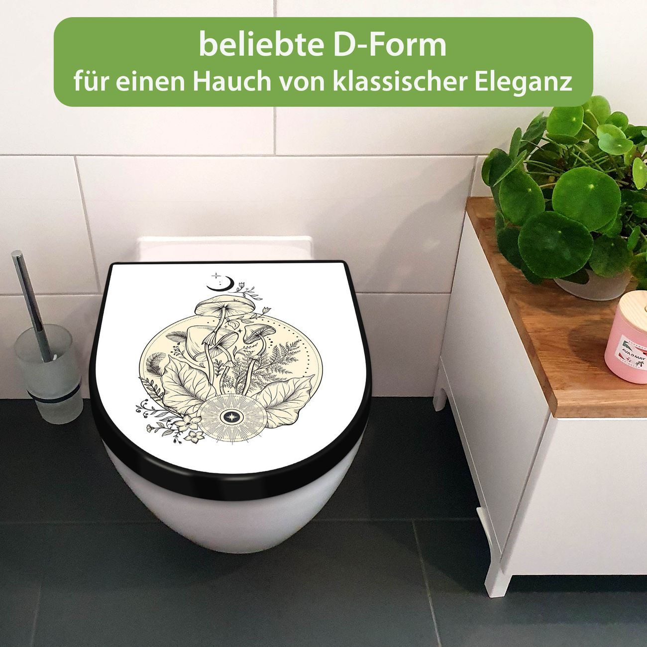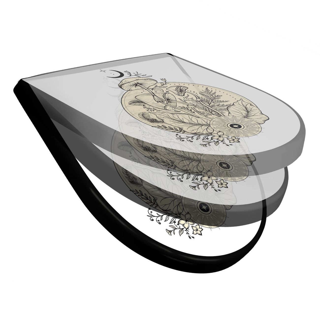 WC Sitz D-Form Schwarz mit Absenkautomatik Motiv Mystische Natur