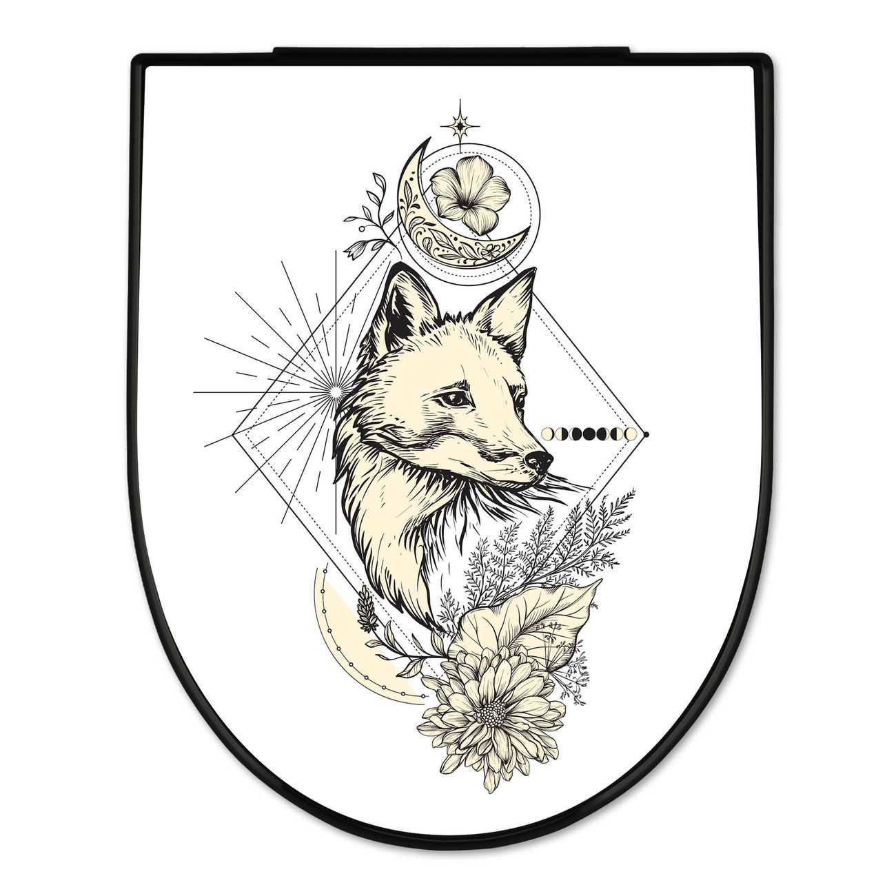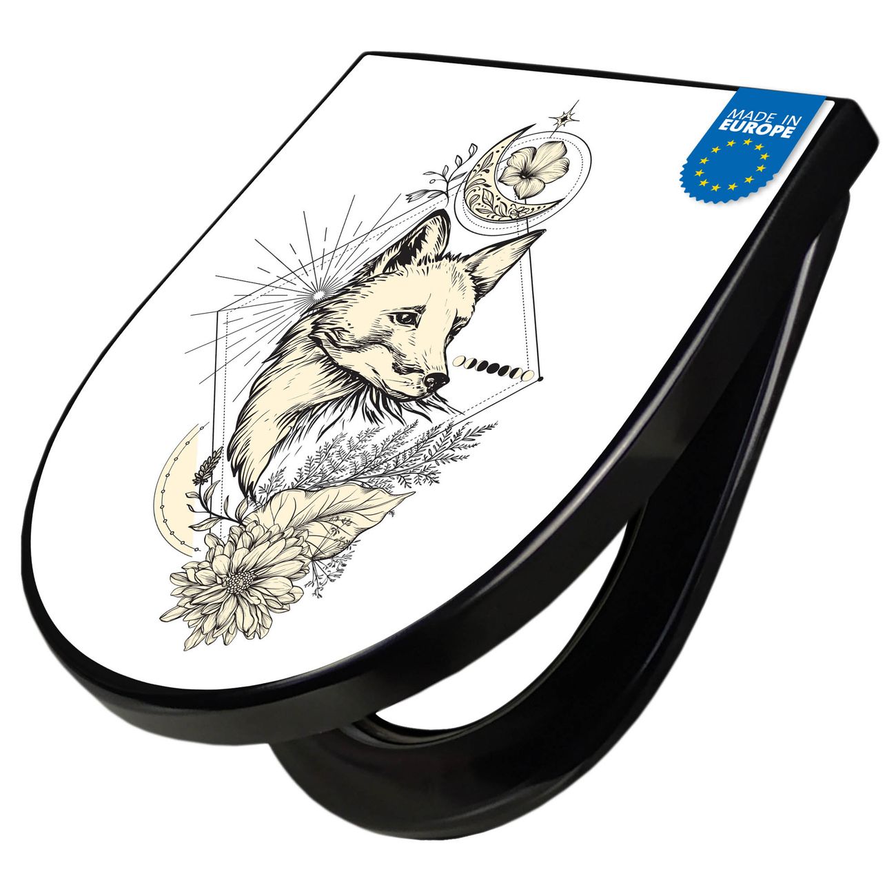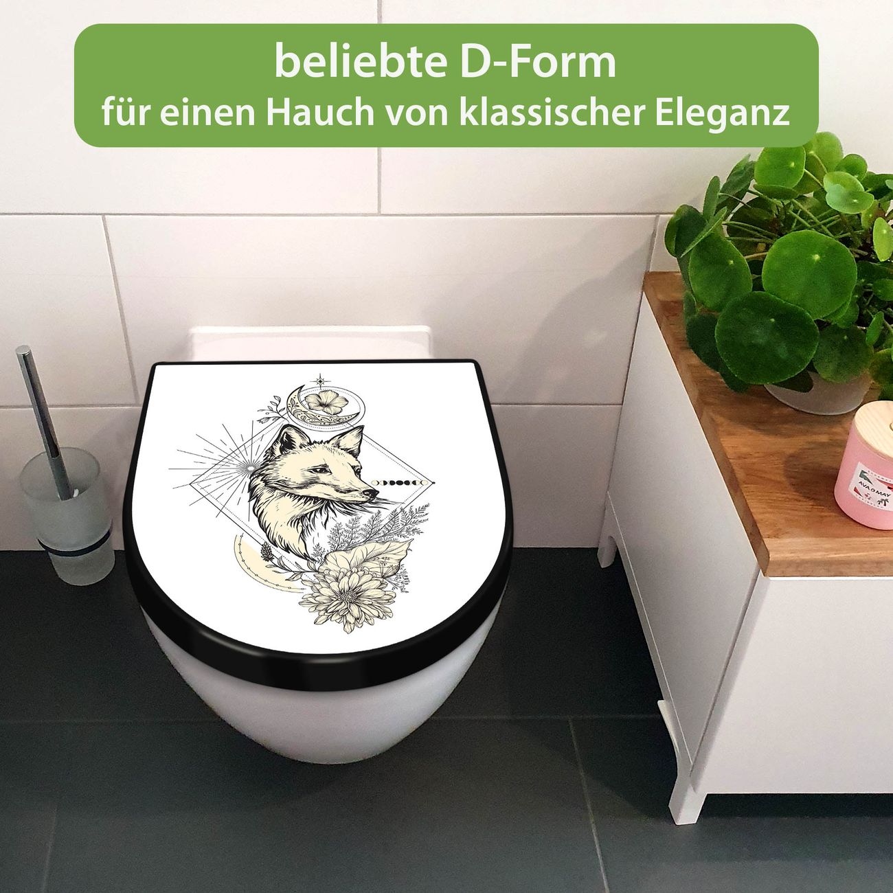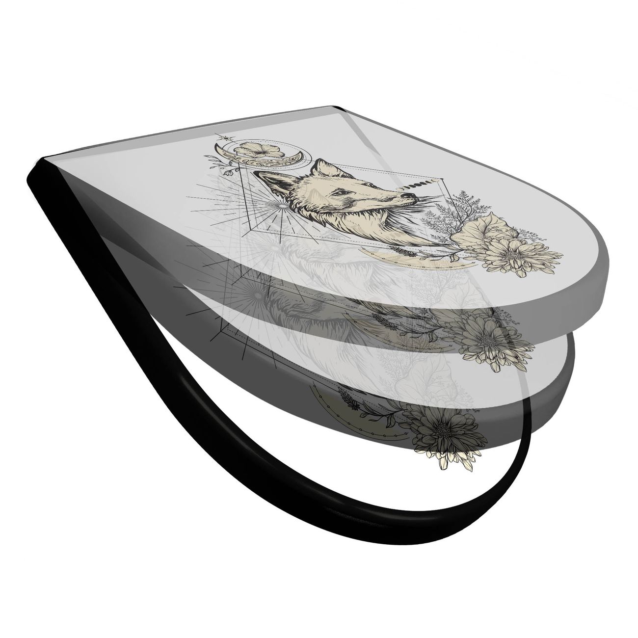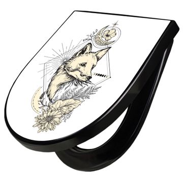 WC Sitz D-Form Schwarz mit Absenkautomatik Motiv Mystischer Fuchs