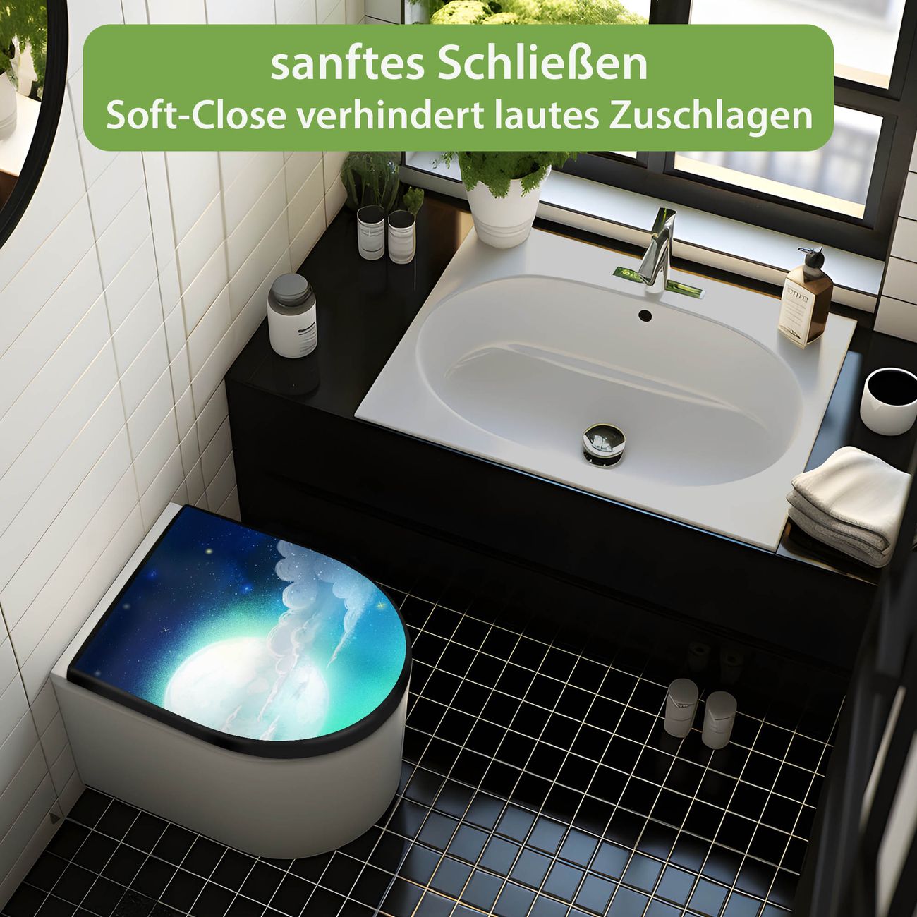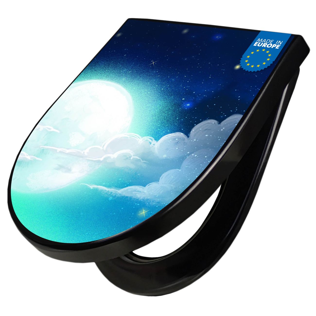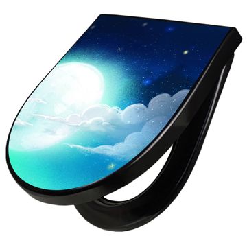 WC Sitz D-Form Schwarz mit Absenkautomatik Motiv Nachthimmel 1