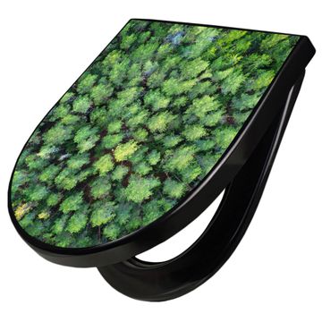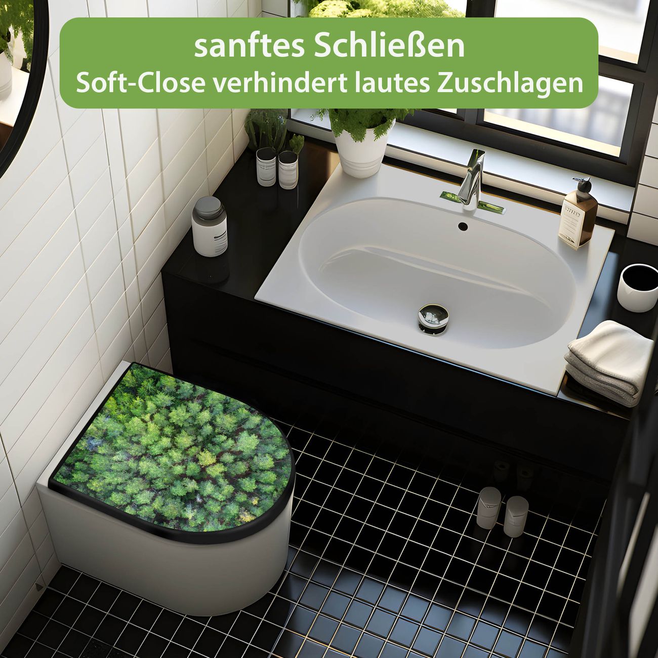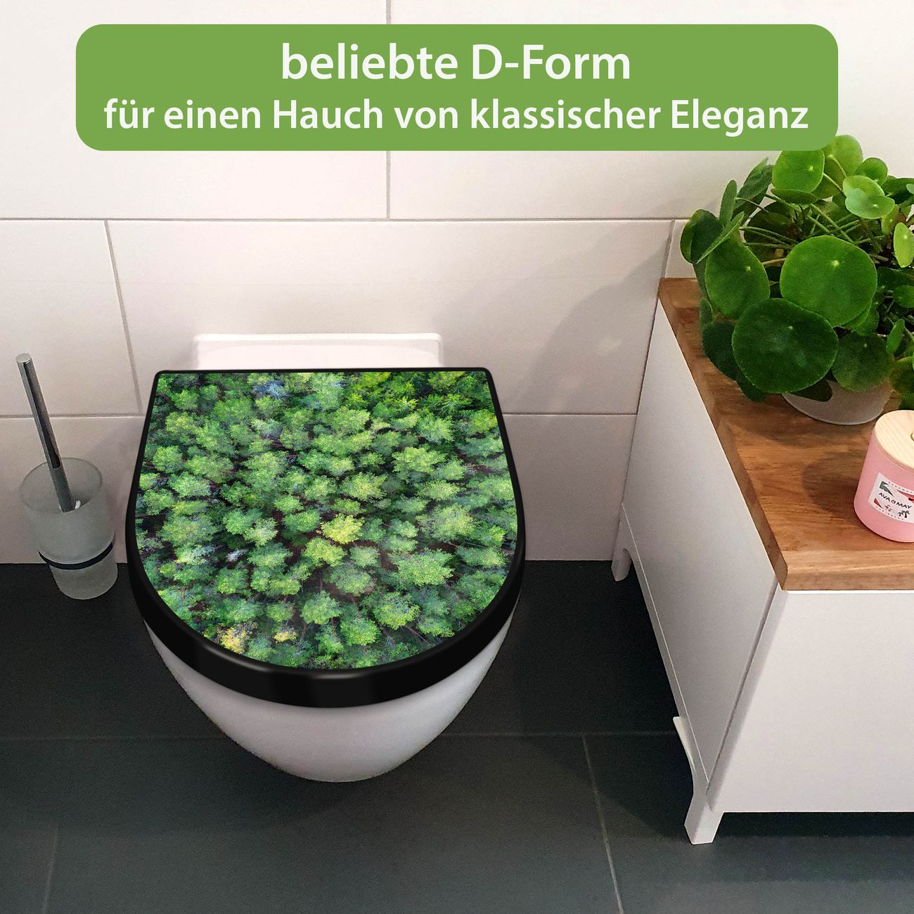 WC Sitz D-Form Schwarz mit Absenkautomatik Motiv Nadelwald