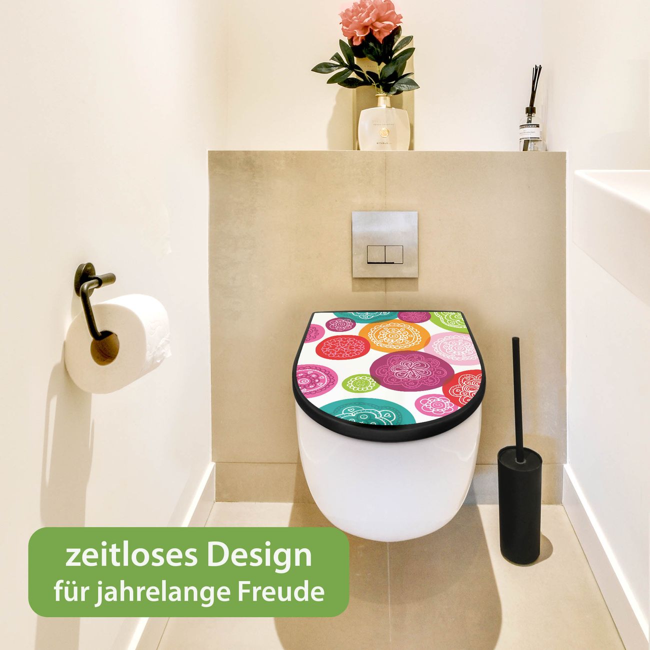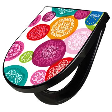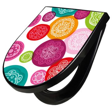 WC Sitz D-Form Schwarz mit Absenkautomatik Motiv Naive Blüten