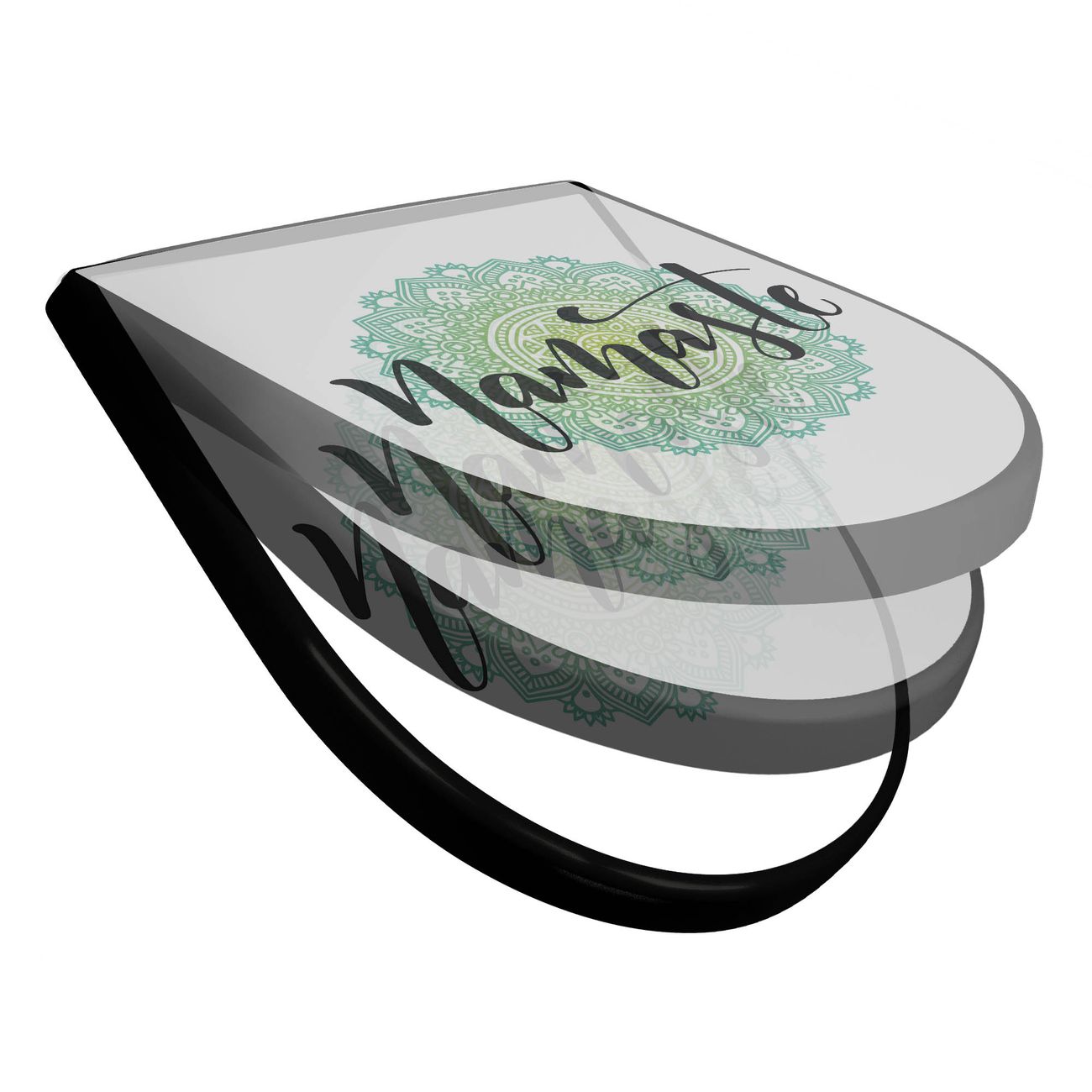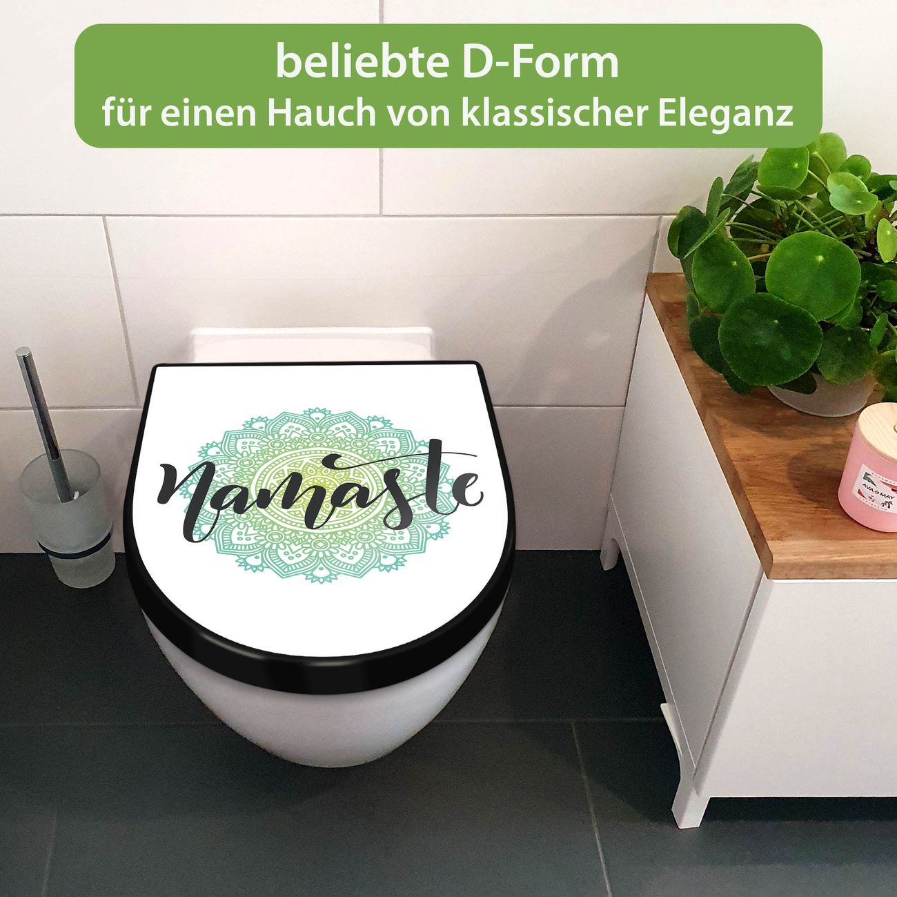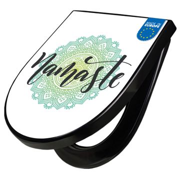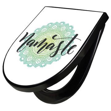 WC Sitz D-Form Schwarz mit Absenkautomatik Motiv Namaste Mandala