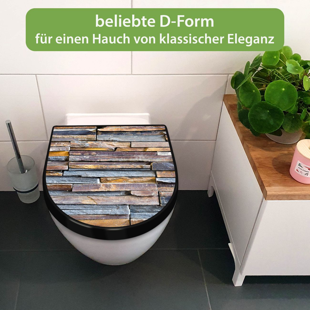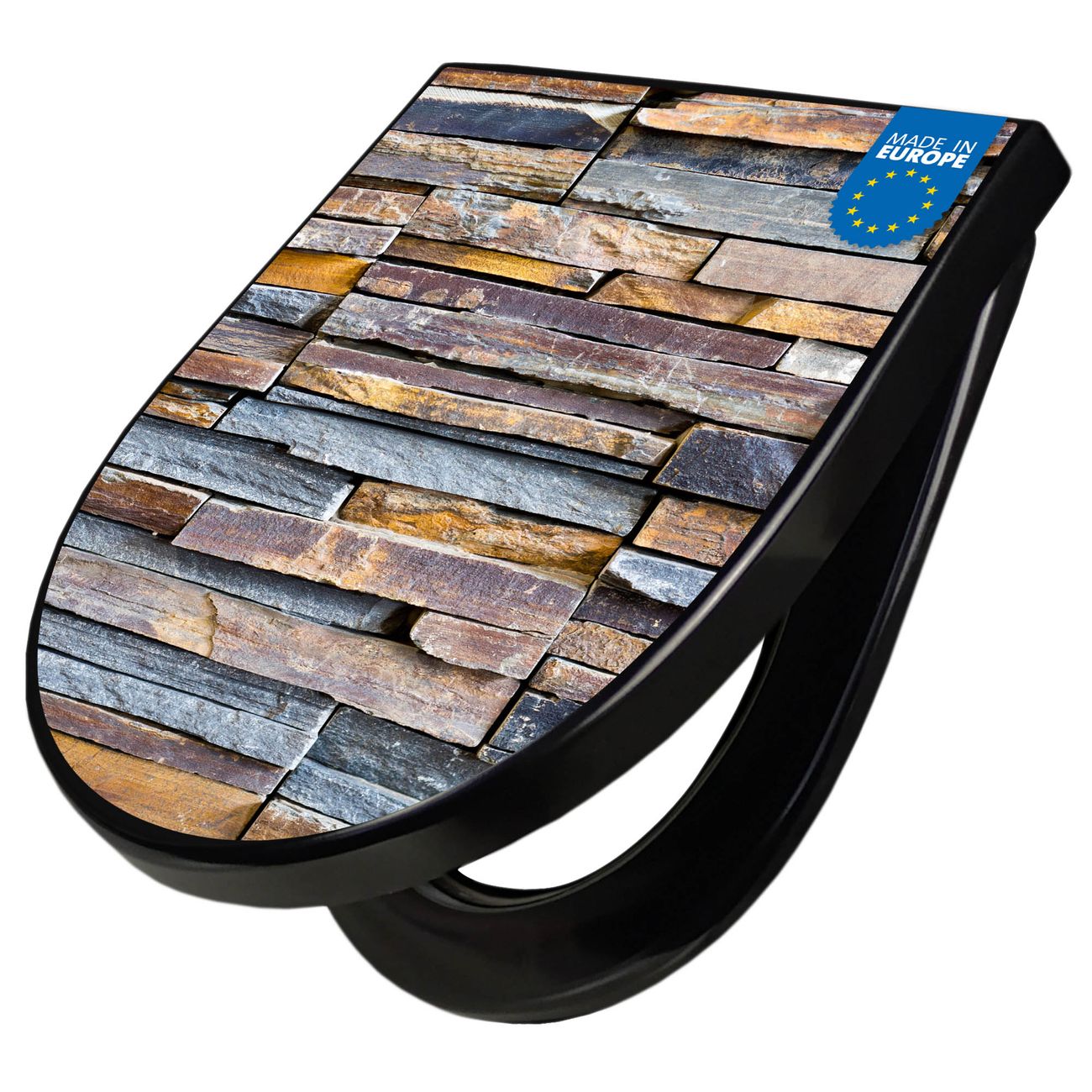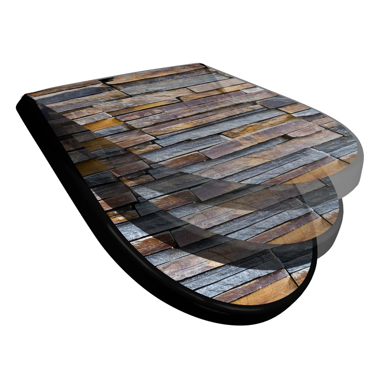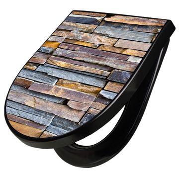 WC Sitz D-Form Schwarz mit Absenkautomatik Motiv Naturstein