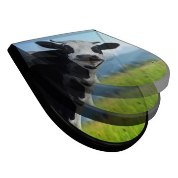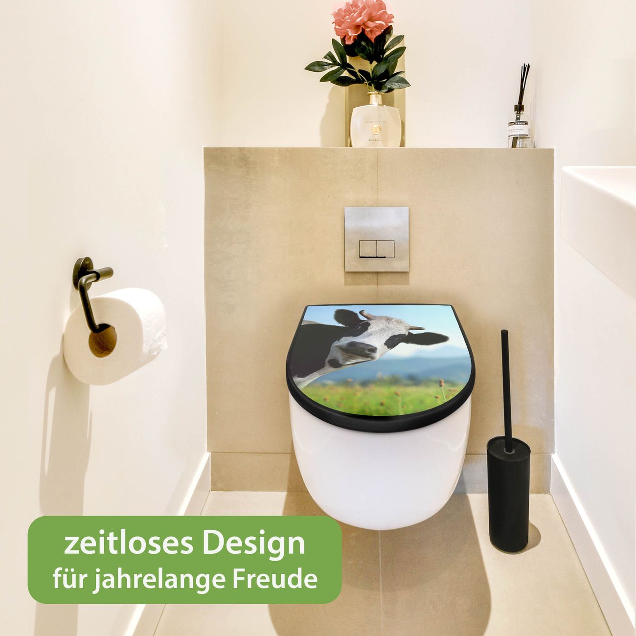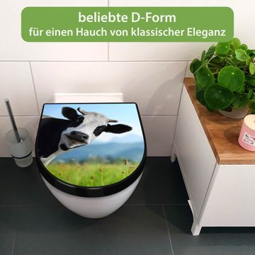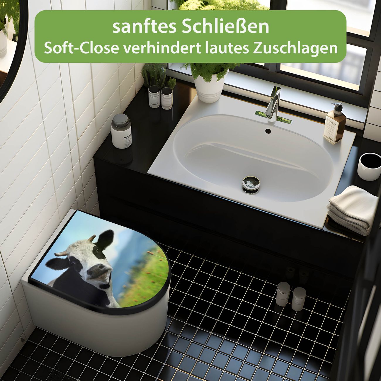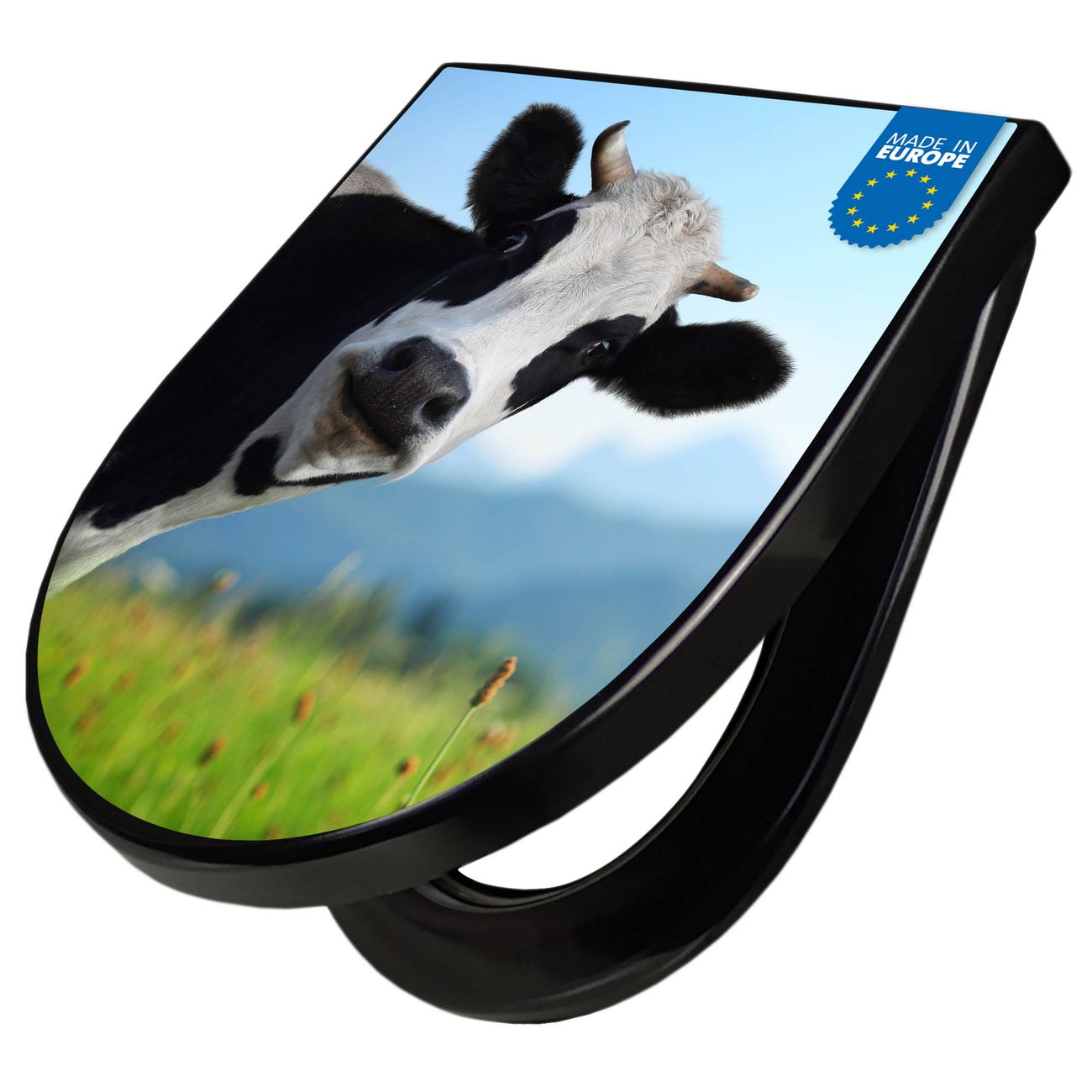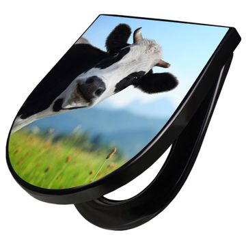 WC Sitz D-Form Schwarz mit Absenkautomatik Motiv Neugierig