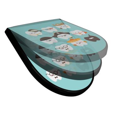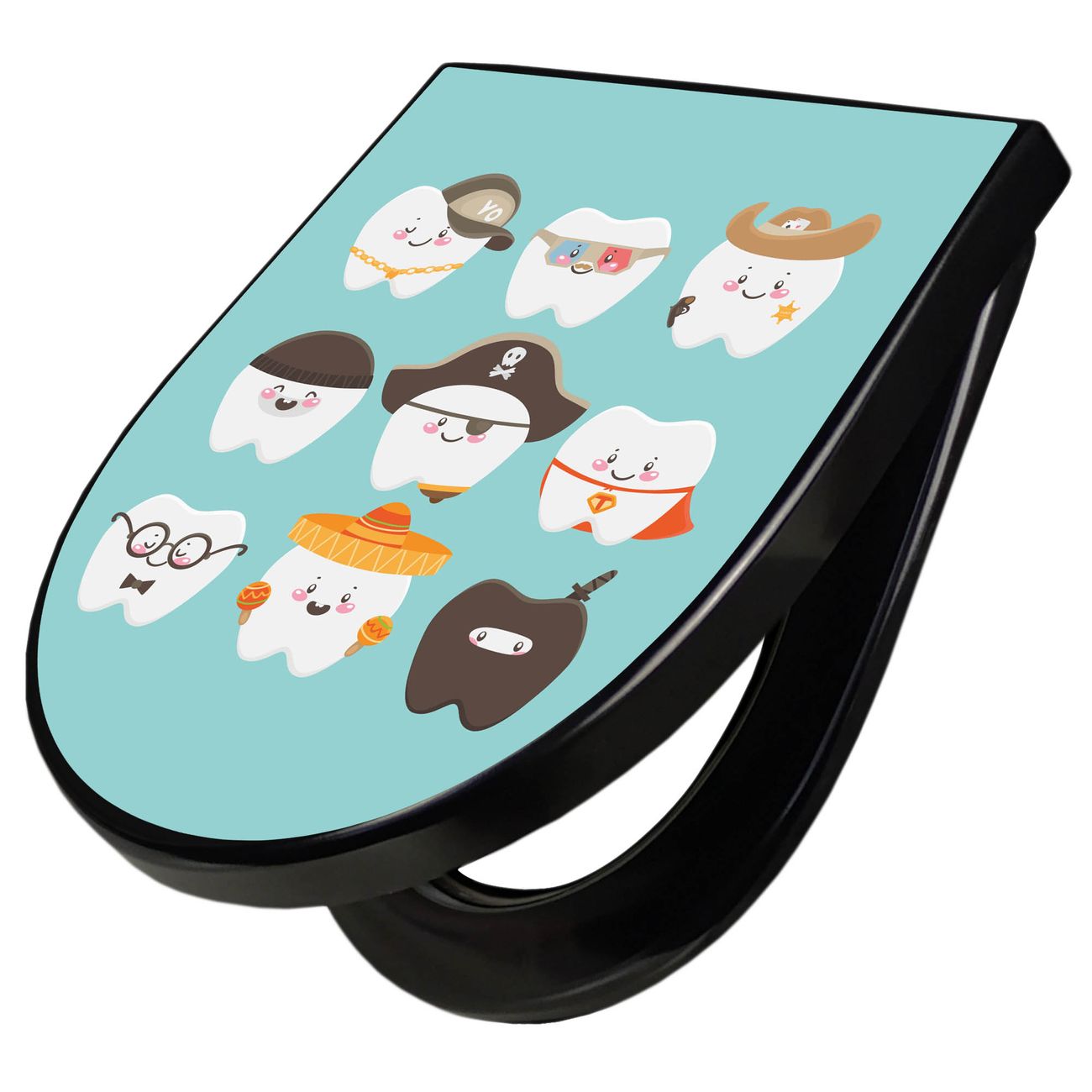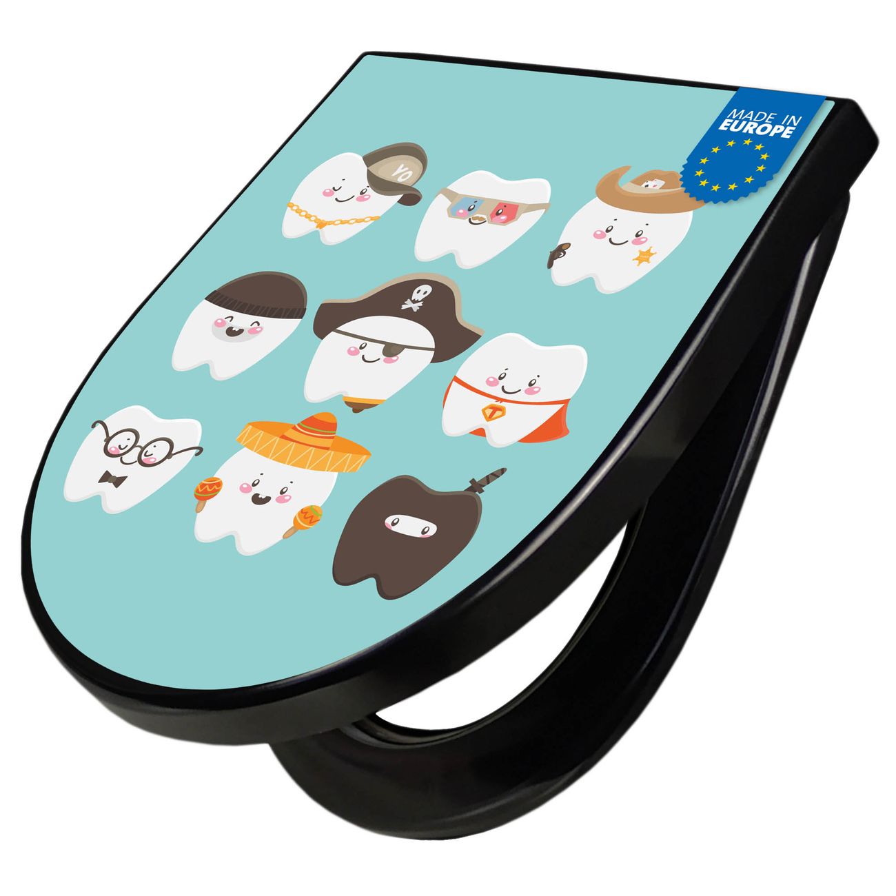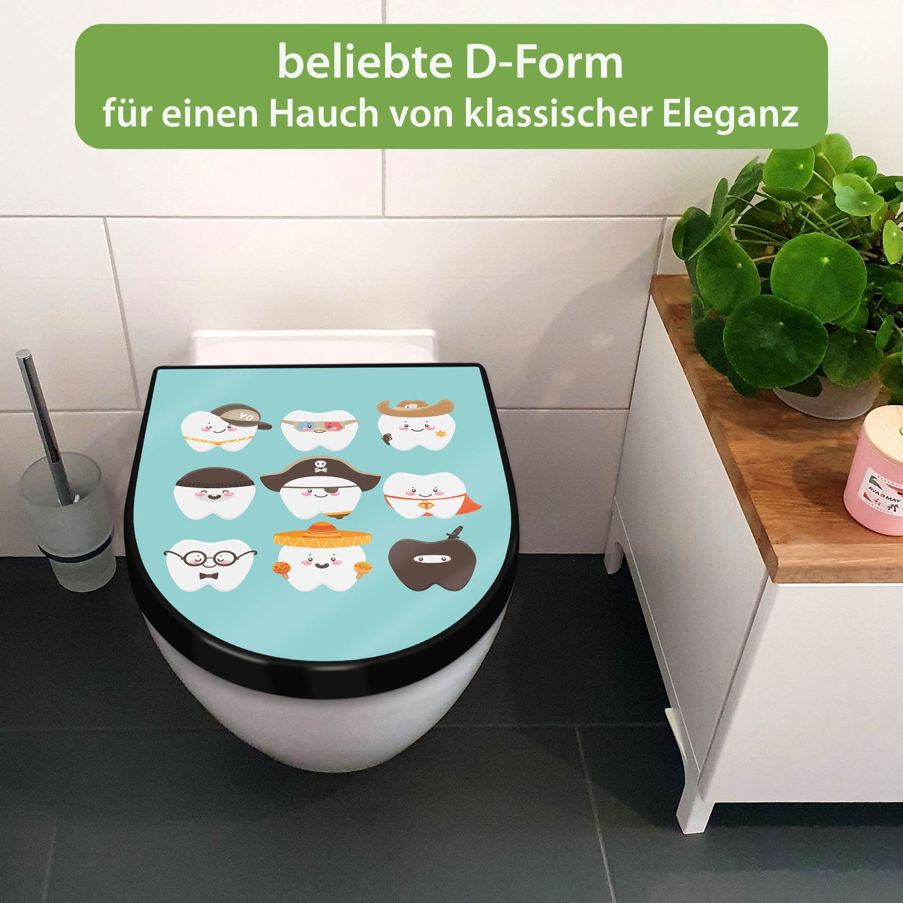 WC Sitz D-Form Schwarz mit Absenkautomatik Motiv Neun Zähne